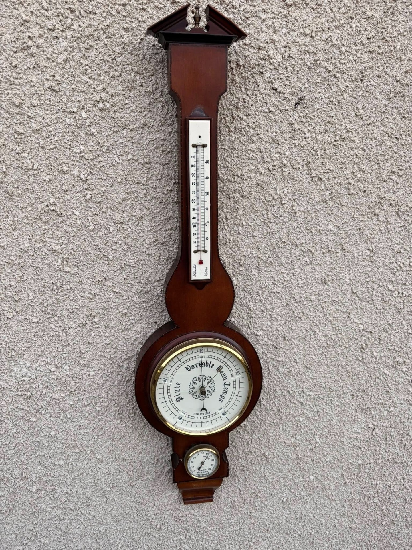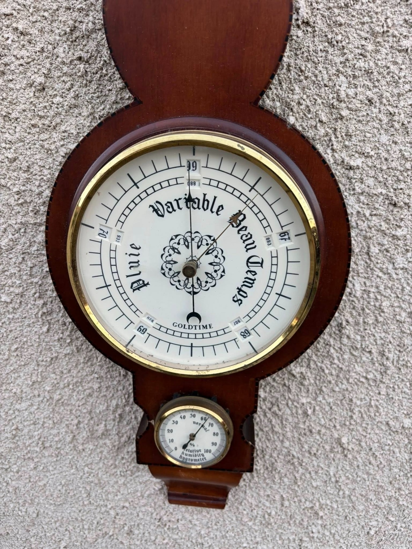 Statie meteo compusa din barometru,termometru,higrometru,in montura de lemn