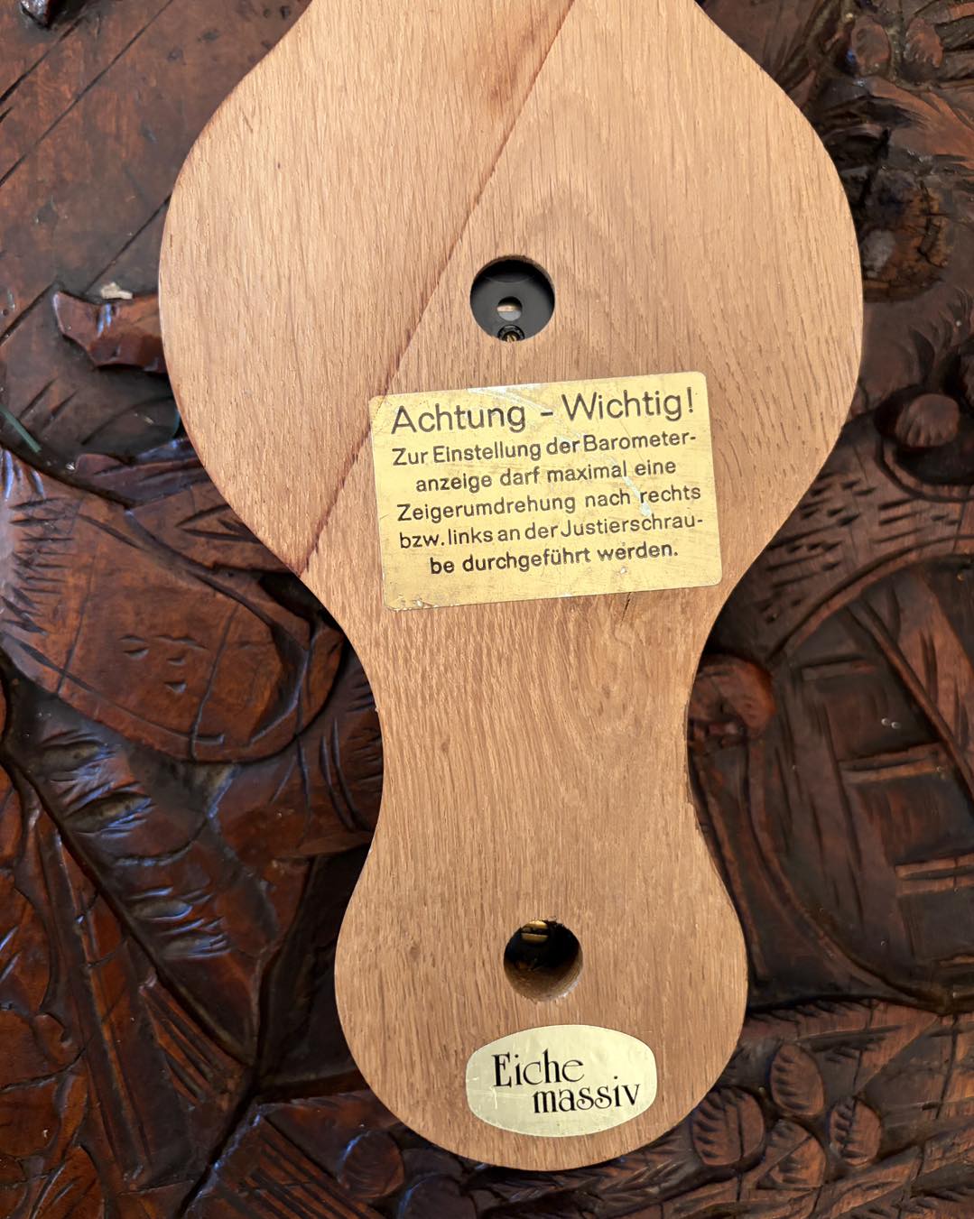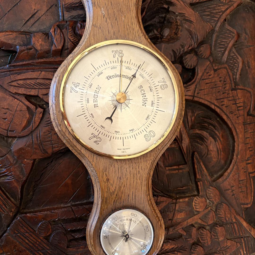 Stație meteo vintage din lemn cu barometru,termometru și higrometru.