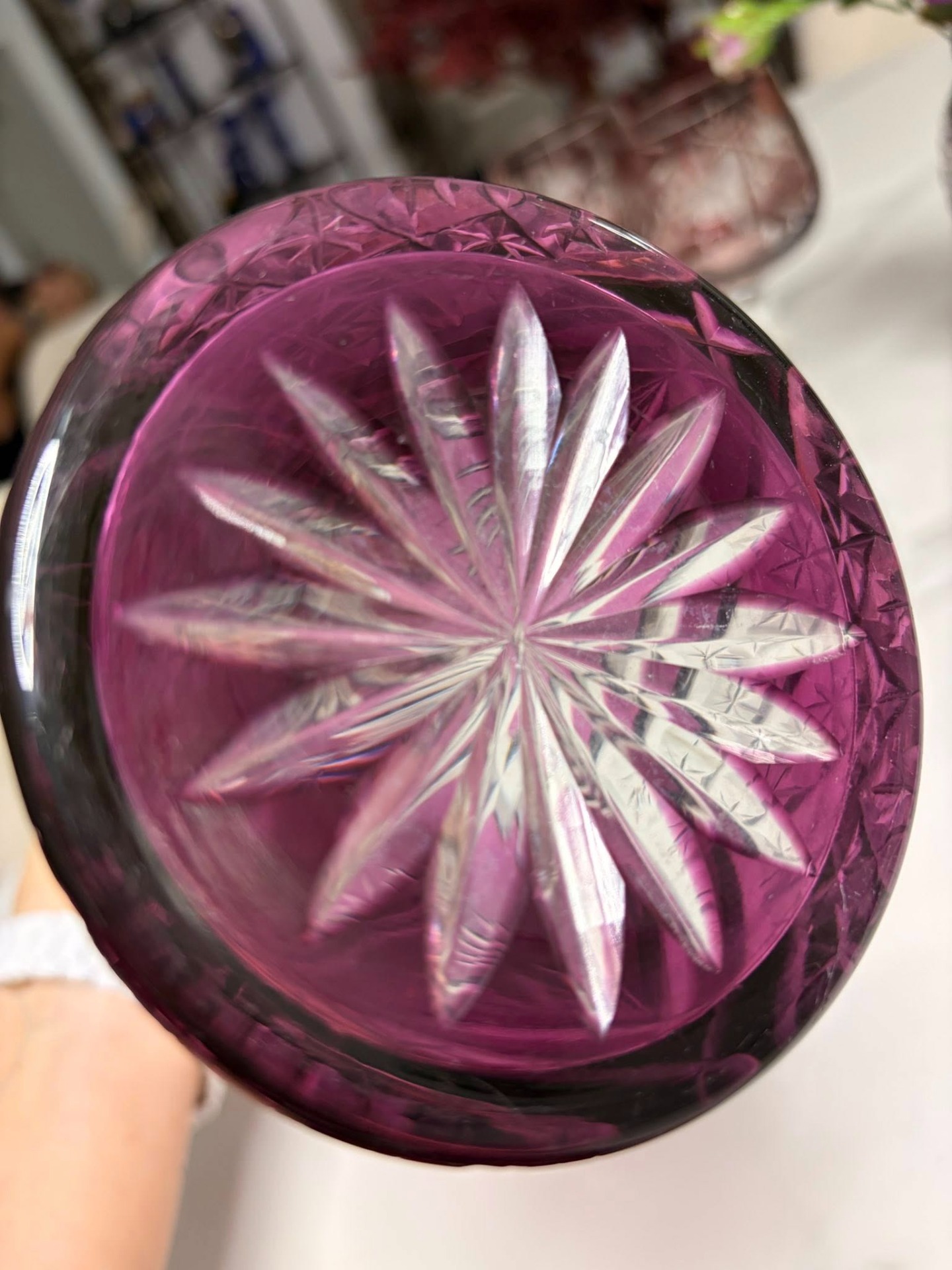 Sticlă / carafă din cristal colorat, tăiată manual