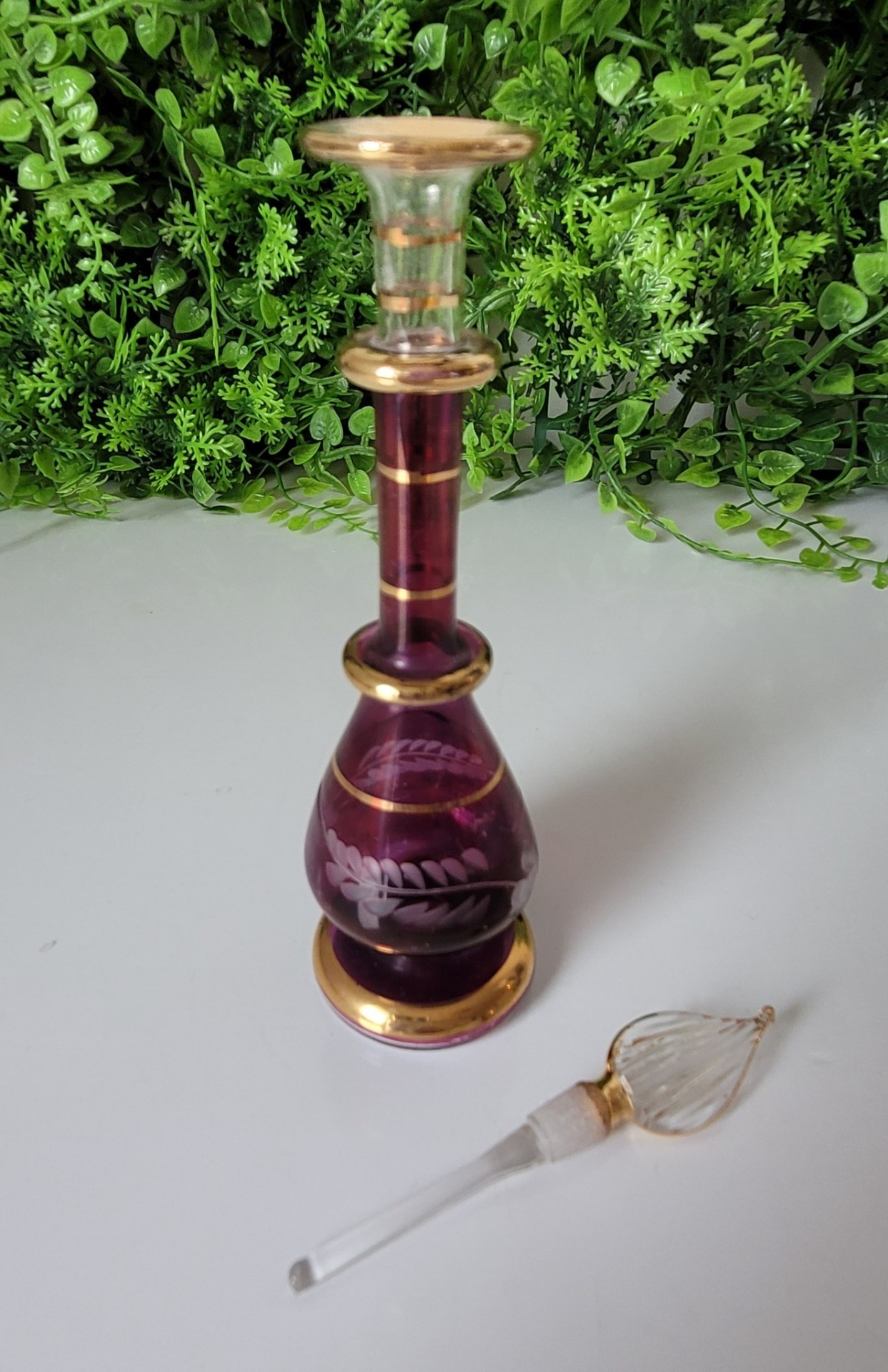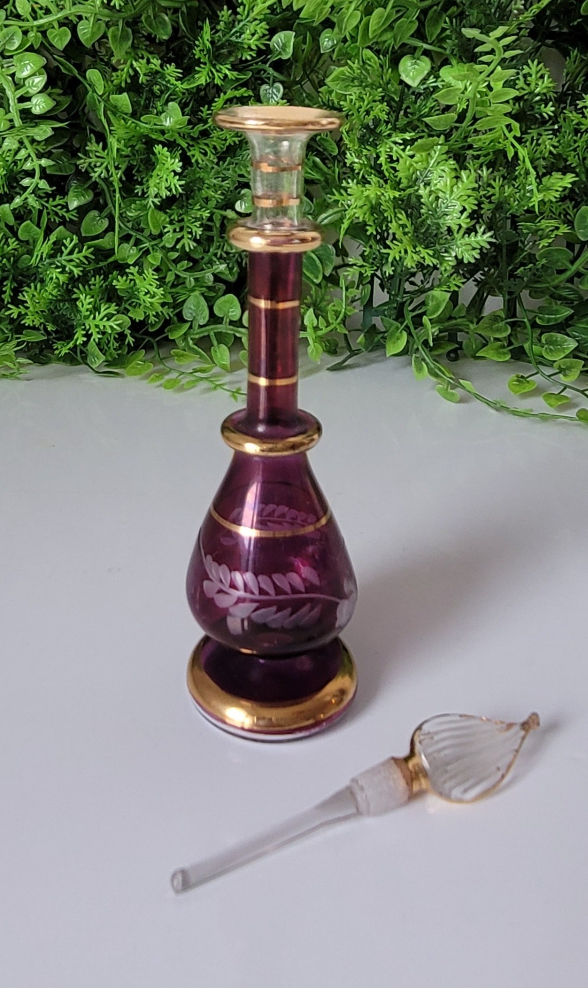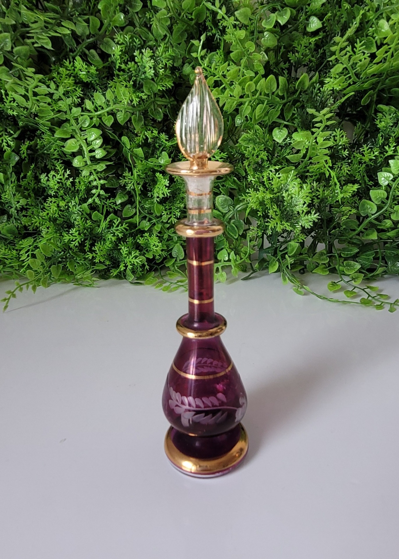 Sticlă de parfum egipteană, din sticlă suflată, aurită și gravată, manufactură tradițională.