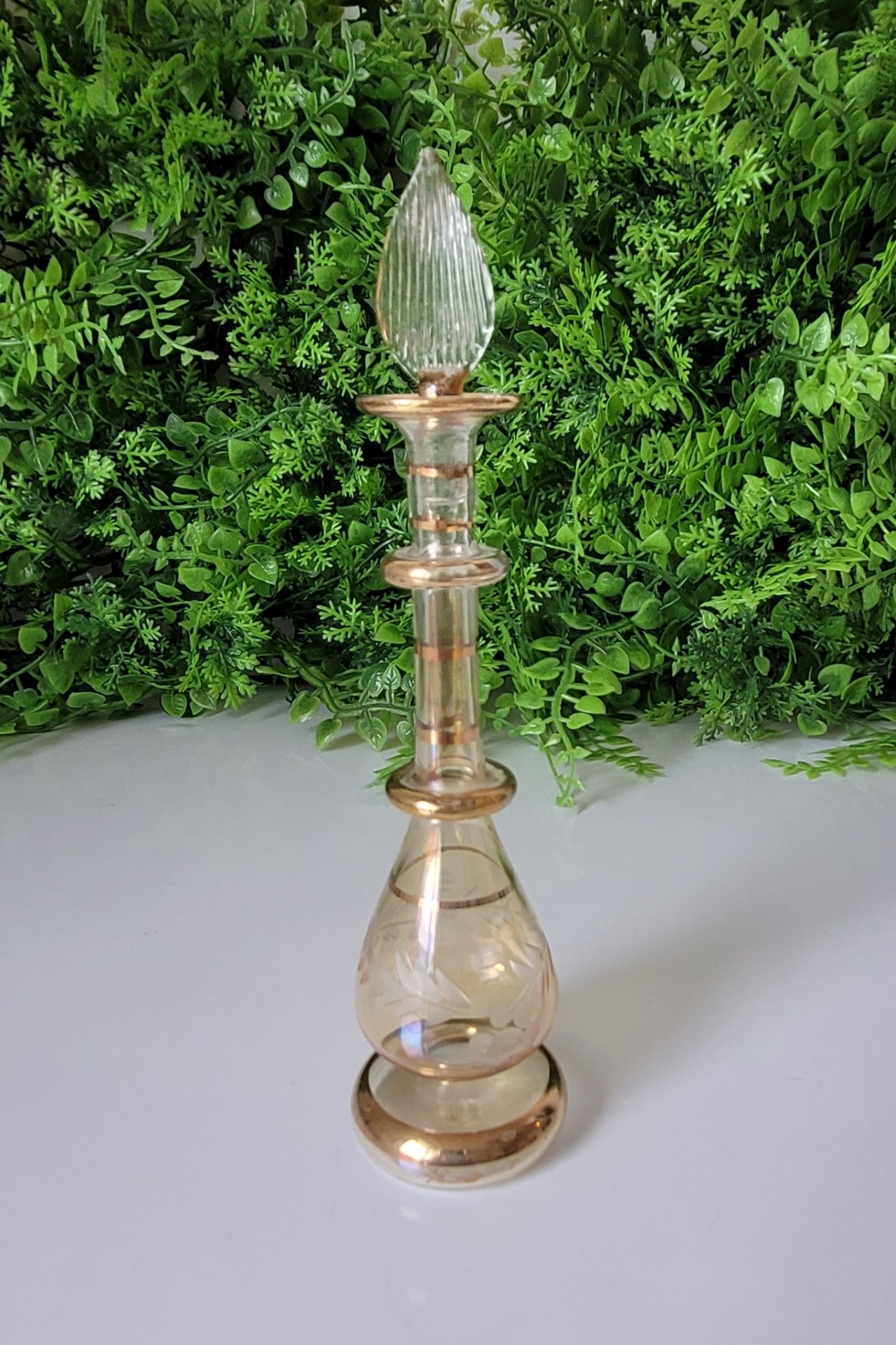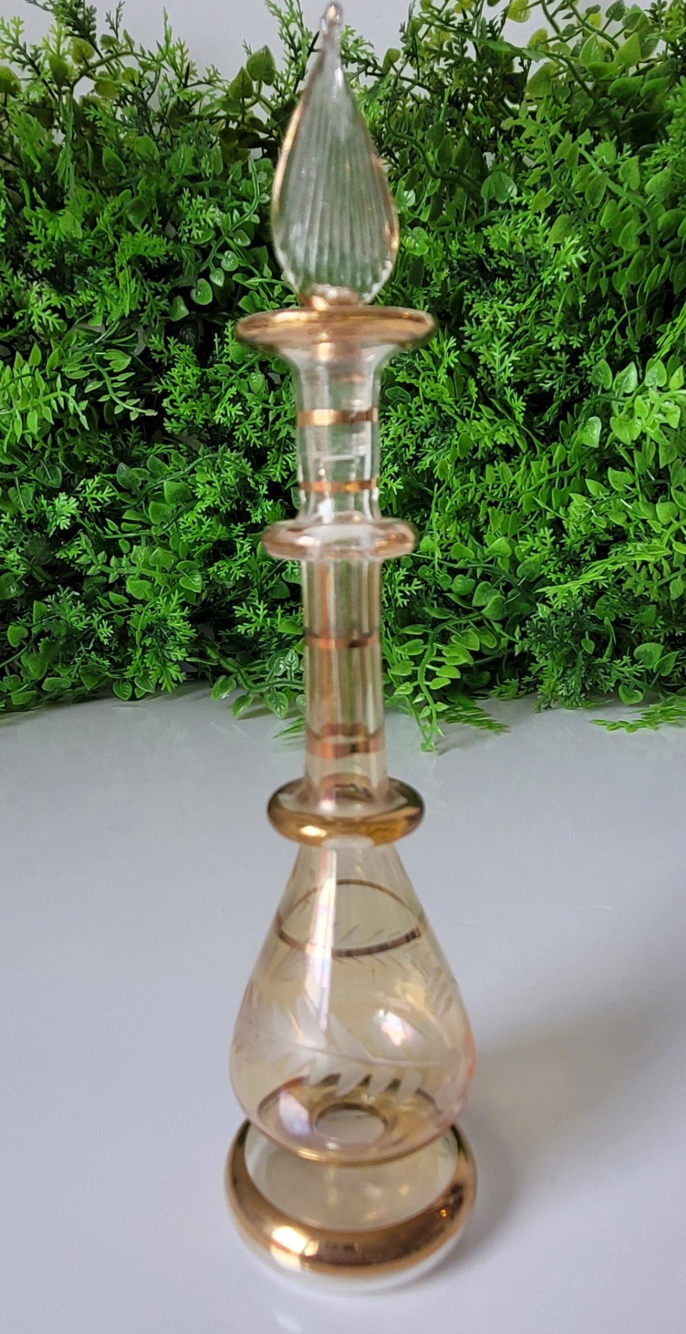 Sticlă egipteană de parfum, suflată cu gura și modelată manual, potrivită pentru parfumuri, uleiuri esenţiale sau ca obiect decorativ.
