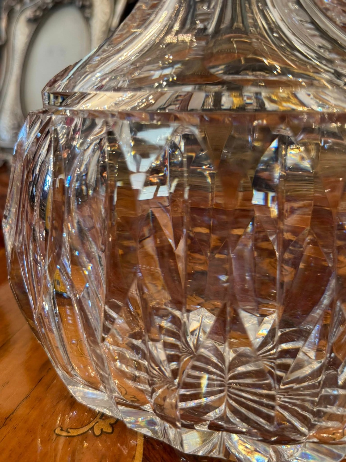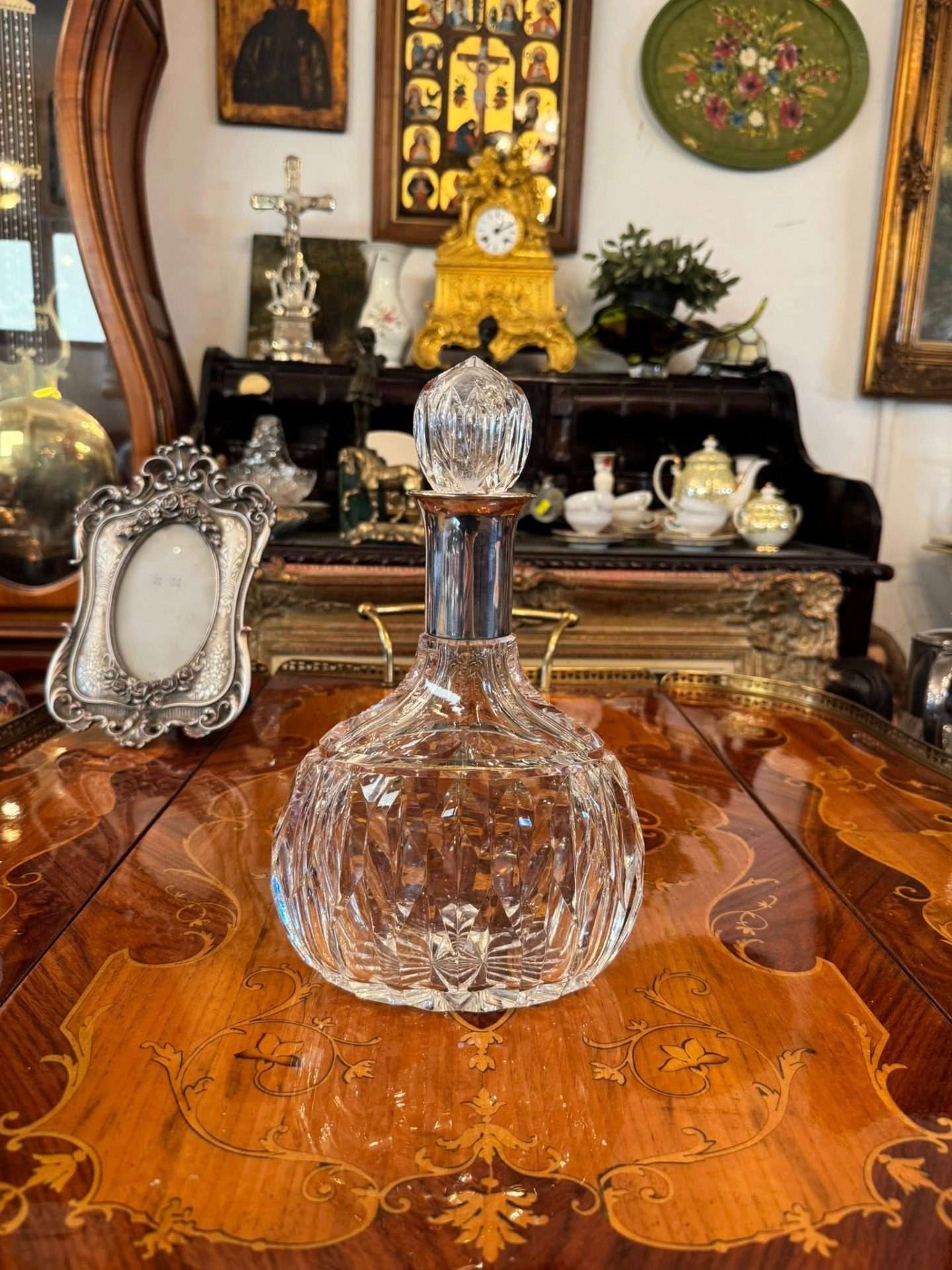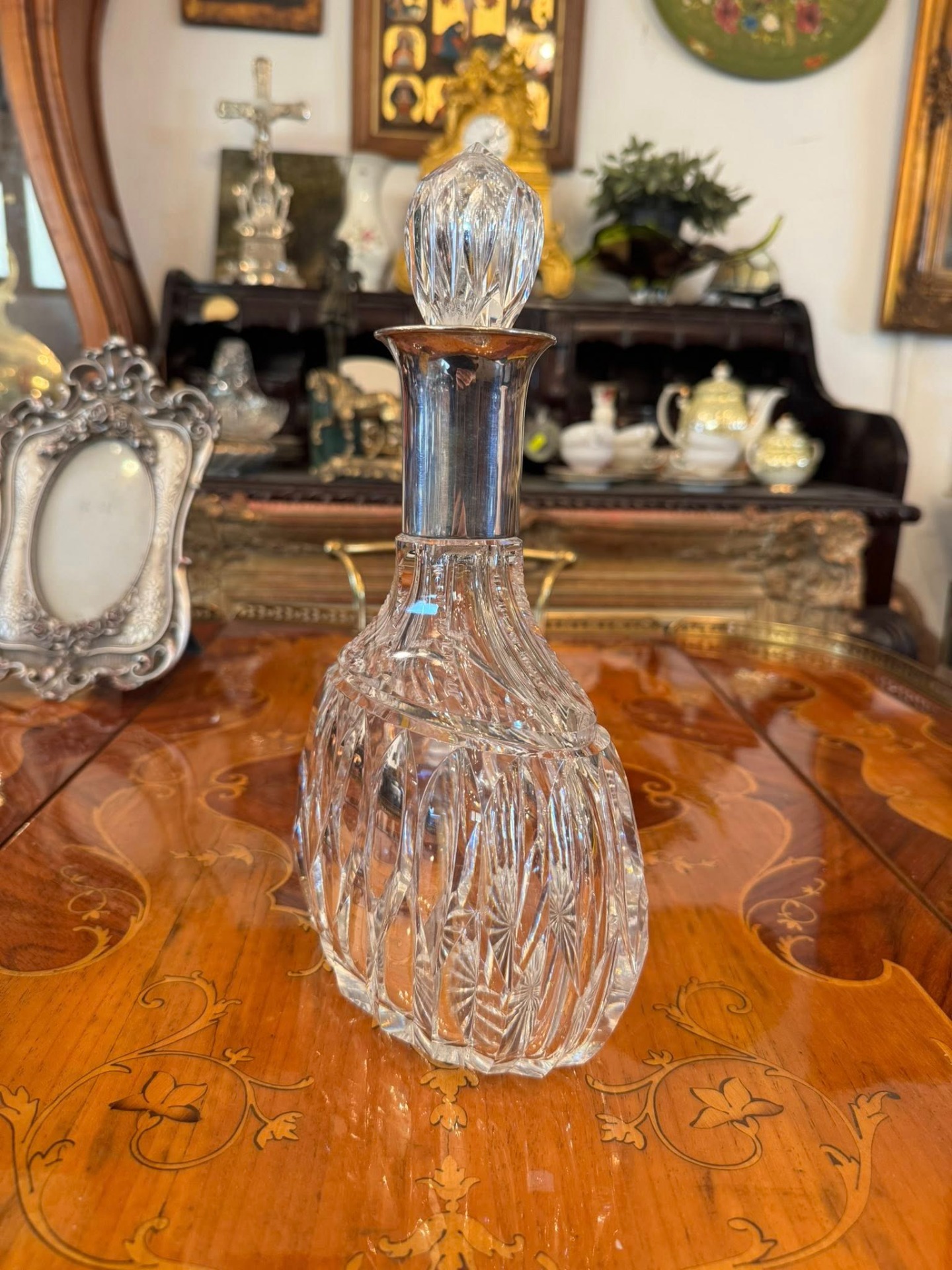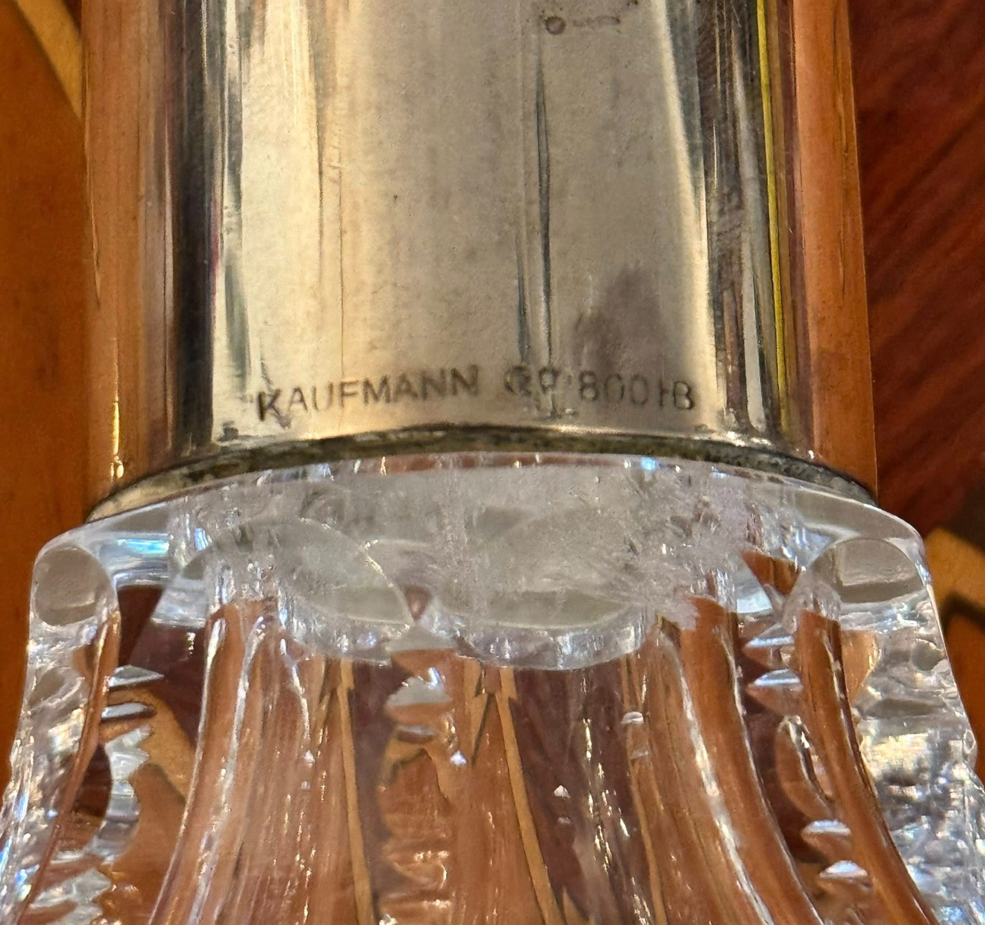 Sticlă realizată din cristal greu, tăiat manual, cu o montură de argint în stilul Neoclasic.(cca 1930)