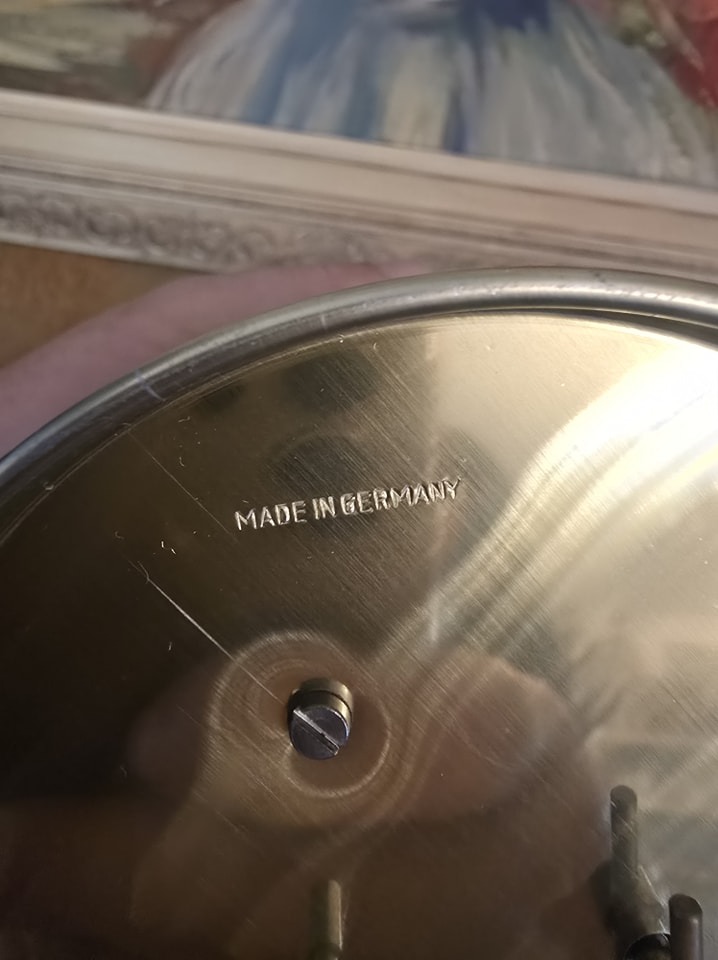 Sticla veche pentru băuturi în montura de cupru cu sistem muzical,