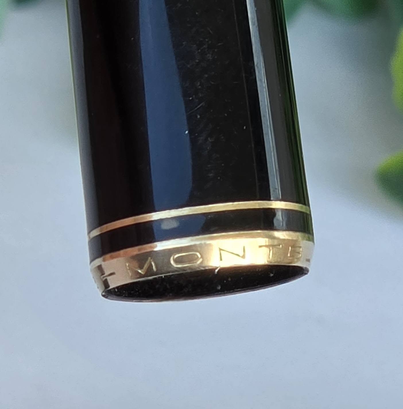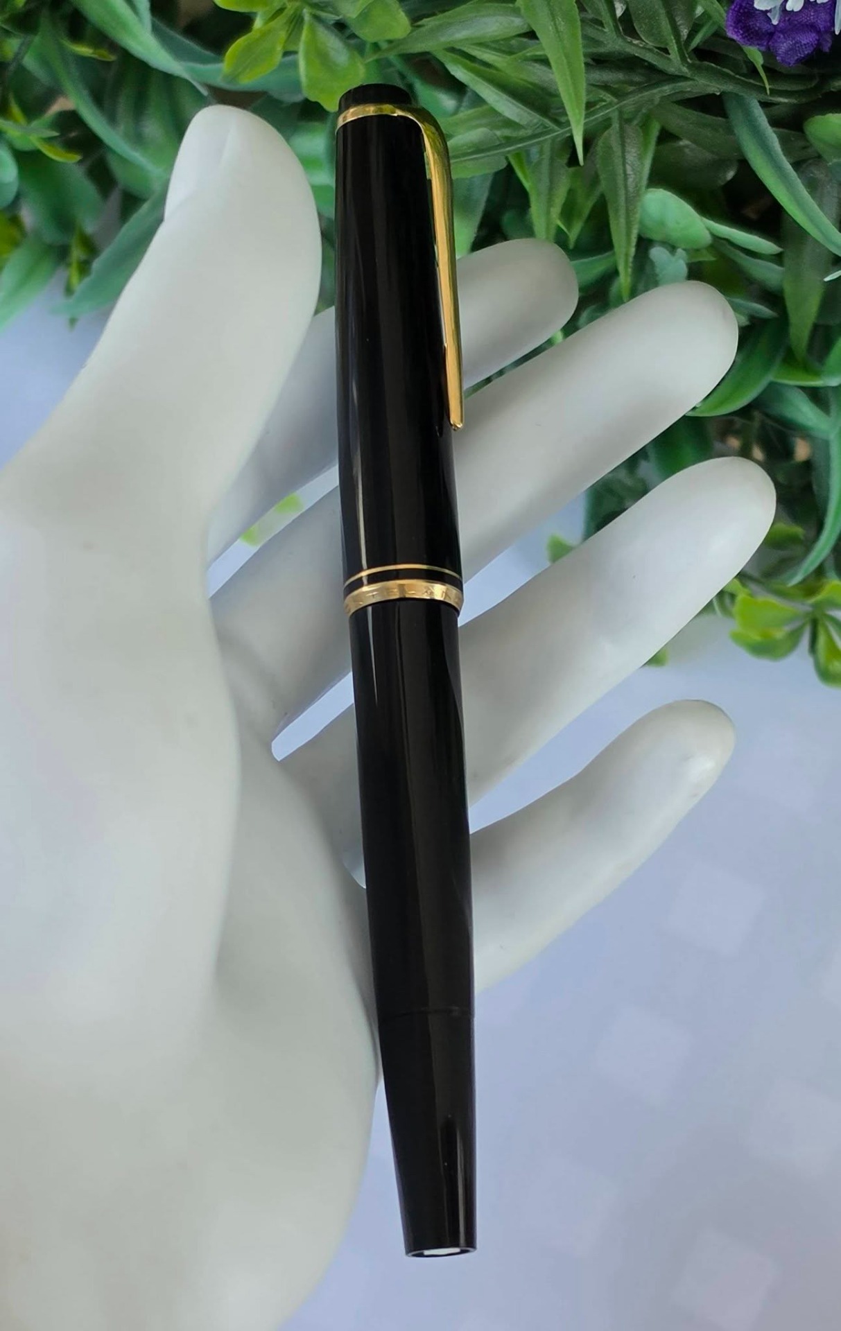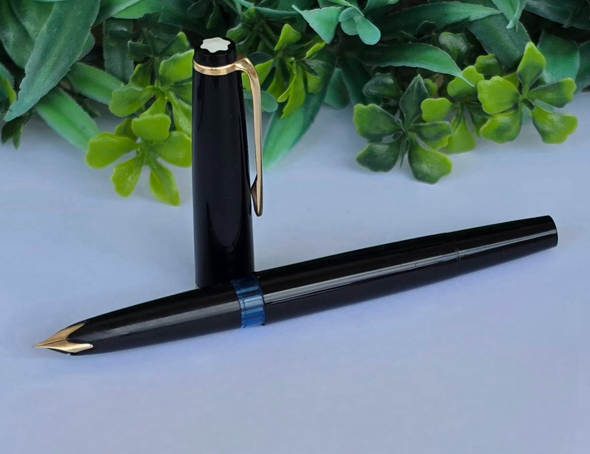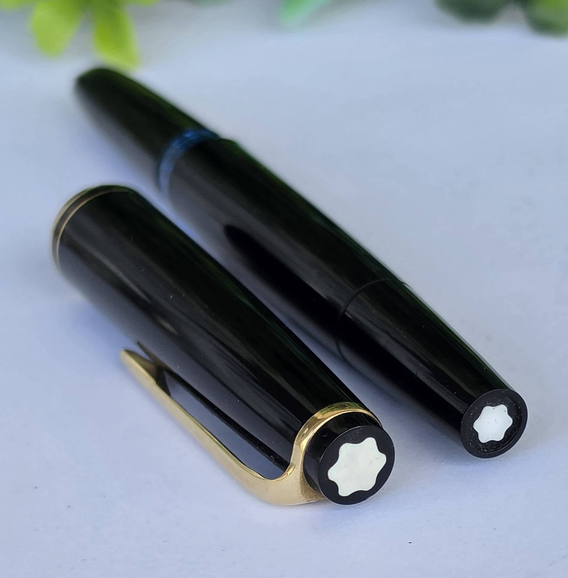 Stilou vintage Montblanc Meisterstuck 22, rar, de colecție, din rășină prețioasă și accente aurite, cu peniță "wing-nib" (aripă) din aur de 14K și rezervor pentru cerneală, cu piston, în stare foarte bună, atât estetic cât și funcțional (anii 1960, Germania).