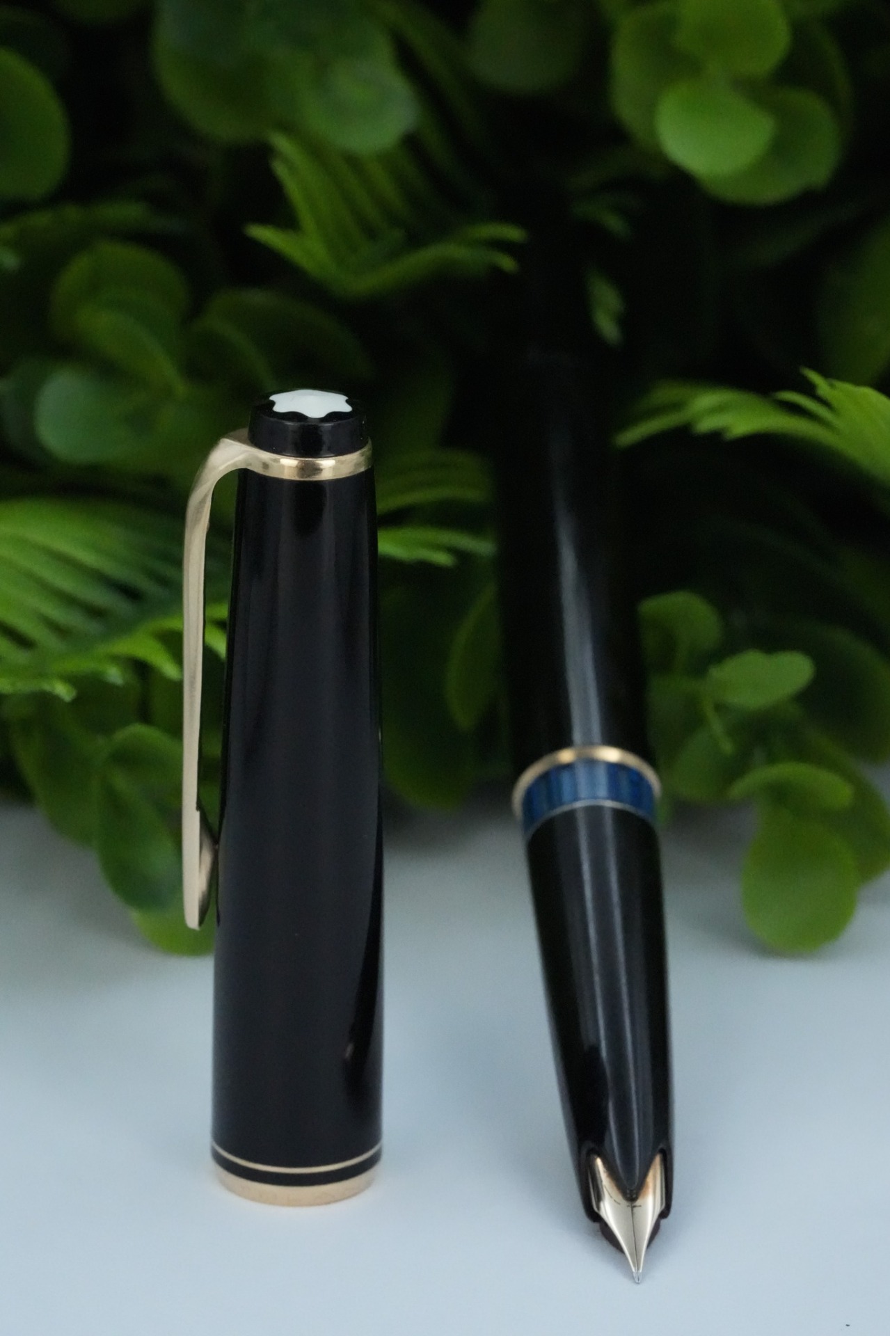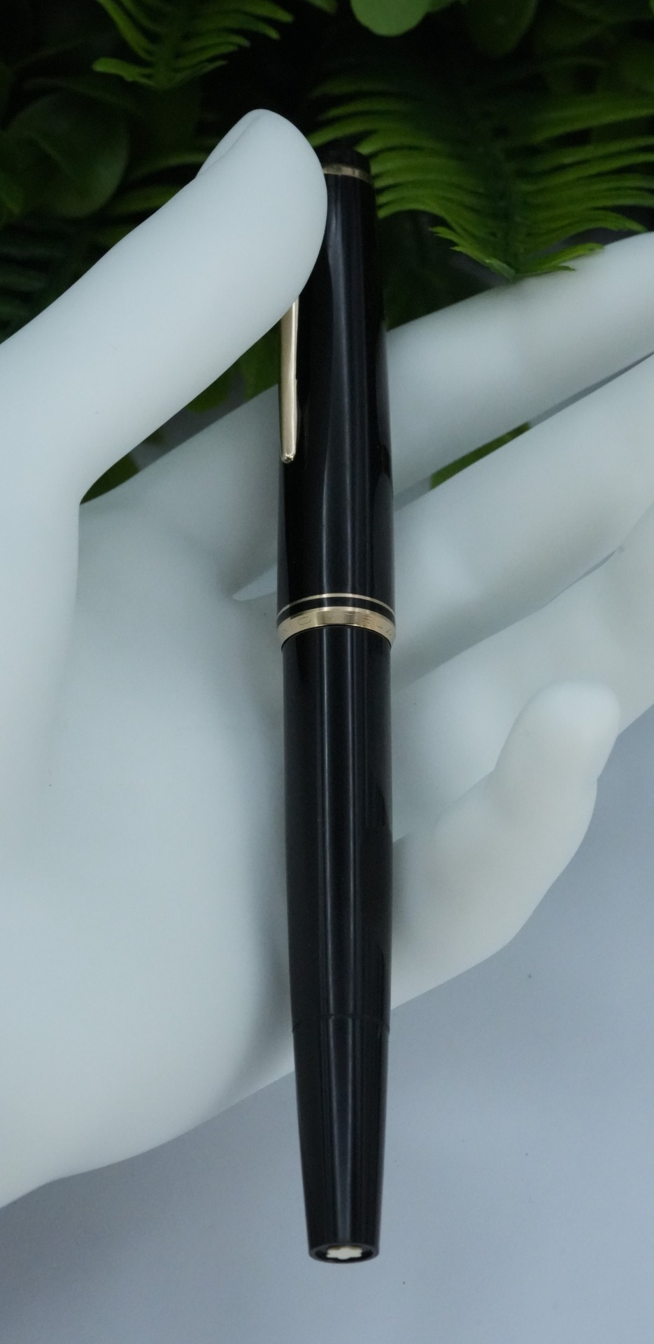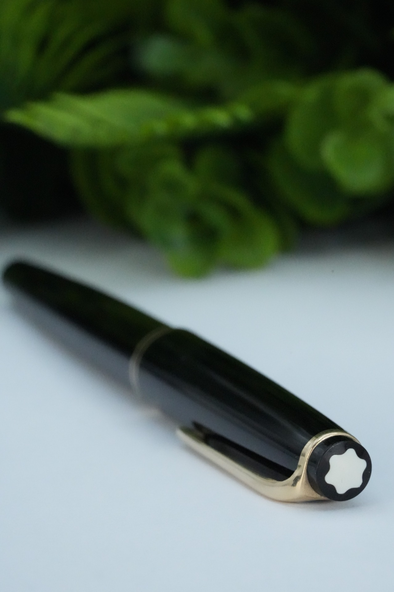 Stilou vintage Montblanc Meisterstuck 22, rar, de colecție, din rășină prețioasă și metal aurit, cu peniță "wing-nib" (aripă) și rezervor pentru cerneală (anii 1960, Germania).