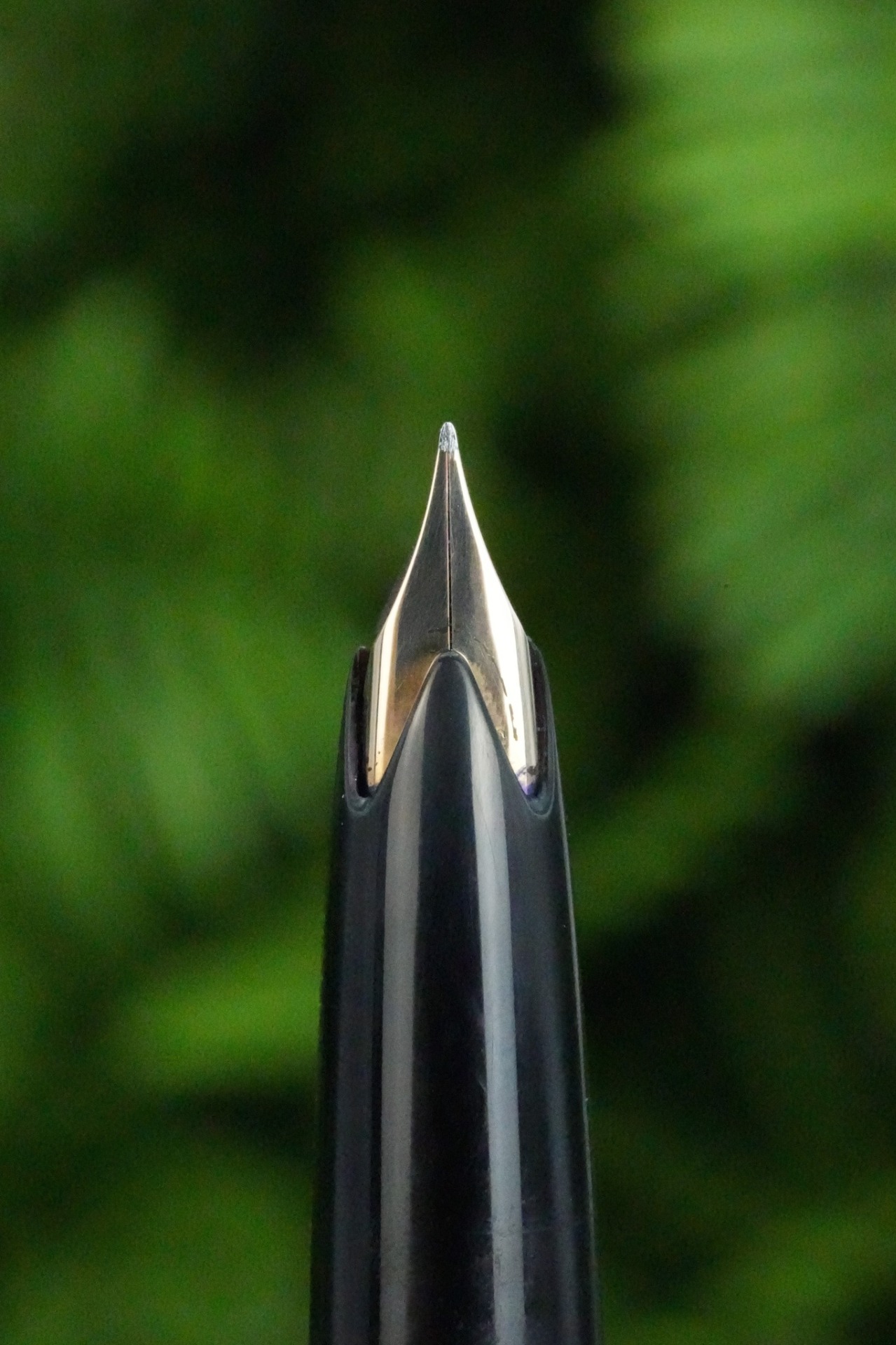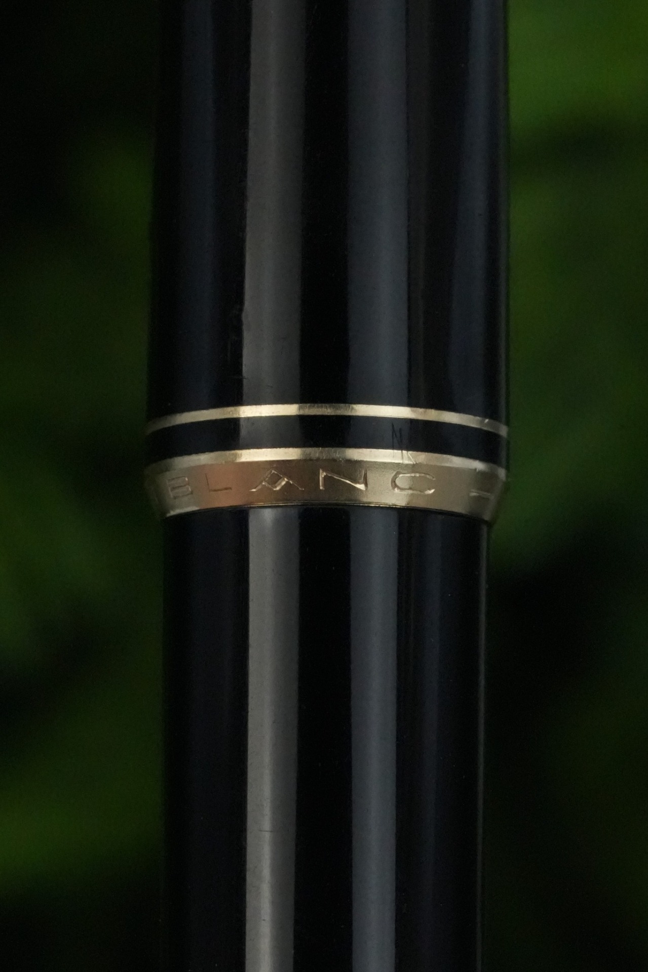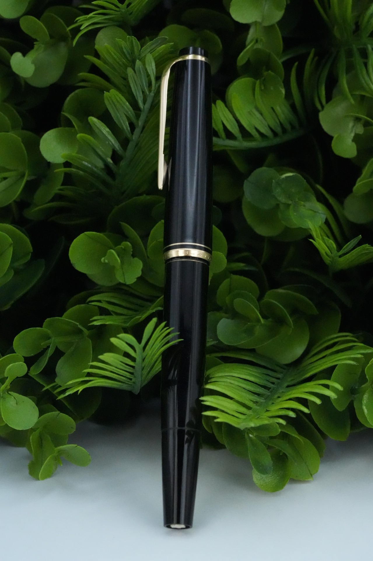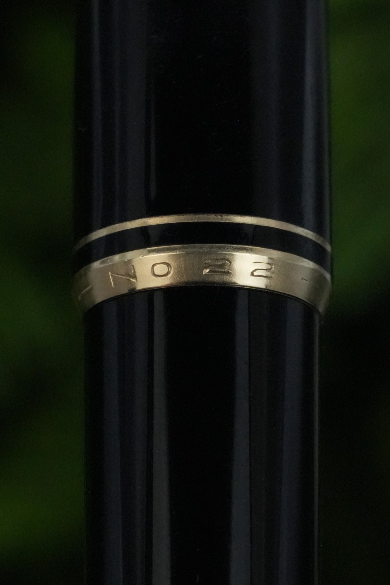 Stilou vintage Montblanc Meisterstuck 22, rar, de colecție, din rășină prețioasă și metal aurit, cu peniță "wing-nib" (aripă) și rezervor pentru cerneală (anii 1960, Germania).