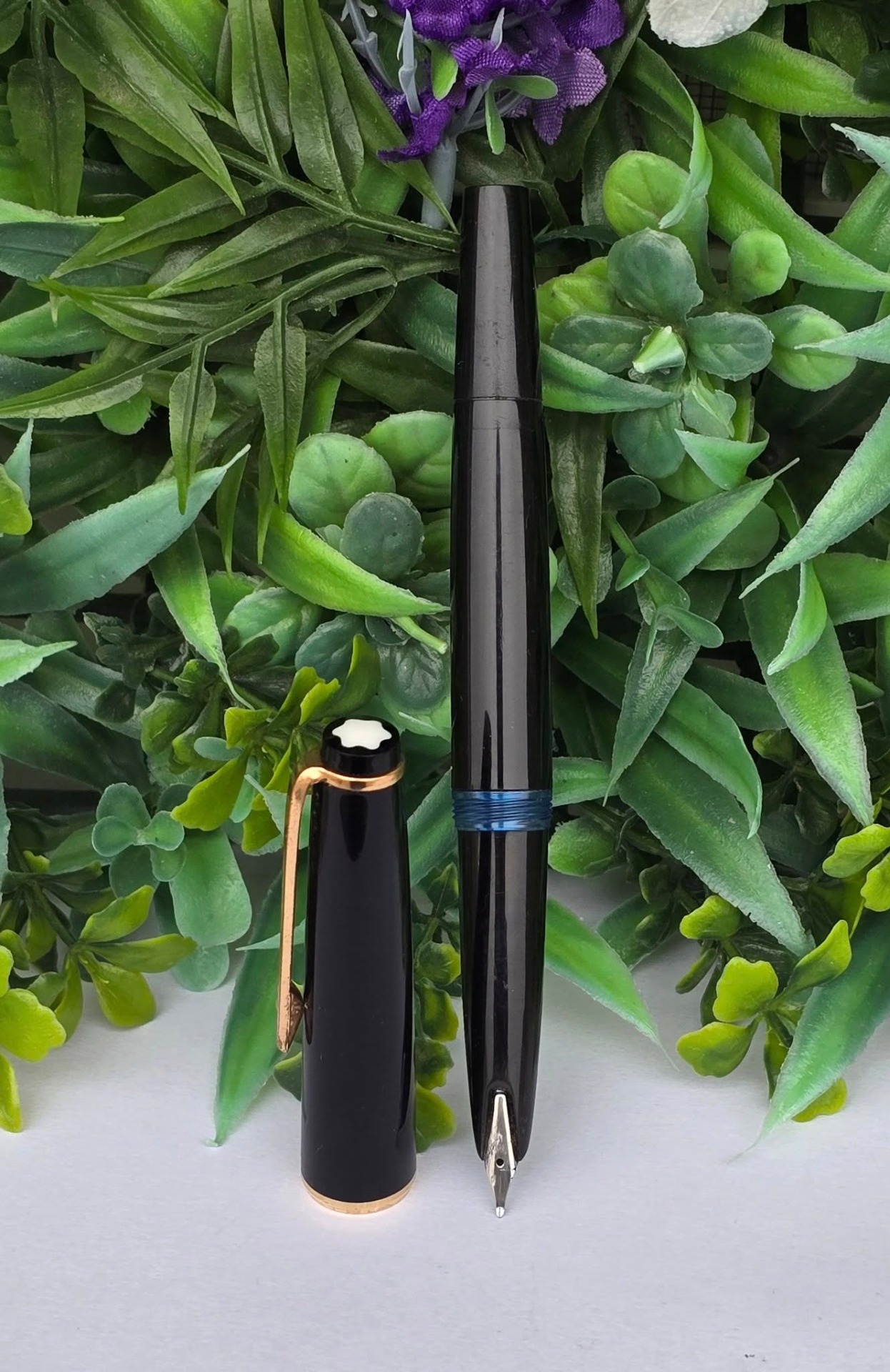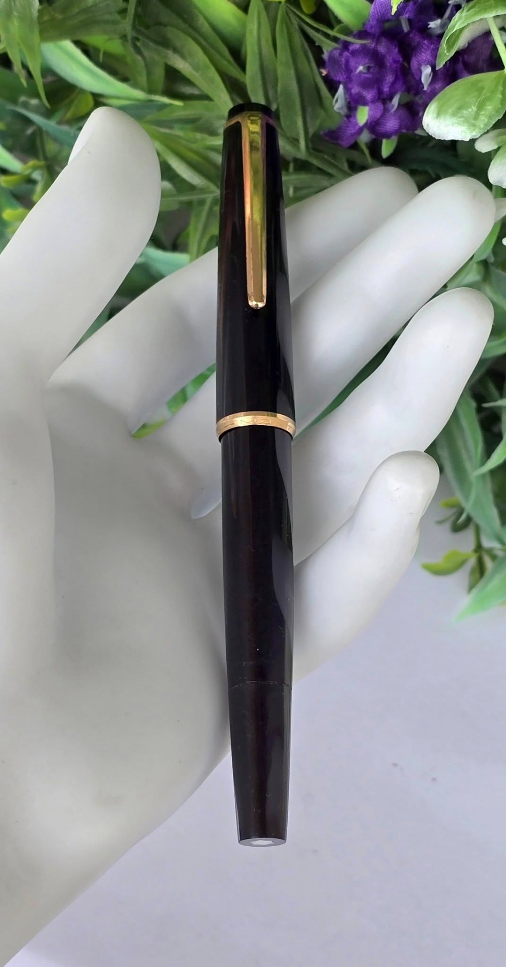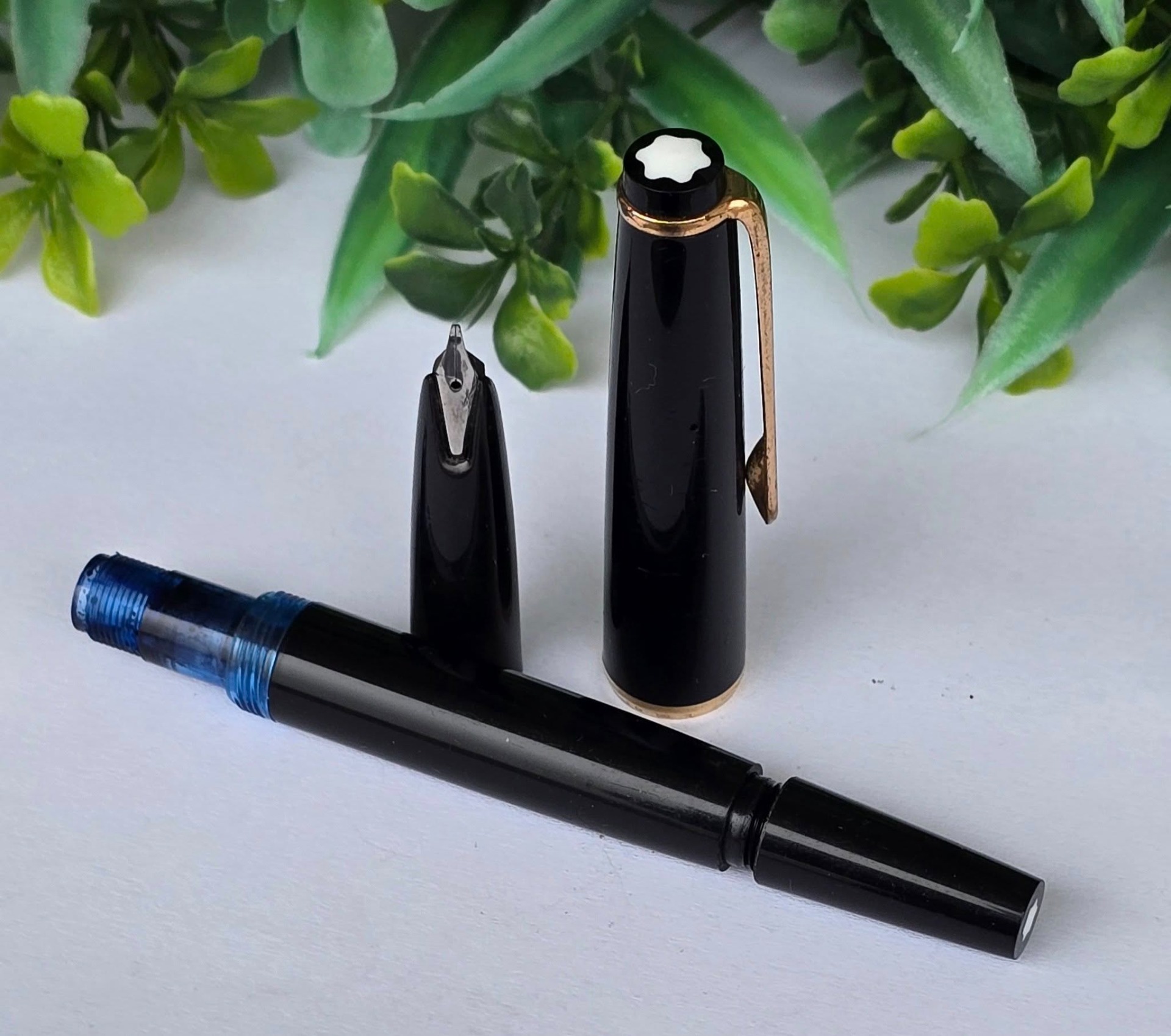 Stilou vintage Montblanc Meisterstuck 31, rar, de colecție, din rășină prețioasă și metal aurit, cu peniță "wing-nib" (aripă) și rezervor pentru cerneală (anii