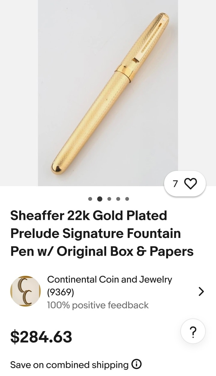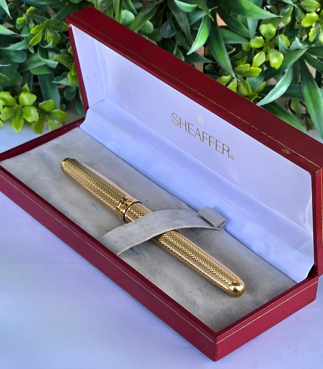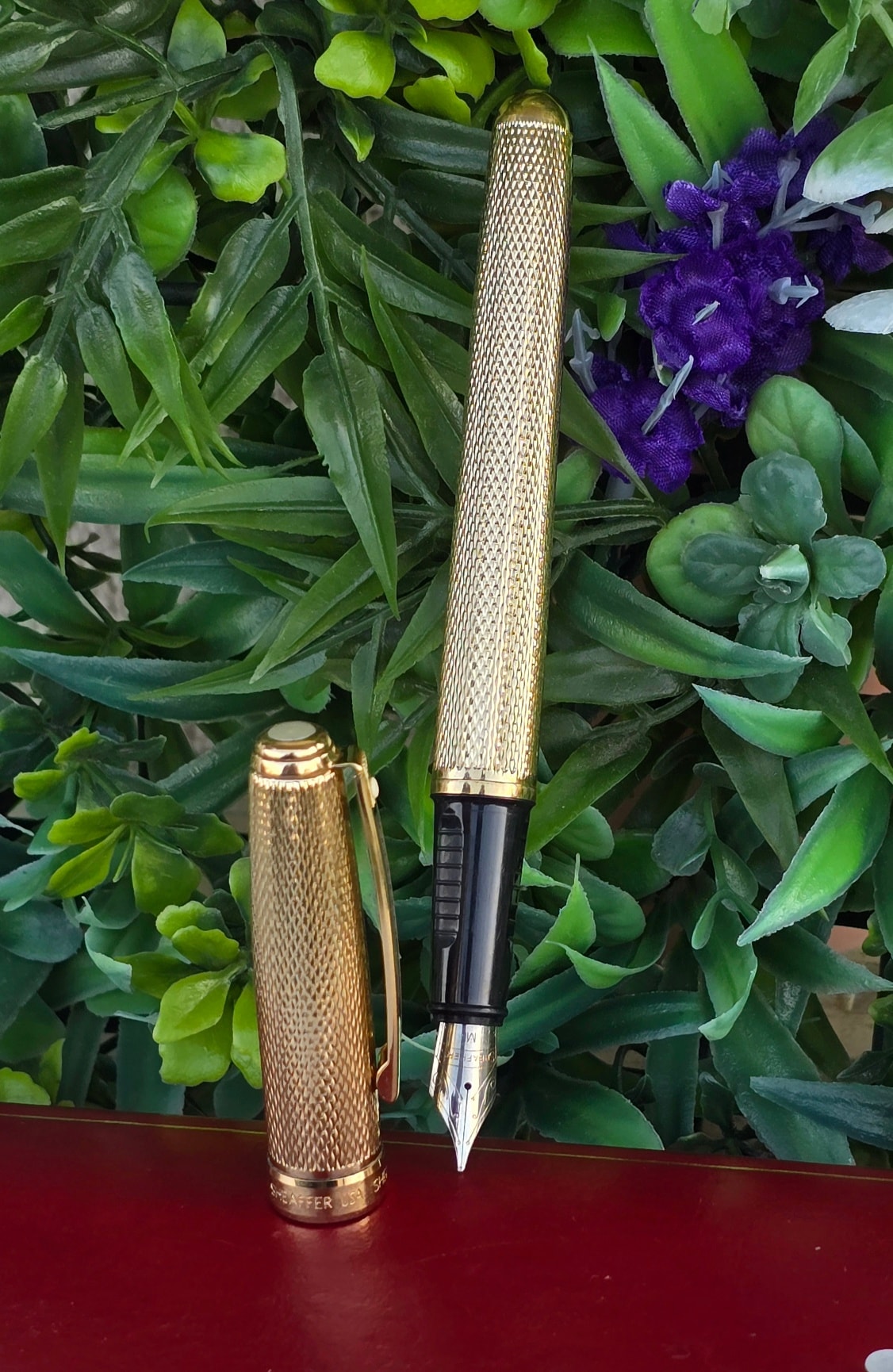 Stilou vintage Sheaffer Prelude Fountain Pen, de colecție, placat cu aur de 22K, cu rezervor pentru cerneală (anii 1970-1980, SUA).