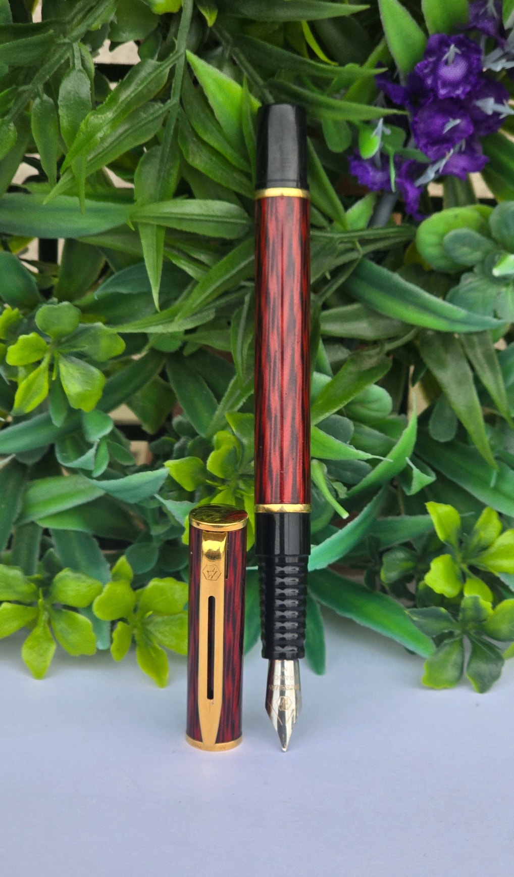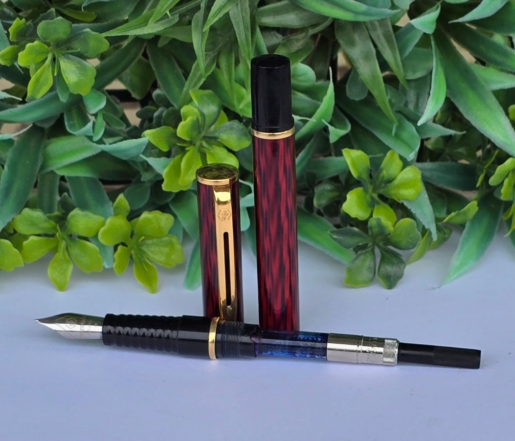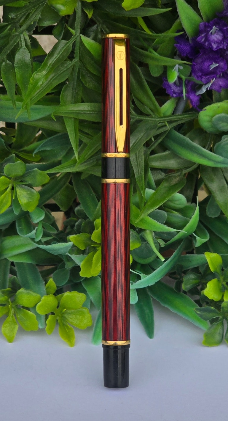 Stilou vintage Waterman Laureat Red Marble Fountain Pen, de colecție, cu rezervor pentru cerneală și peniță din oțel (anii 1980, Franța).