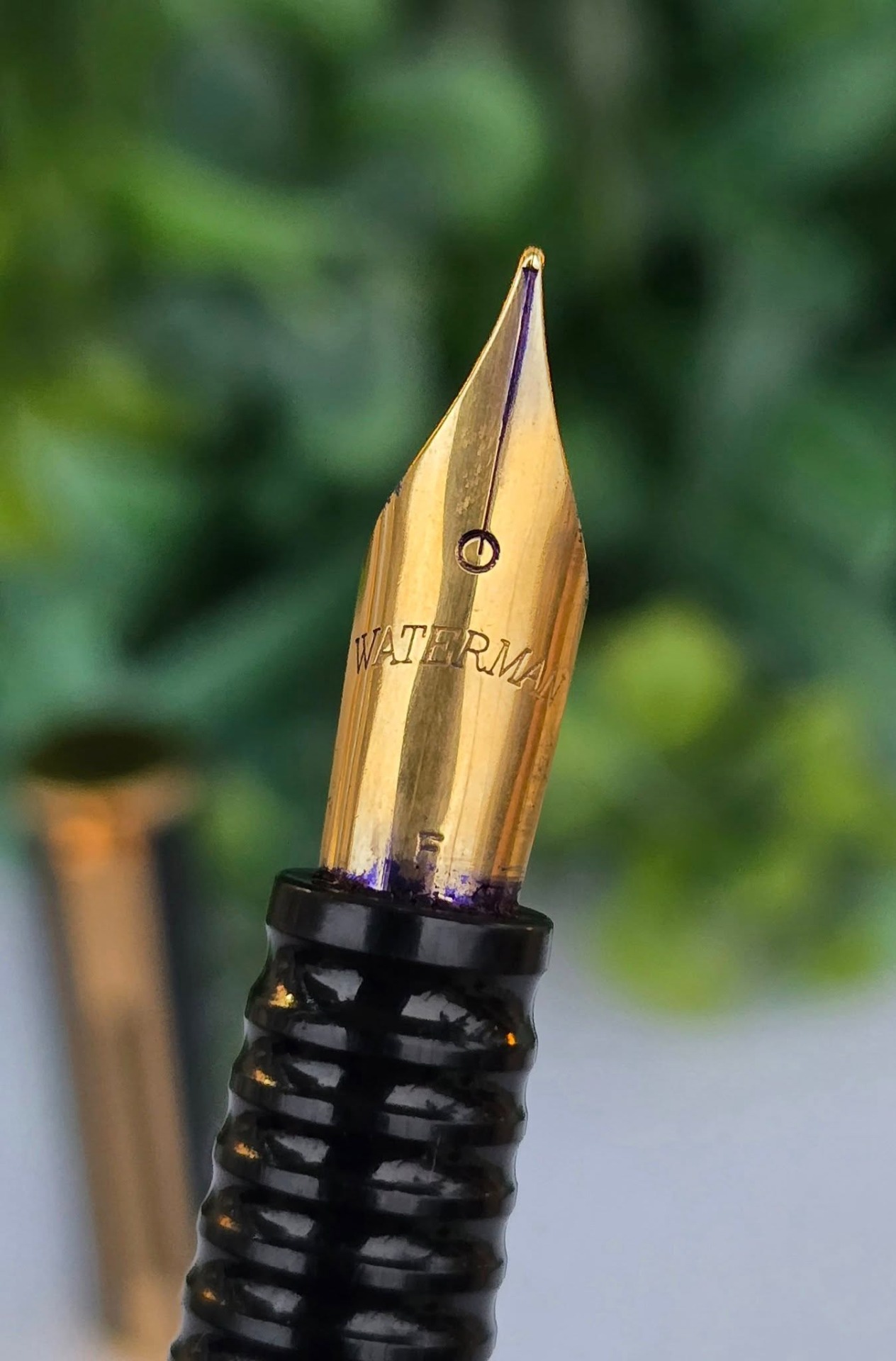 Stilou vintage Waterman Laureate Fountain Pen, de colecție, alimentare cu cartușe de cerneală și peniță din oțel aurit (anii 1970, Franța).