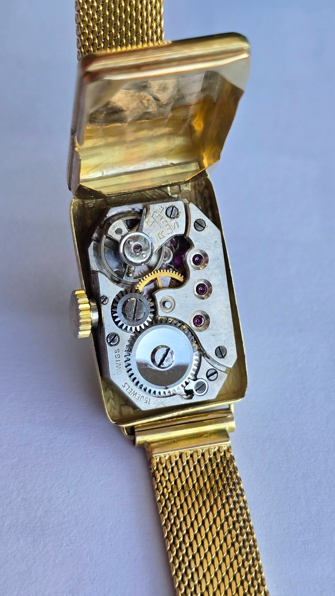Nu este doar o bijuterie, ci o piesă de istorie orologeră, cu carcasa și brățara realizate integral din aur masiv de 14K și purtând marcajele unor meșteri elvețieni de prestigiu.