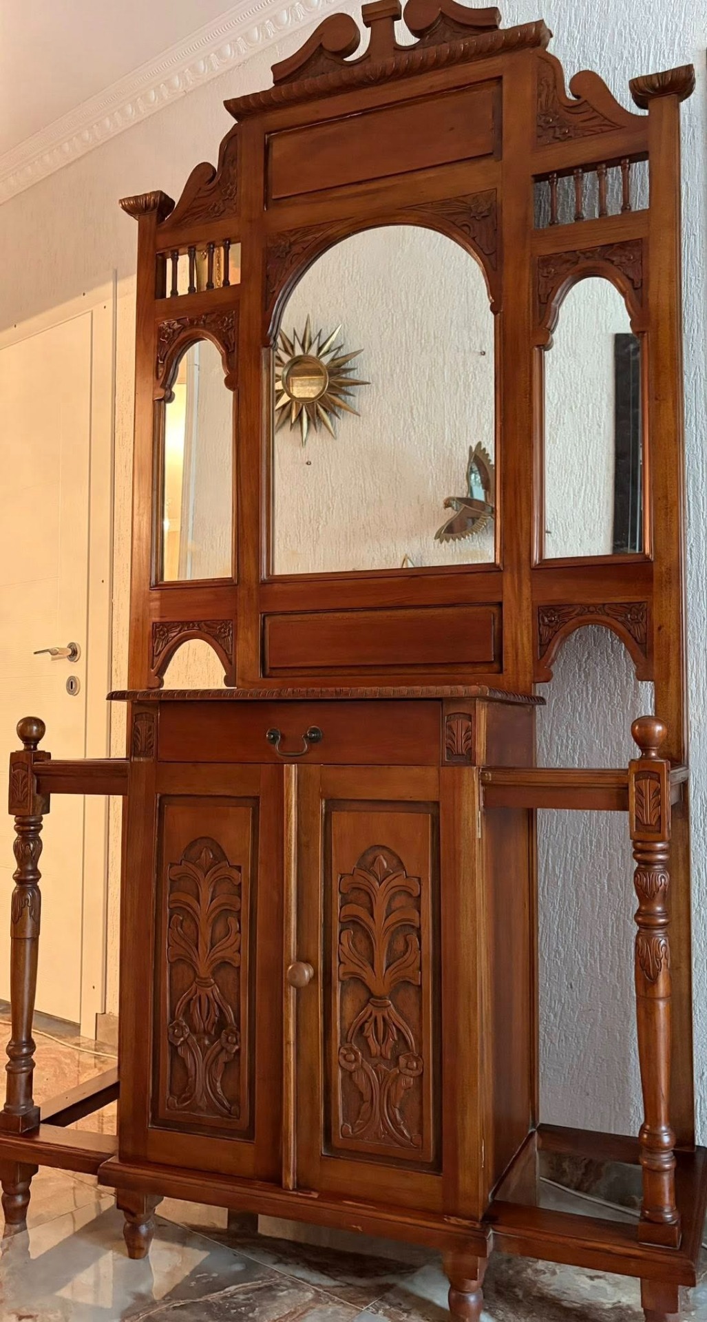 Superb dulap,impunător,cu 3 oglinzi, din lemn, sculptura deosebita.