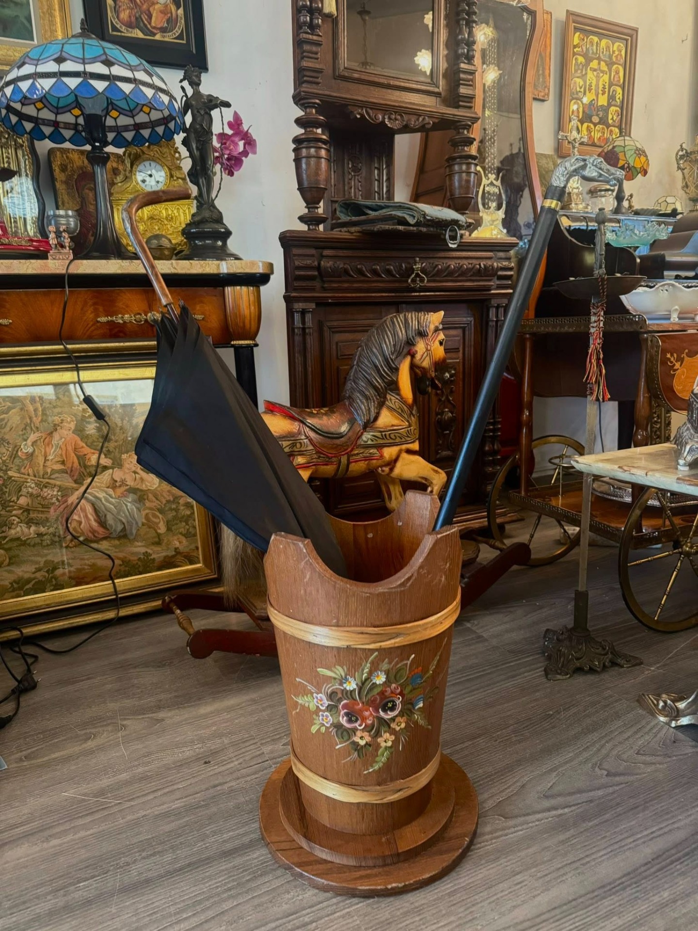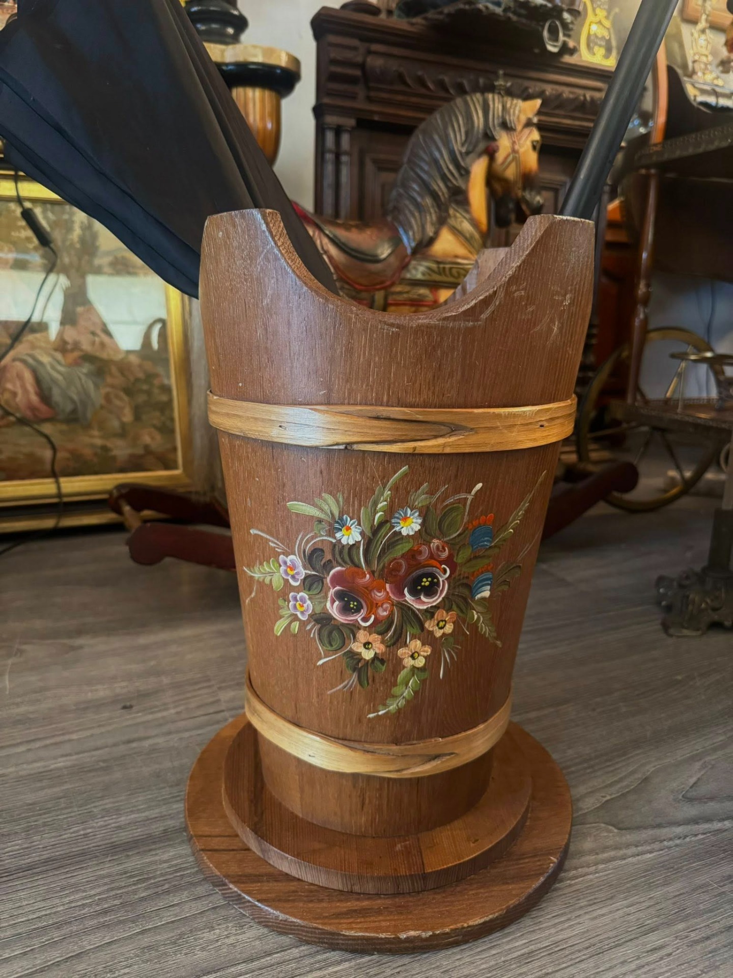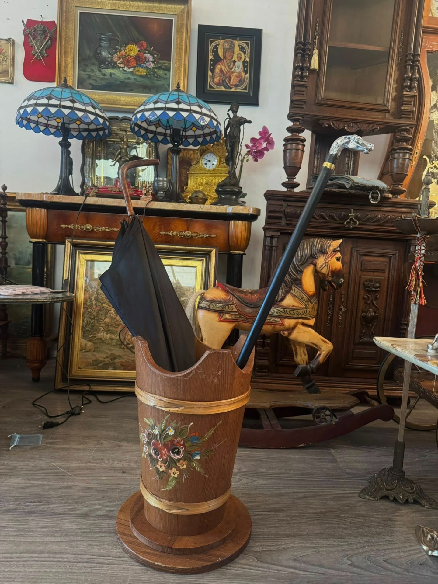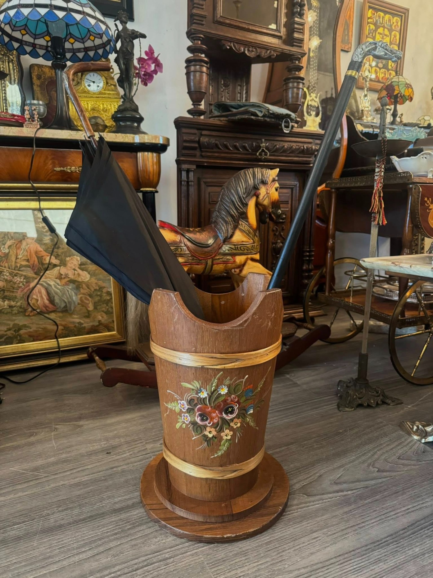 Suport de bastoane și umbrele- din lemn, pictat manual cu motiv floral