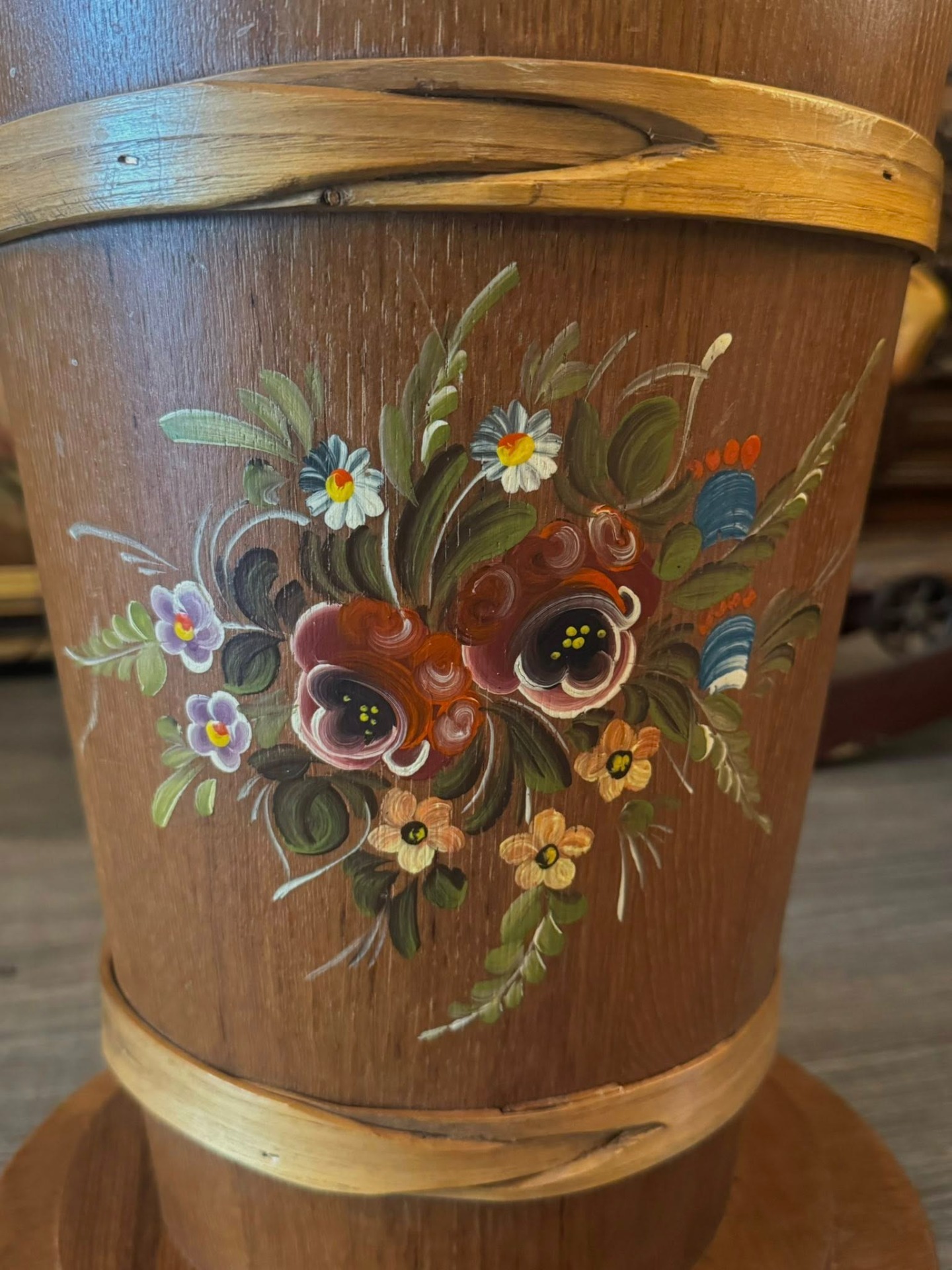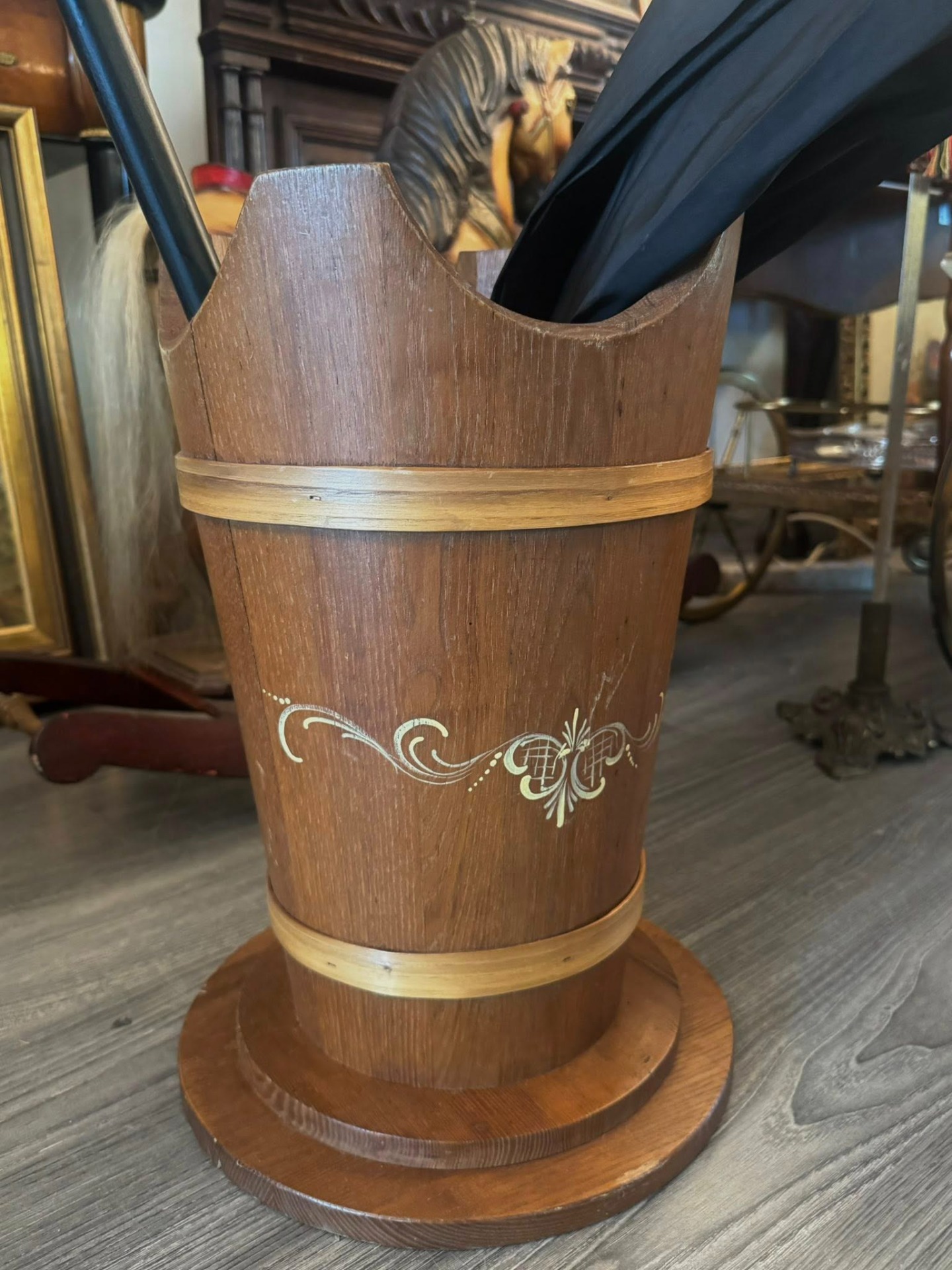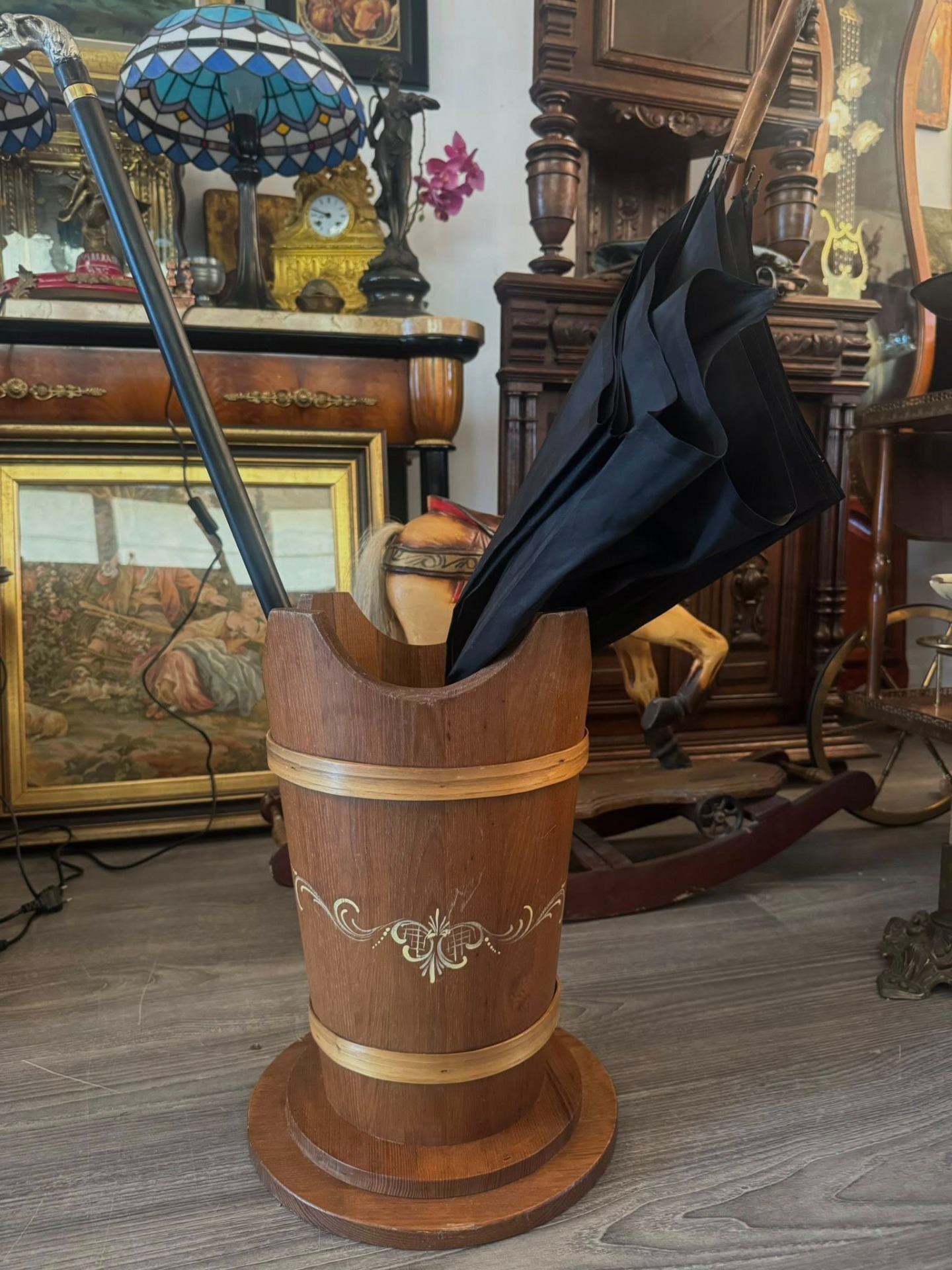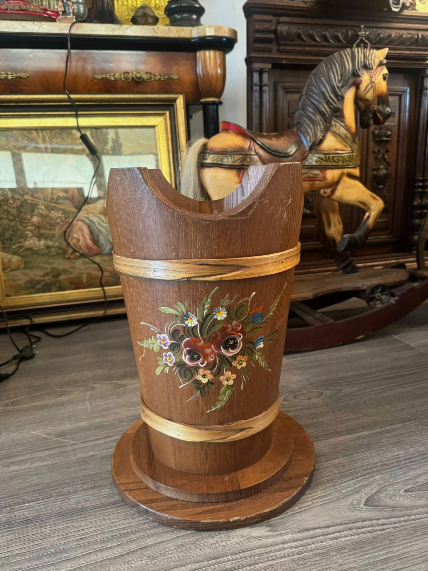 Suport de bastoane și umbrele- din lemn, pictat manual cu motiv floral