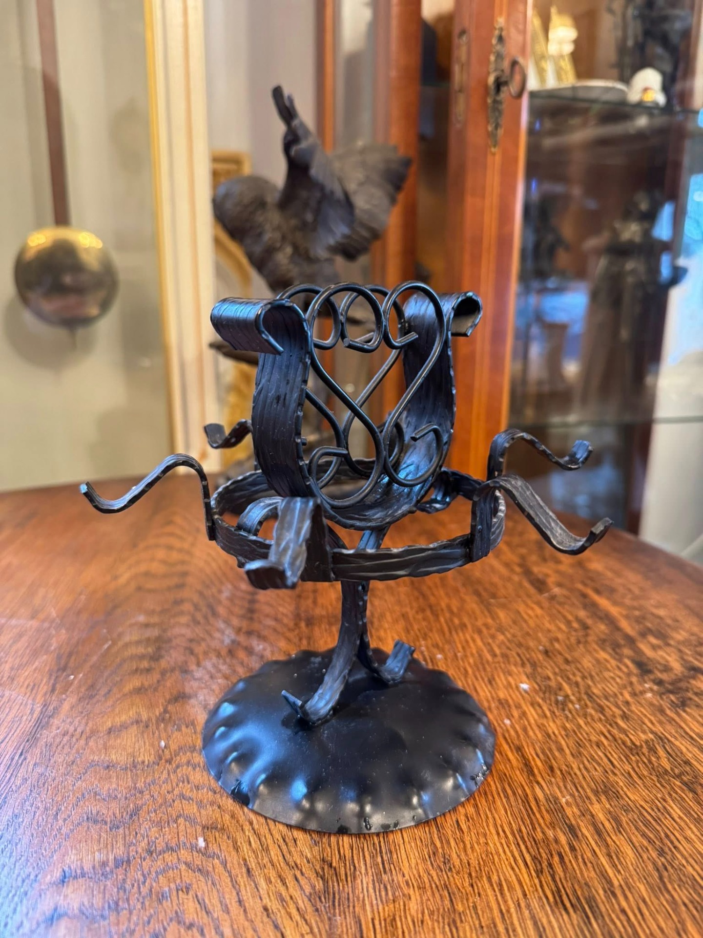 Suport decorativ din fier forjat, lucrat manual, conceput special pentru a expune seturi de porțelan sau obiecte de colecție.