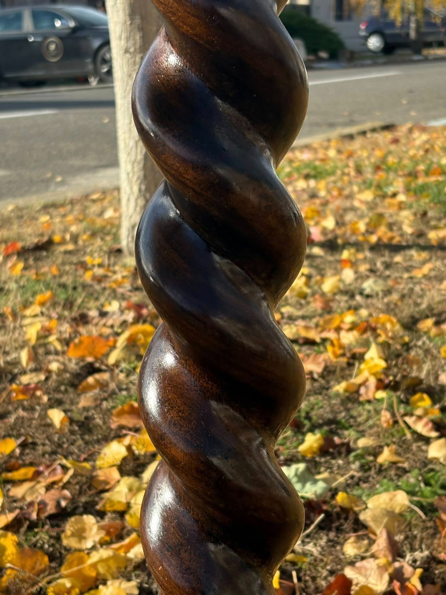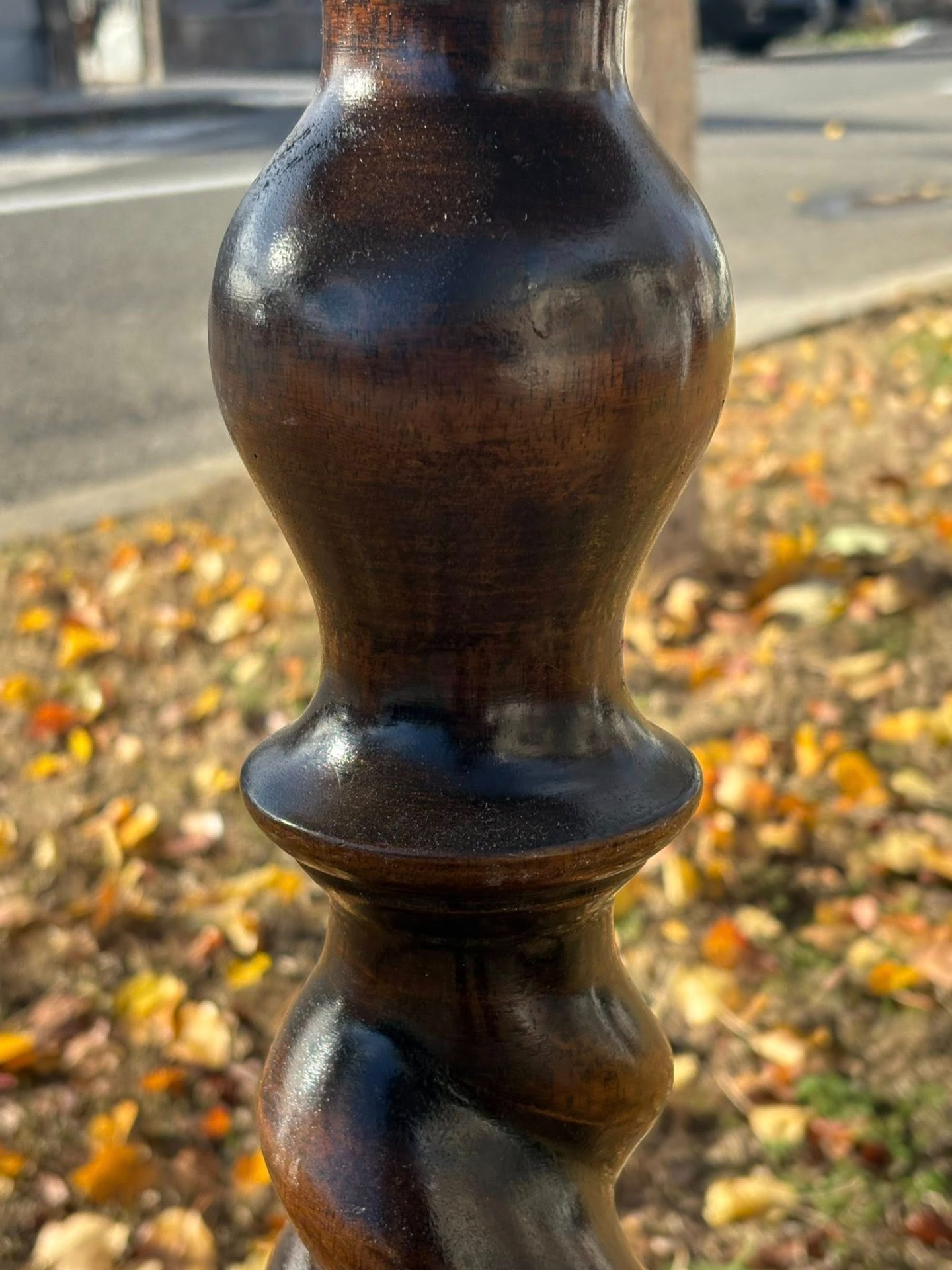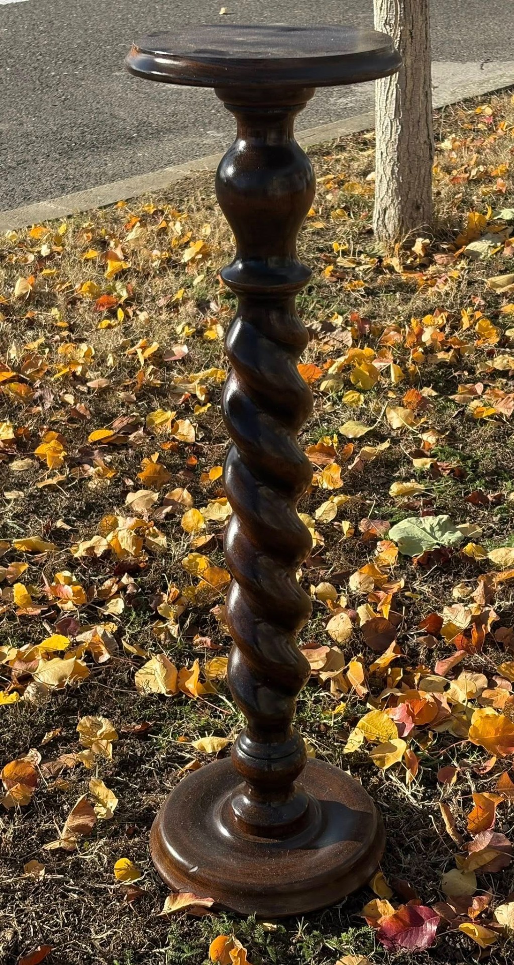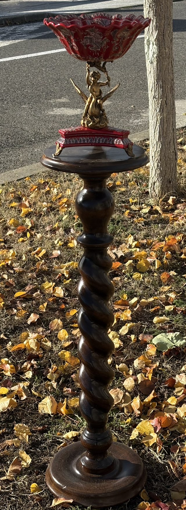 Suport decorativ din lemn masiv, realizat în stil clasic, cu picior sculptat în formă de spirală (model „twist”).