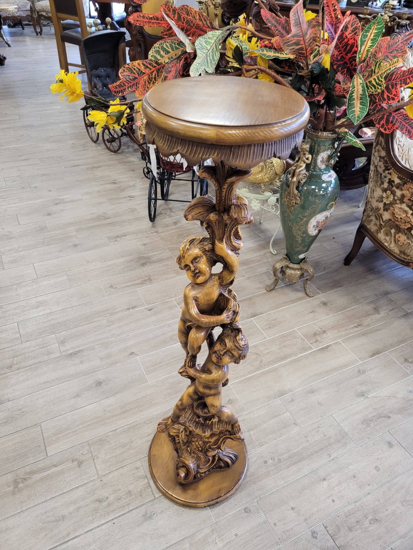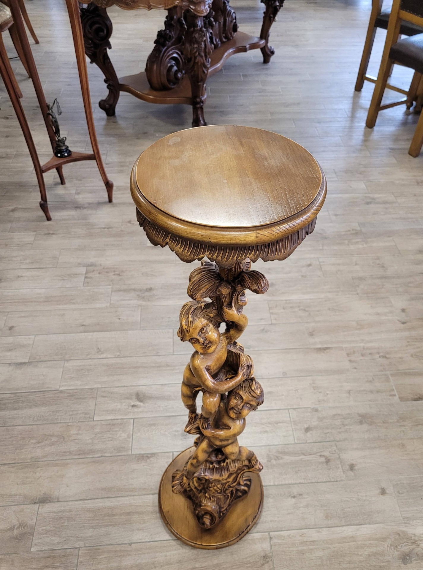 Suport-piedestal decorativ, piesă de excepție cu îngerași, cu bază din lemn,