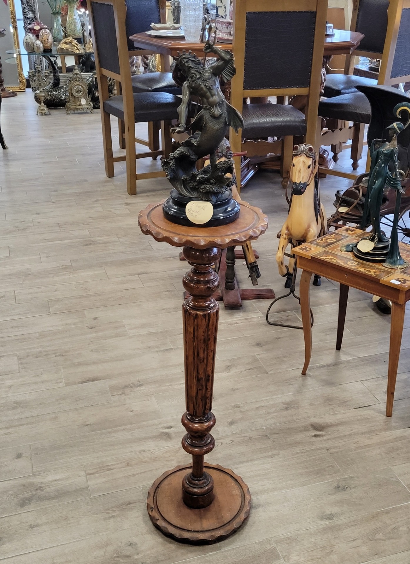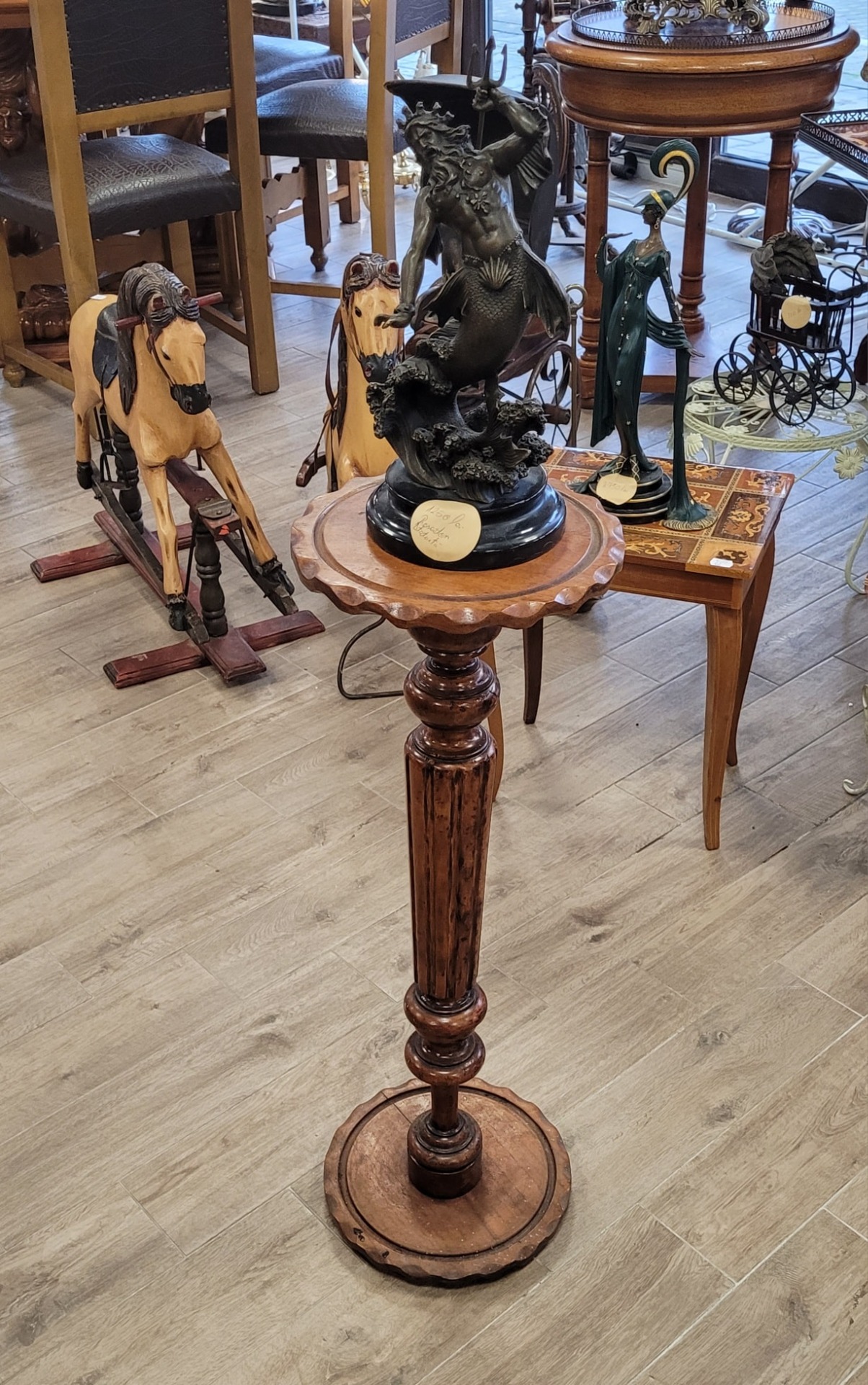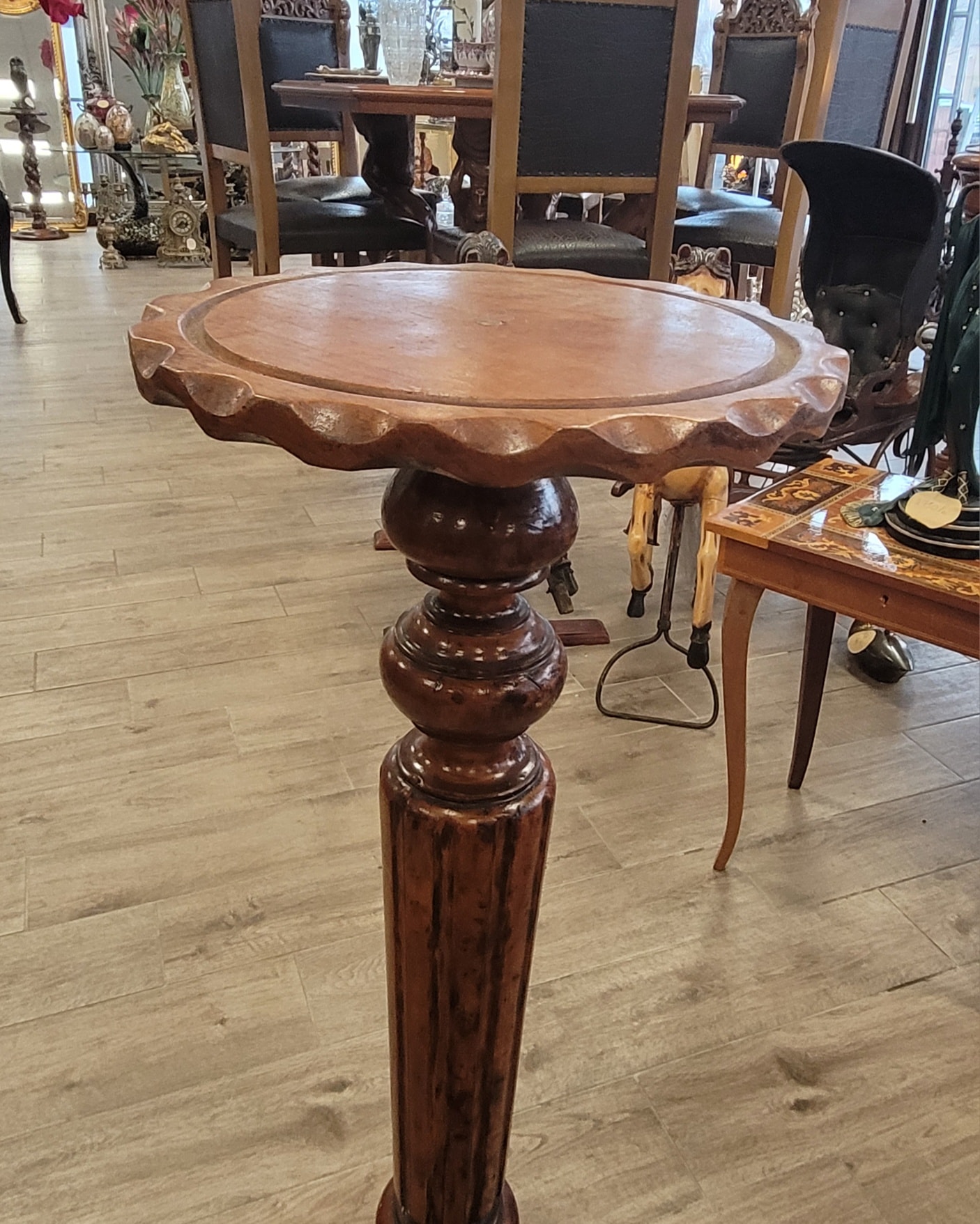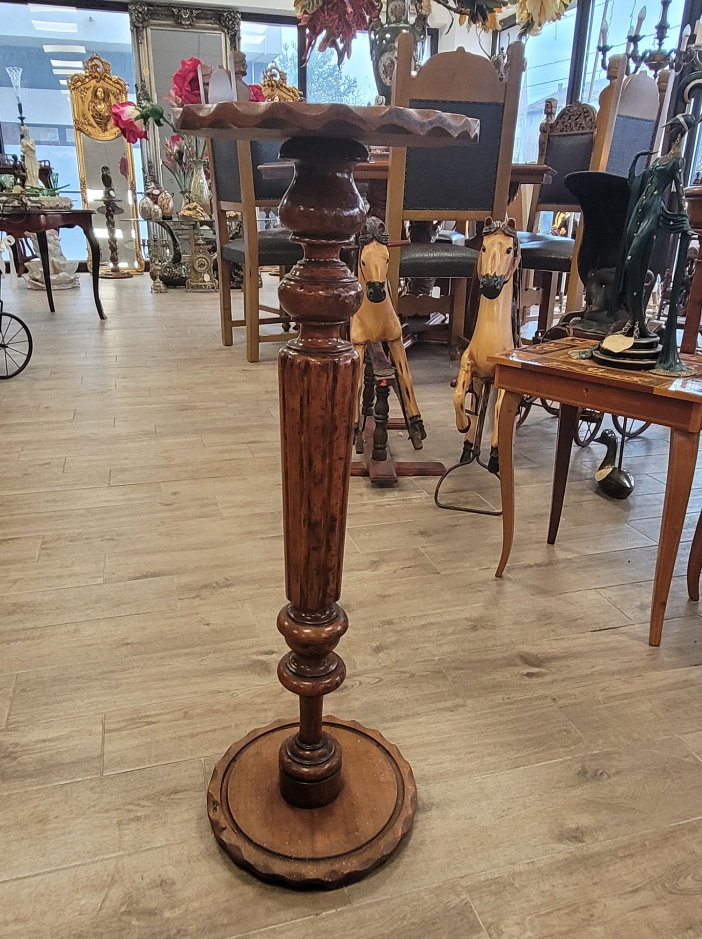 Suport vechi din lemn sculptat, în stil rustic-clasic, cu detalii lucrate manual, având un aspect nobil care adaugă caracter oricărei încăperi.