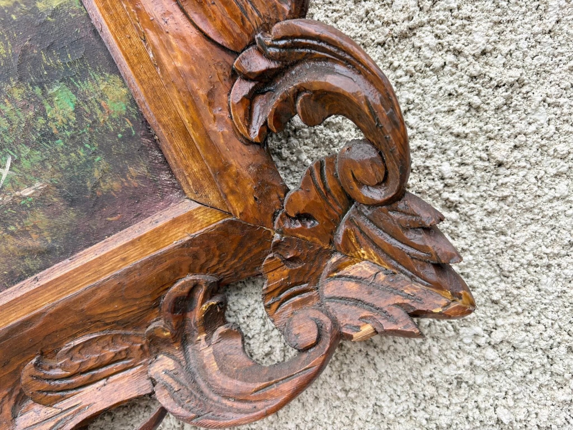 Pictura este realizată pe pânză și este încadrată într-o ramă deosebită din lemn masiv, bogat ornamentată, sculptată manual, cu detalii florale. Rama este solidă și oferă un aspect elegant și impunător.