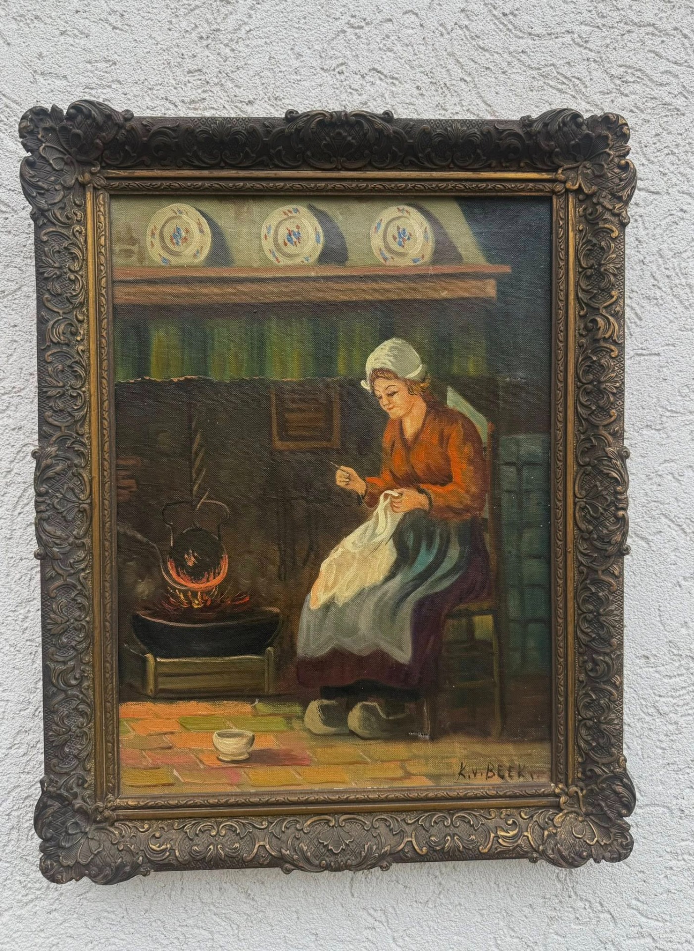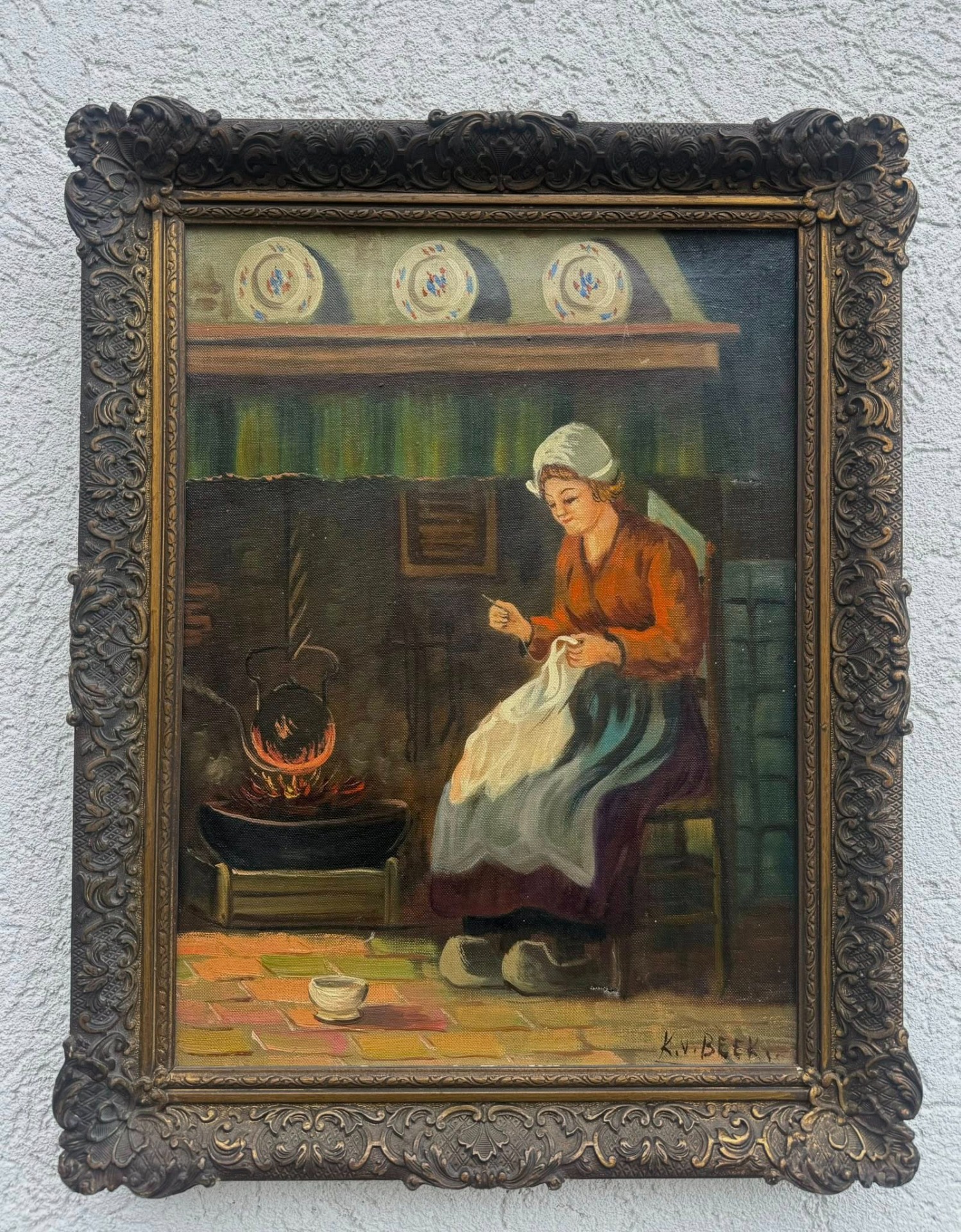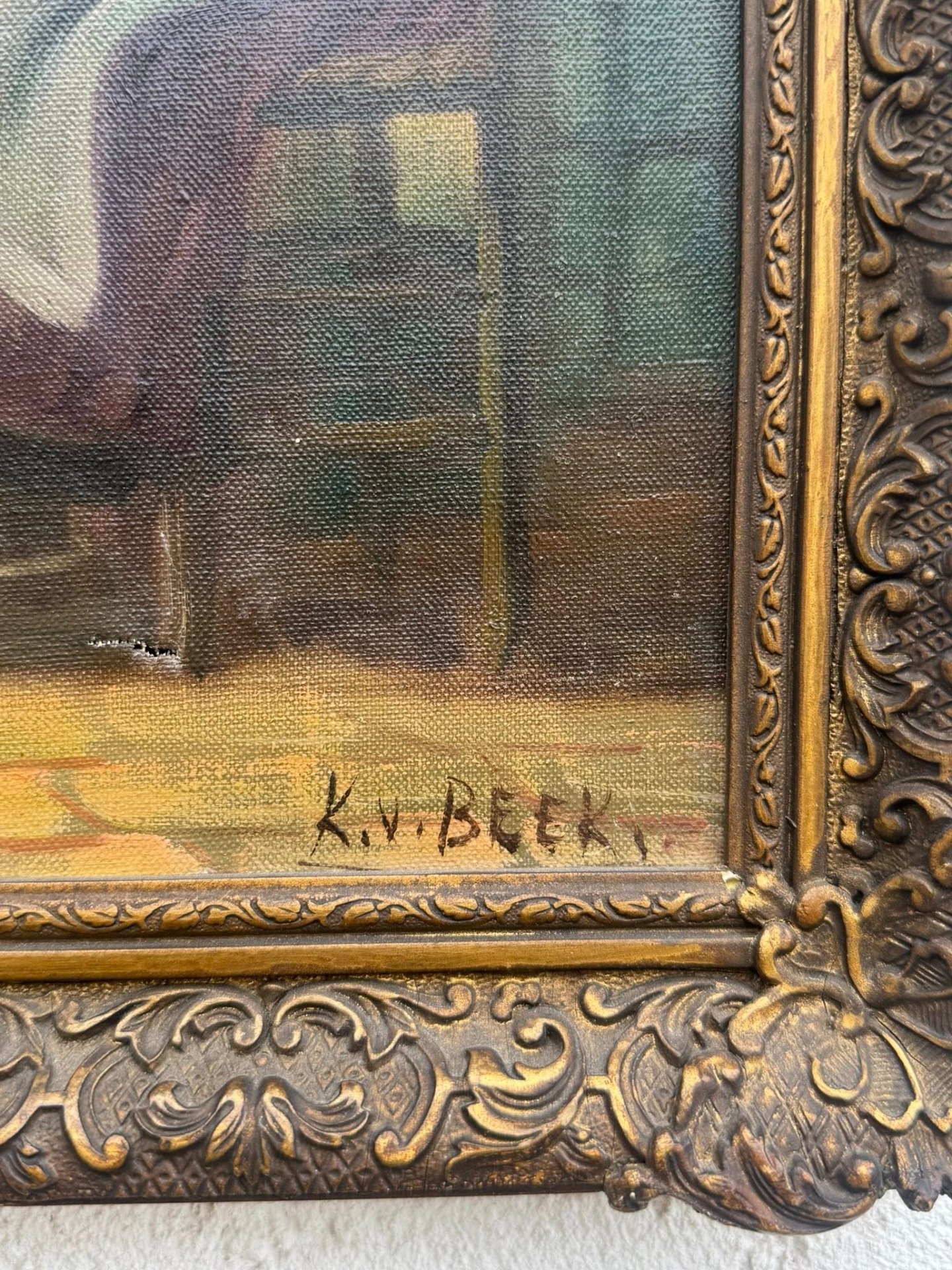 În colțul din dreapta jos al pânzei se poate distinge o semnătură: K. v. BEEK