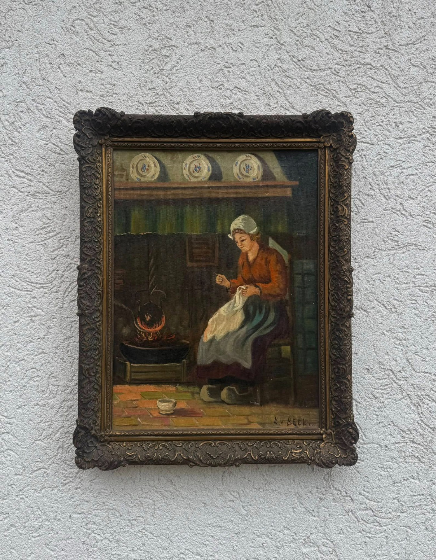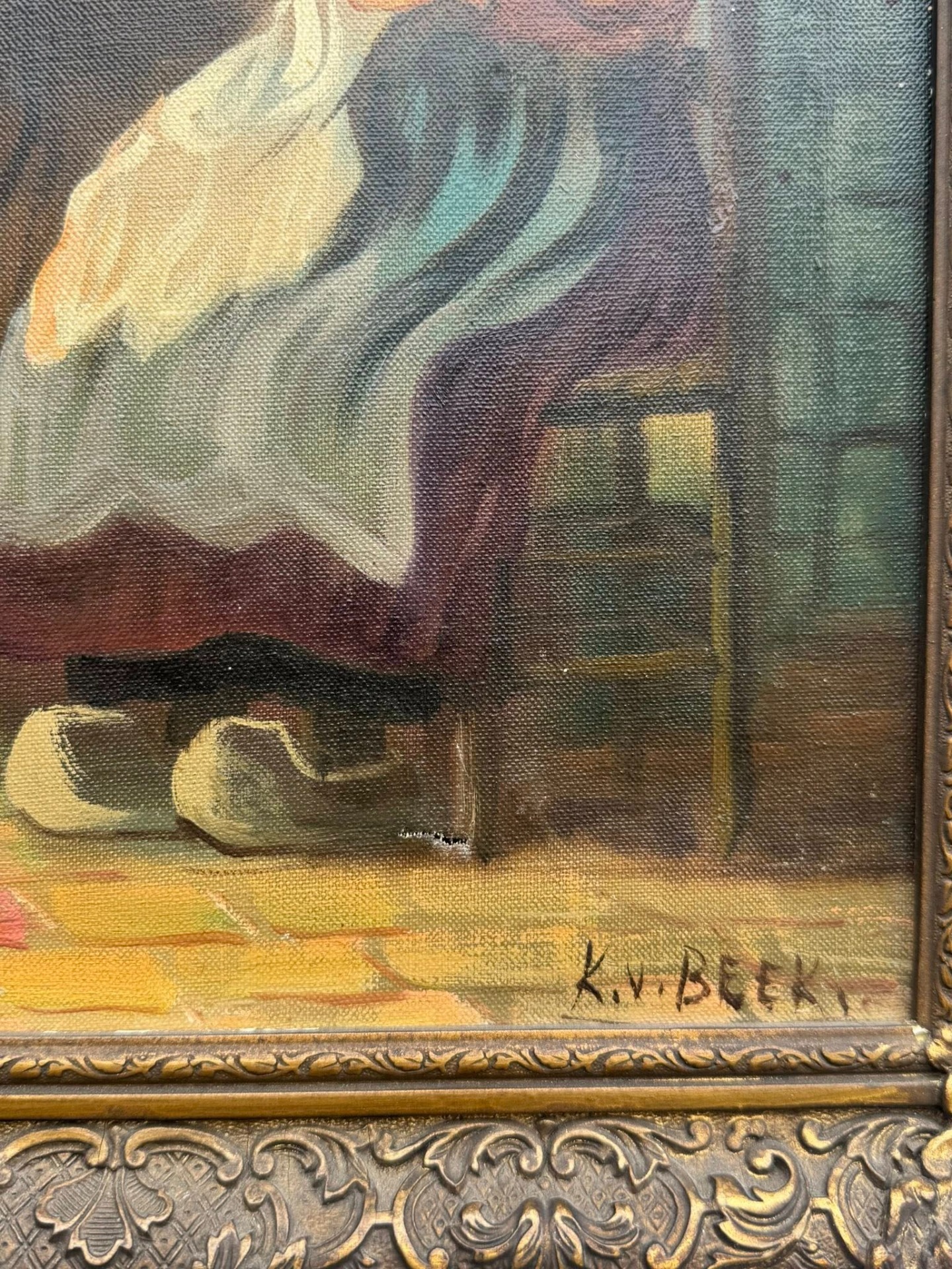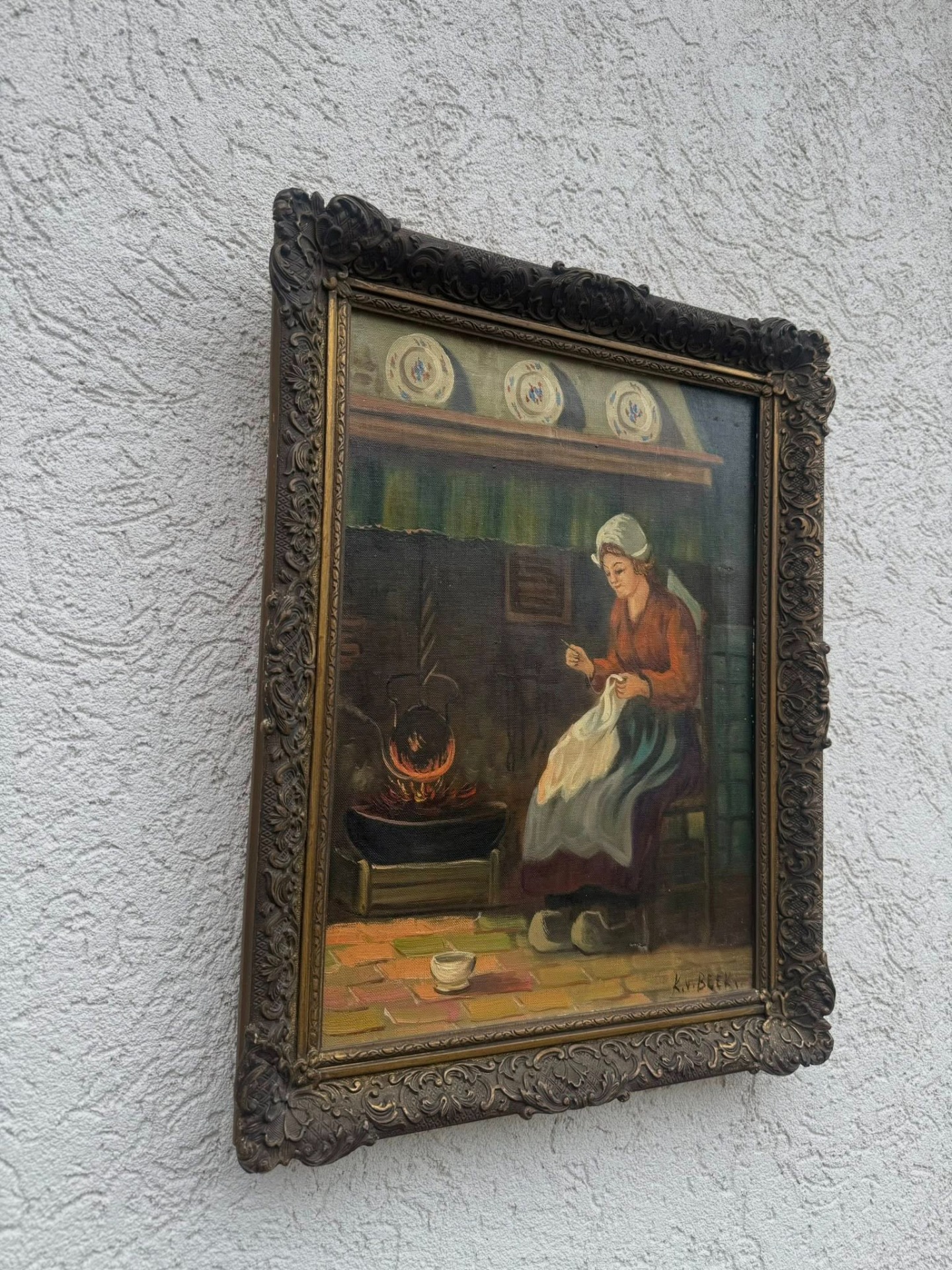 În colțul din dreapta jos al pânzei se poate distinge o semnătură: K. v. BEEK