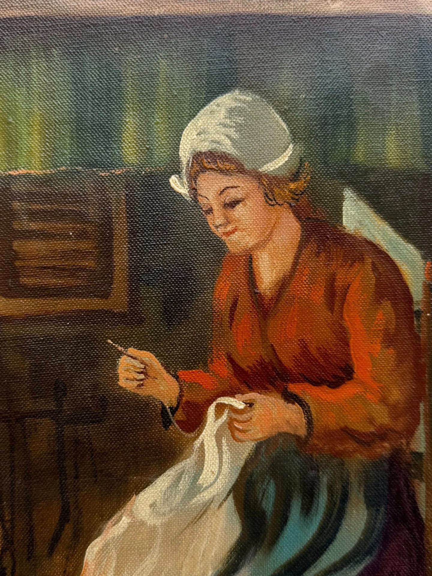 Tablou în ulei pe pânză, reprezentând o scenă dintr-un interior tradițional olandez.