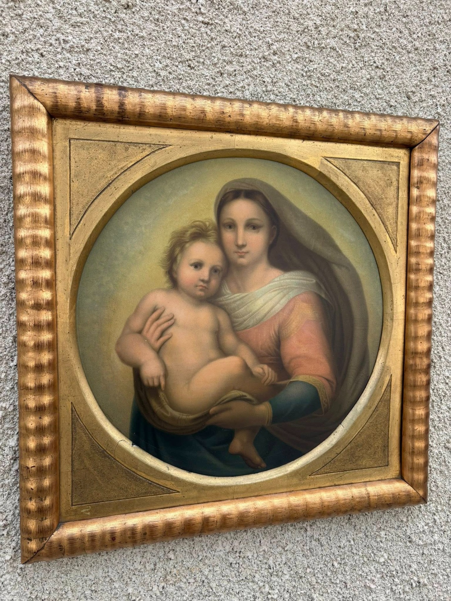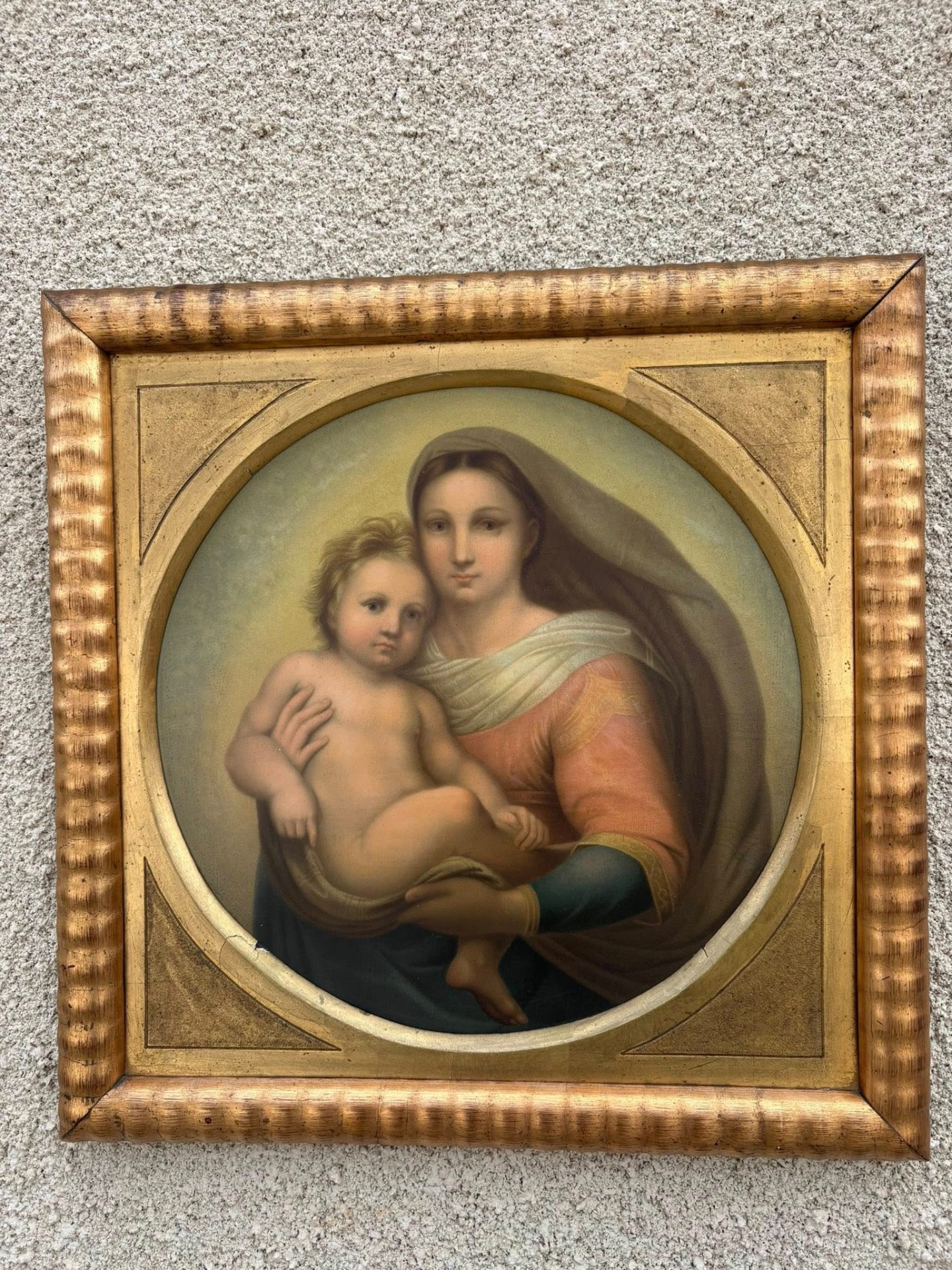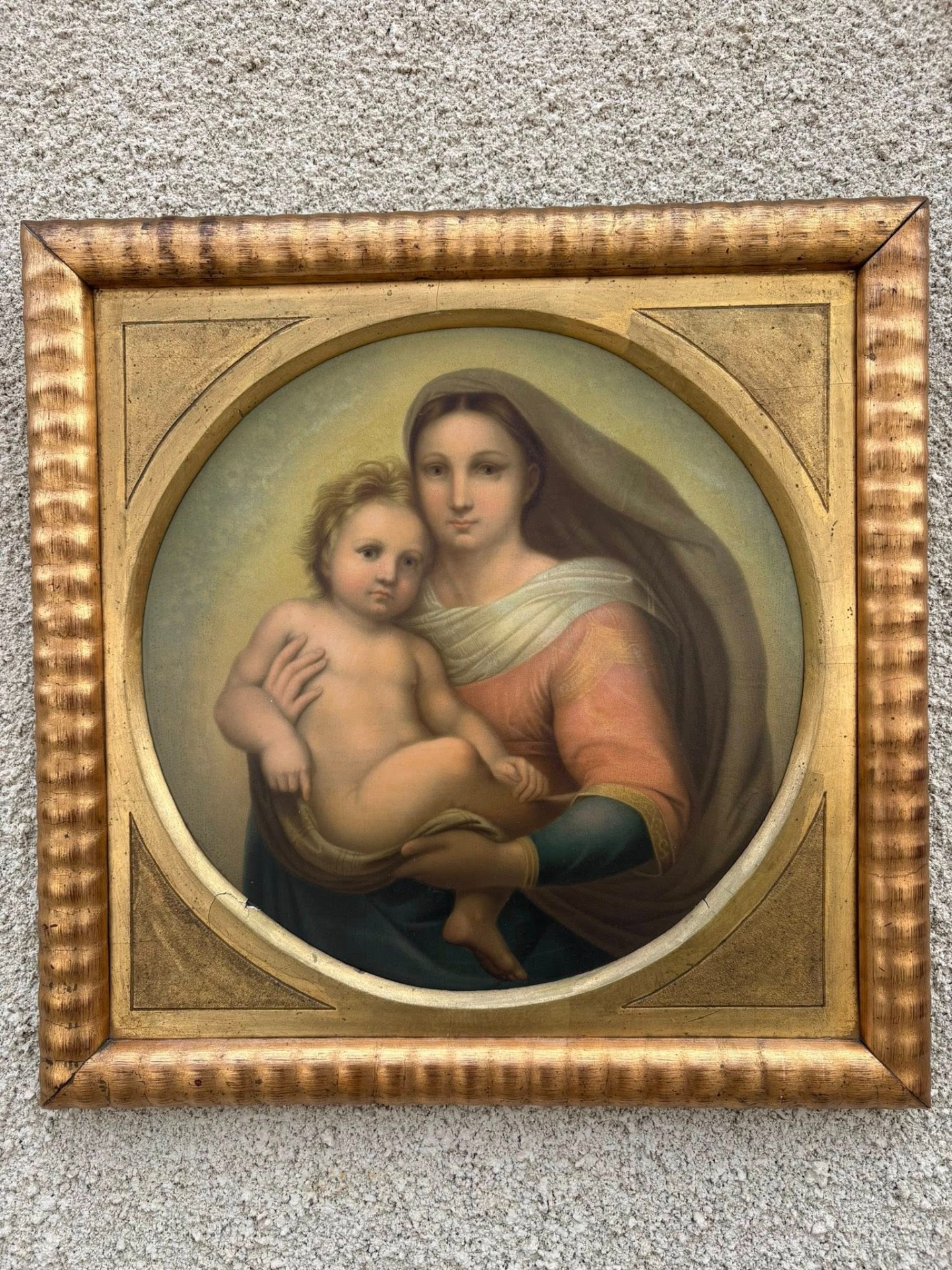 Tablou deosebit, reprezentând o secțiune din celebra operă „Madonna San Sisto” de Rafael Sanzio (Rafael Santi).