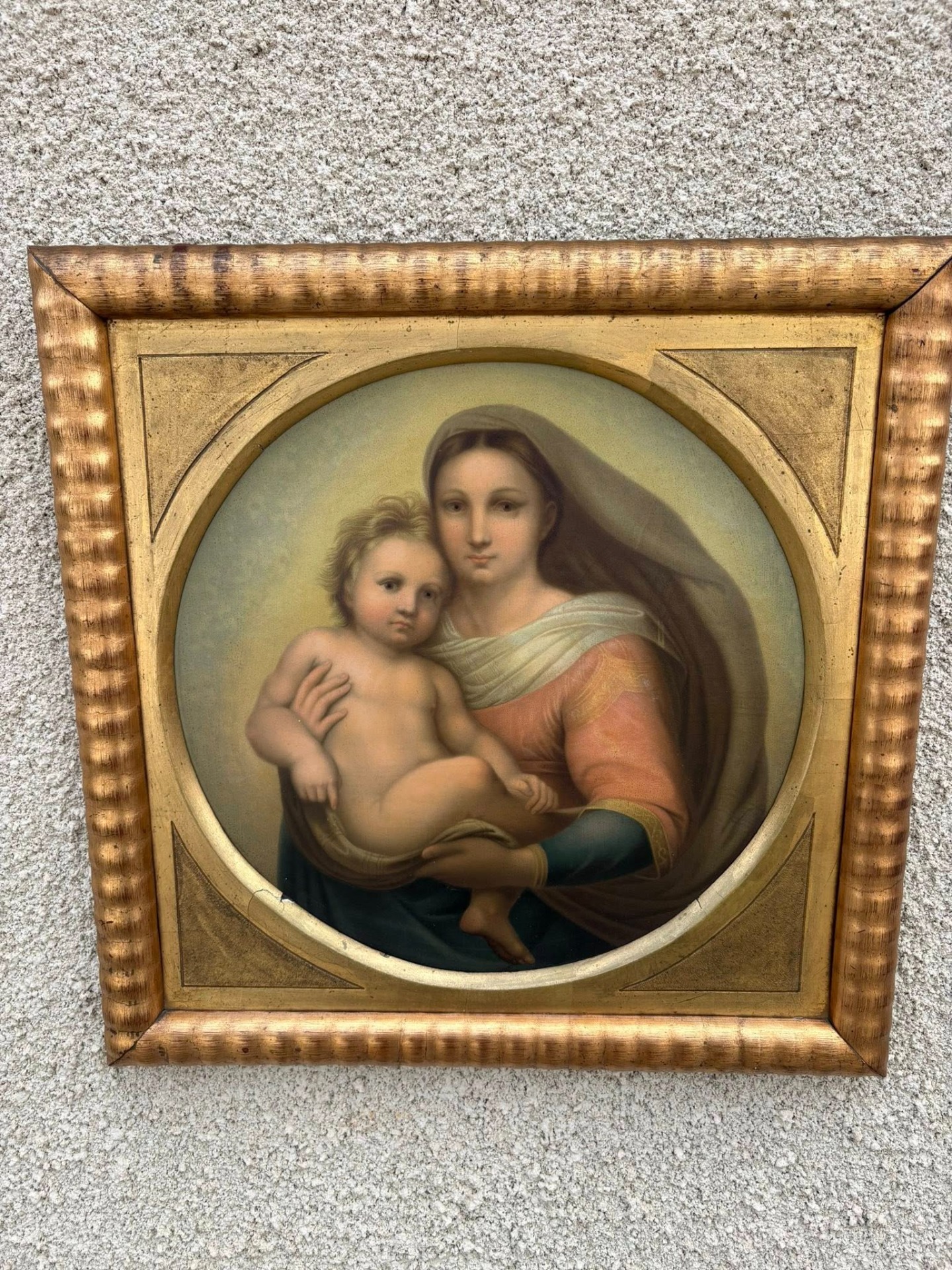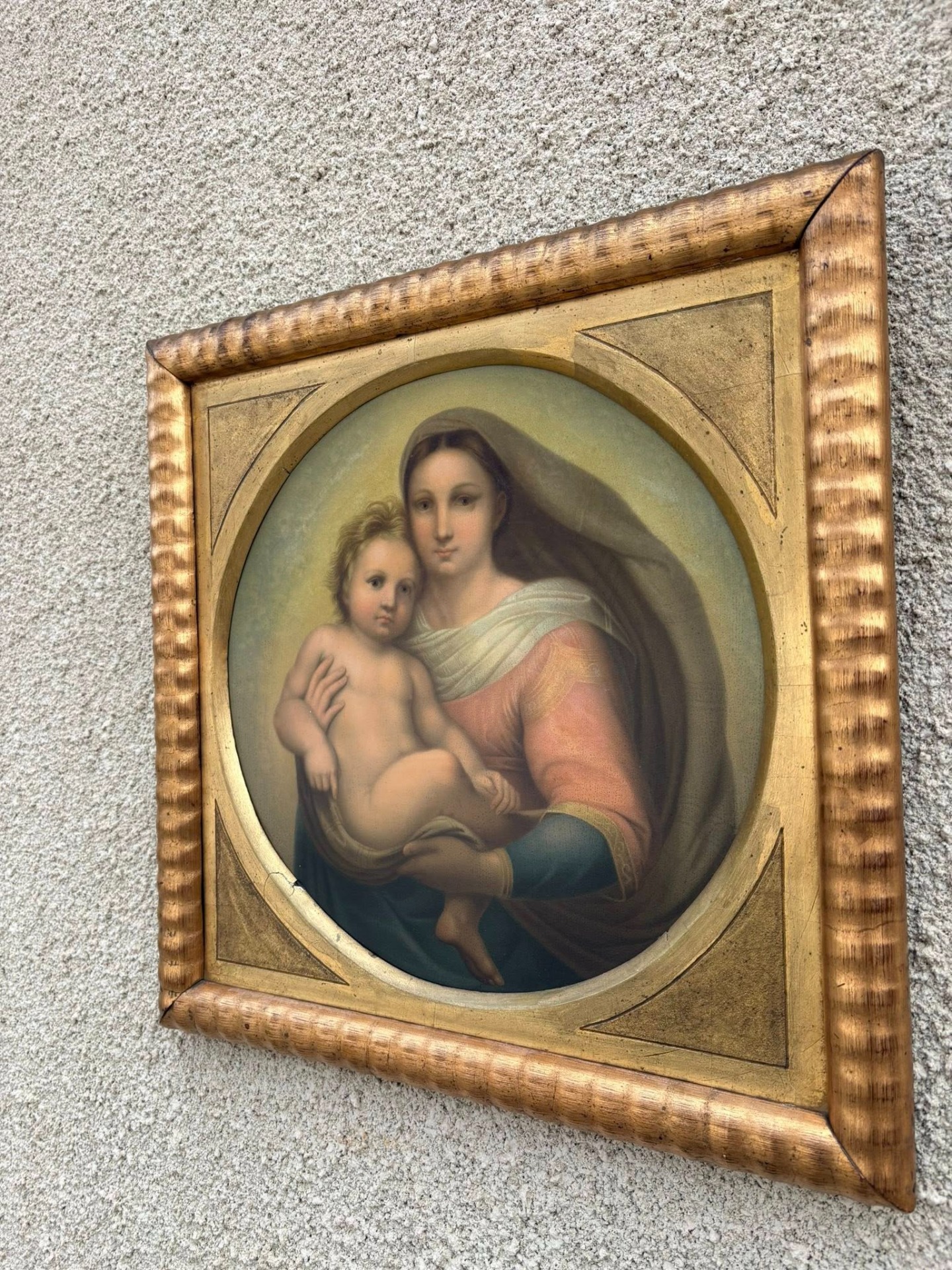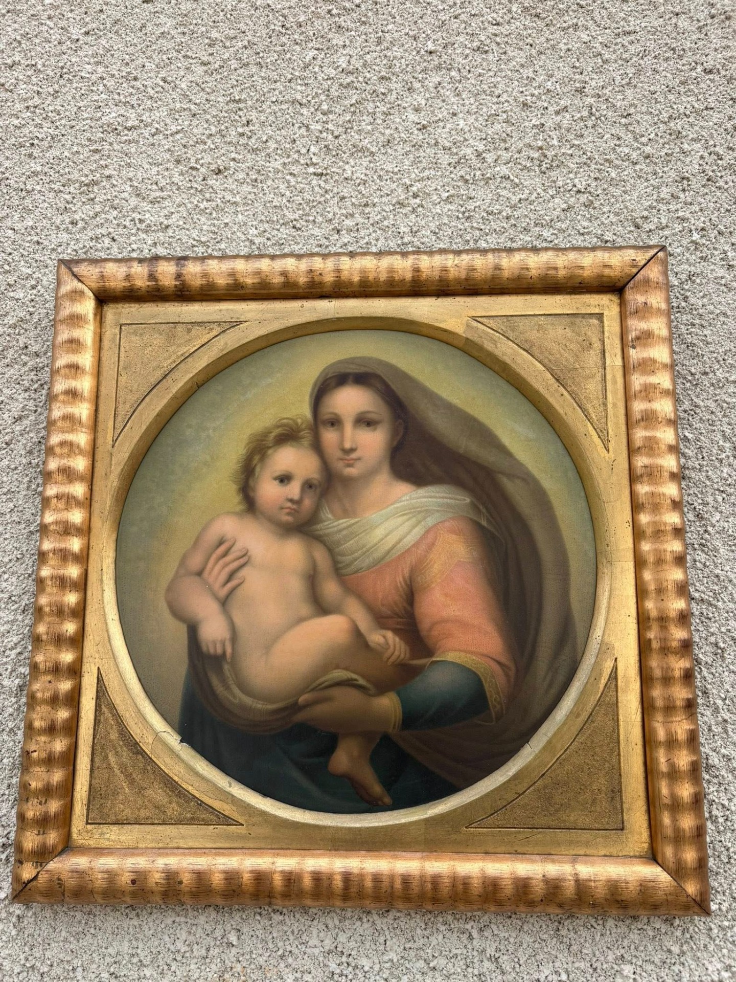 Tablou deosebit, reprezentând o secțiune din celebra operă „Madonna San Sisto” de Rafael Sanzio (Rafael Santi).