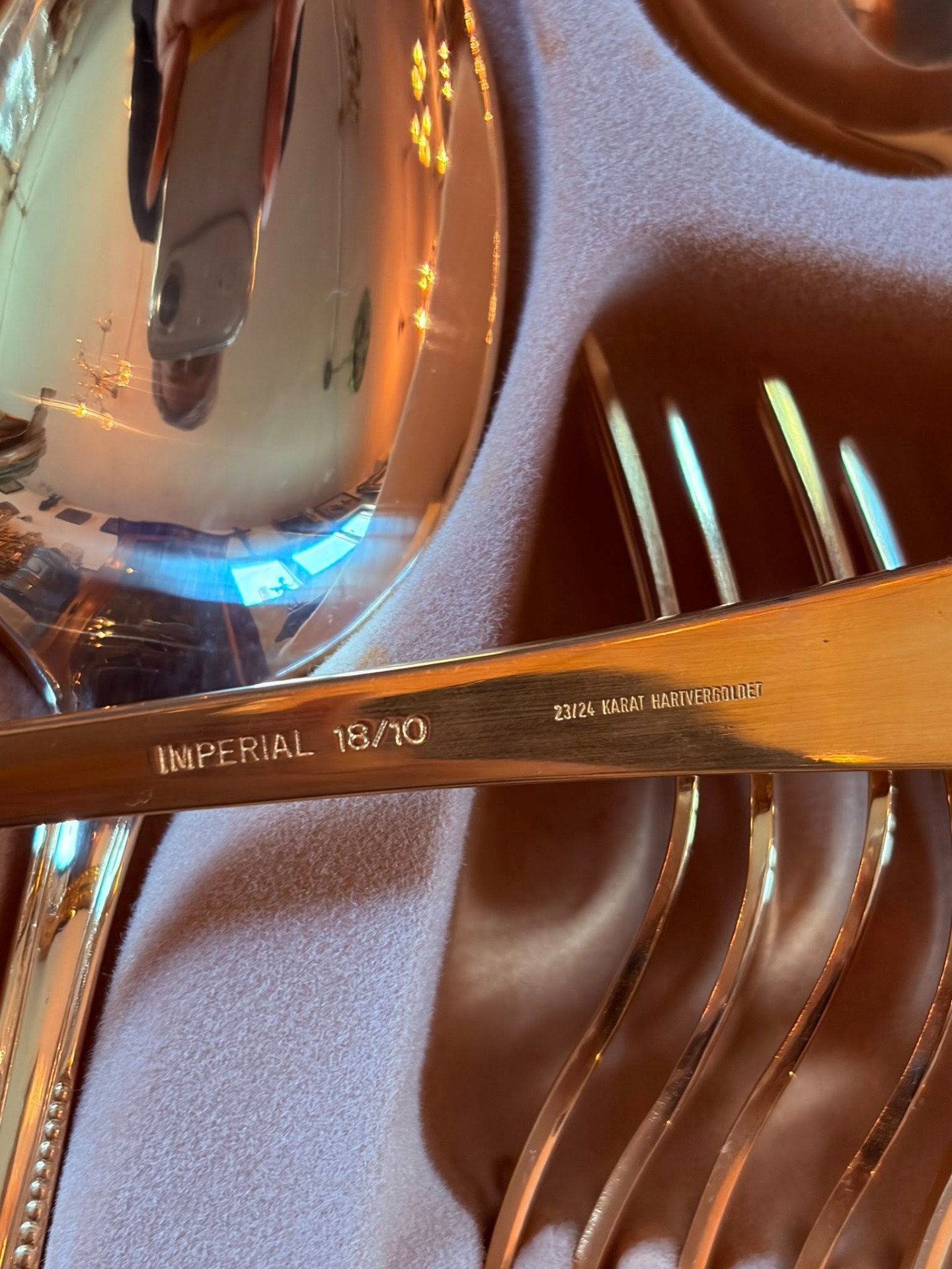 Seturile de tacâmuri marca Imperial, placate cu aur de 23K sau 24K, sunt considerate obiecte de lux și sunt apreciate atât pentru aspectul lor elegant, cât și pentru calitatea materialelor. Aceste tacâmuri sunt realizate, din oțel inoxidabil de calitate superioară, acoperit cu un strat subțire de aur pur, ceea ce le conferă un aspect sofisticat și o rezistență mai mare la coroziune.