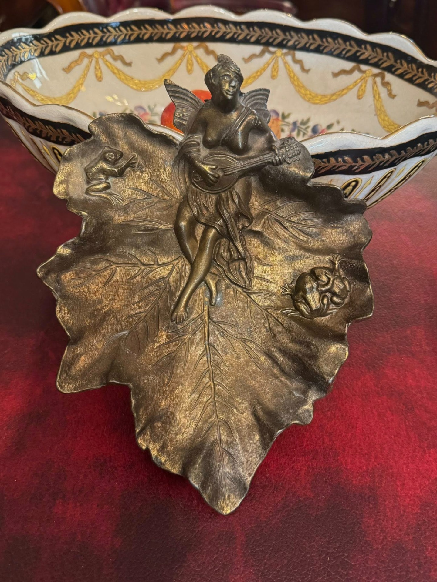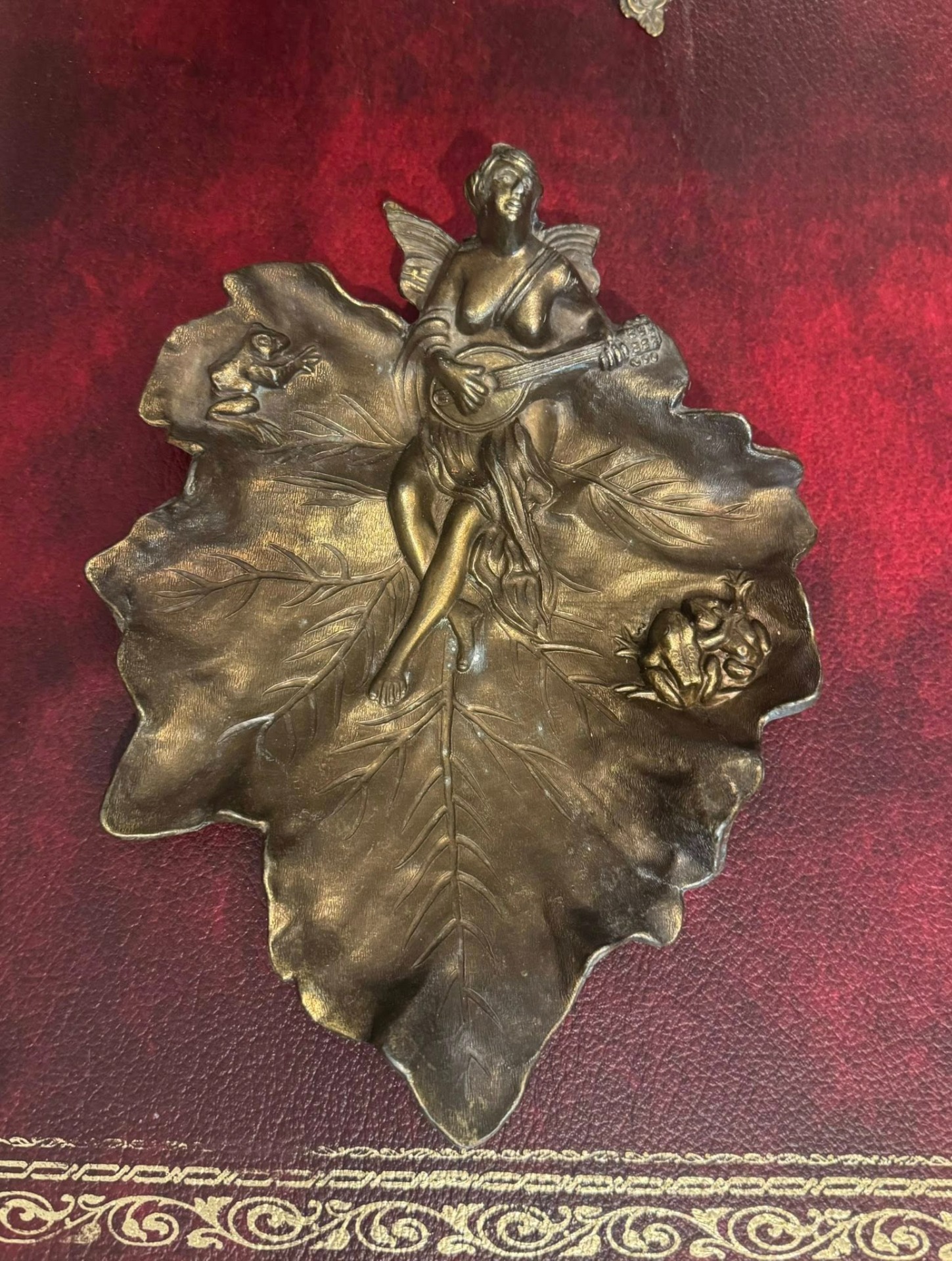 Tavă din bronz , realizată în stilul Art Nouveau (Franța, cca. 1890–1910).