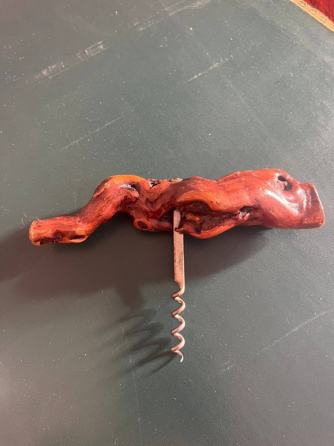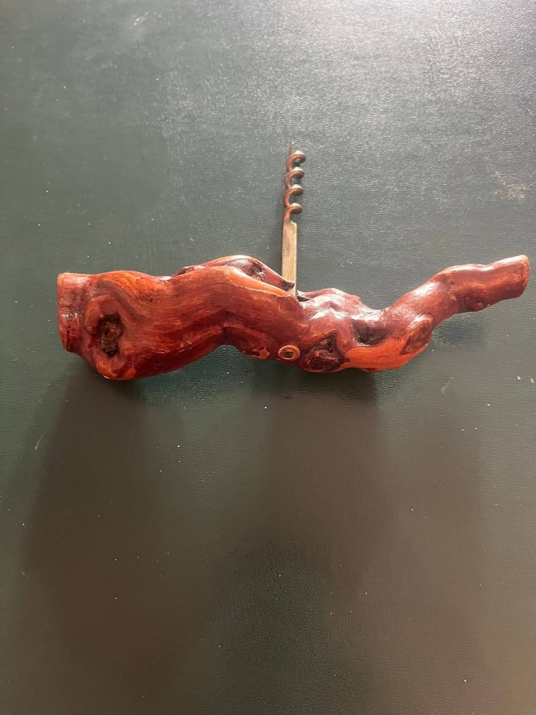 Tirbușon vintage cu mâner din lemn natural,cu forme organice unice,aspect rustic și autentic