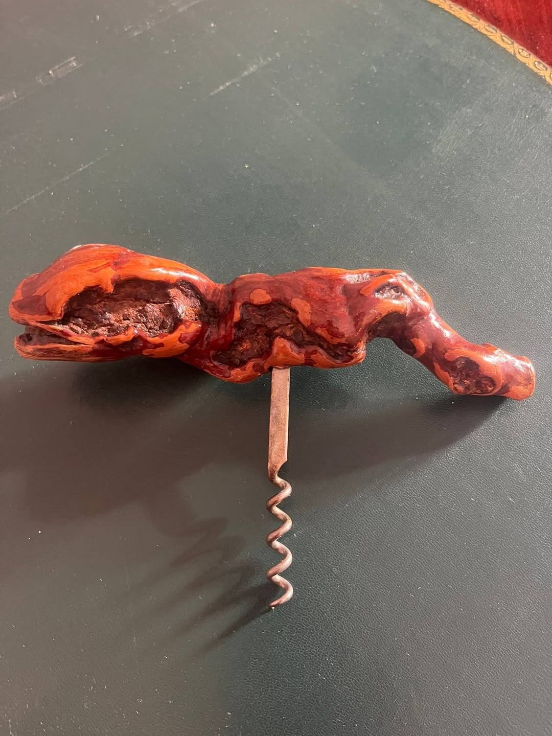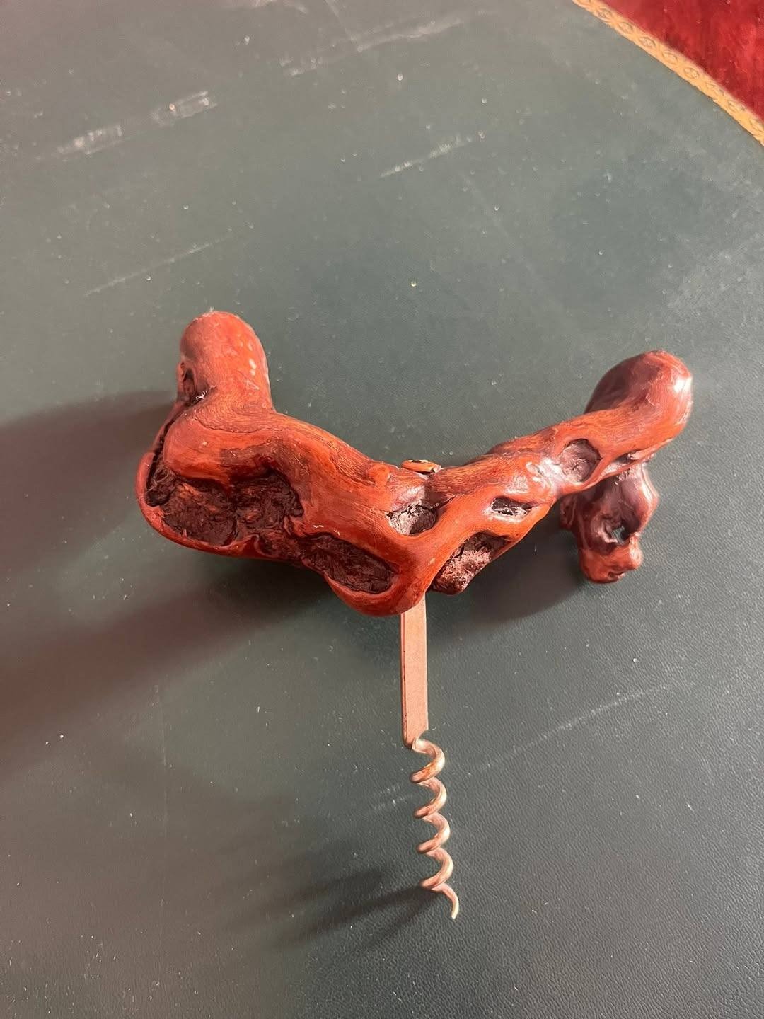 Tirbușon vintage cu mâner din lemn natural,cu forme organice unice,aspect rustic,