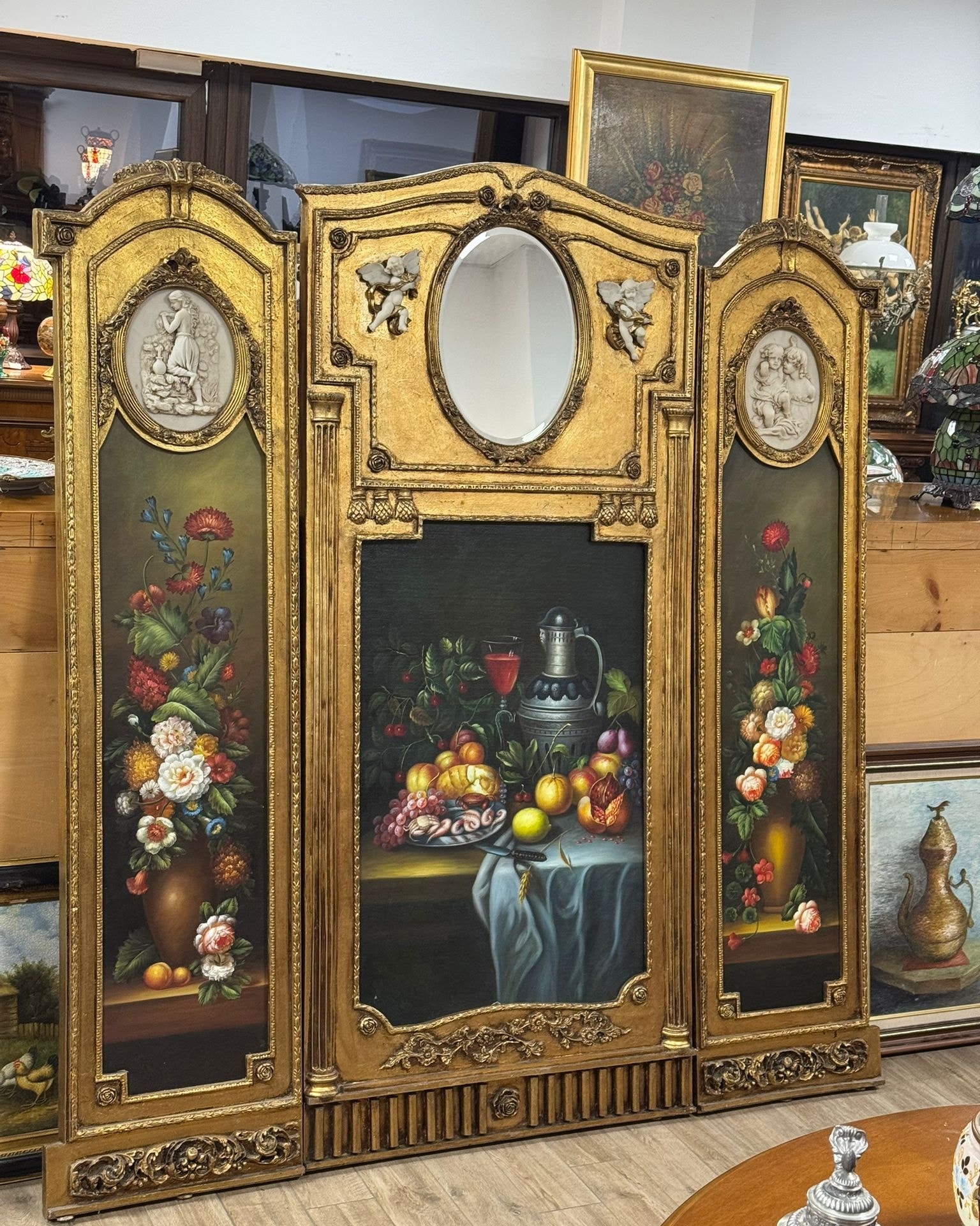 Tripic,paravan, sau un separator de cameră, care combină elemente de pictură și înrămare într-un stil adesea asociat cu estetica Barocă sau a revival-ului