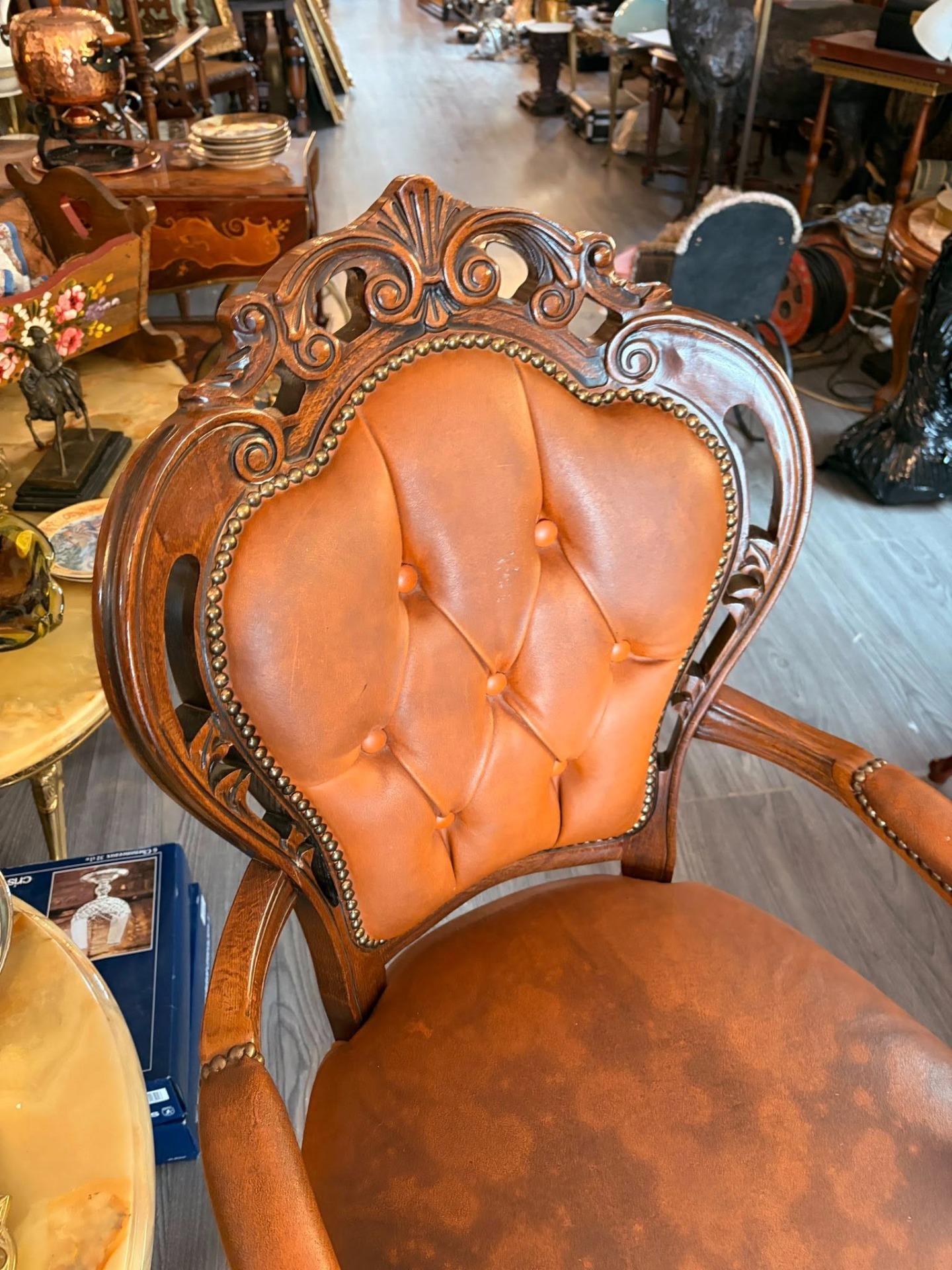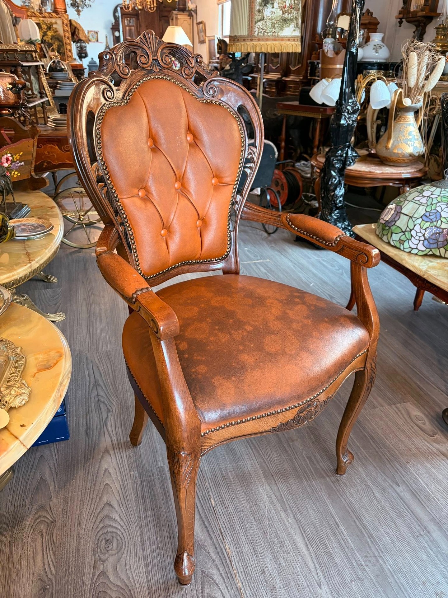 Un scaun de tip jilț (fotoliu) realizat în stil Ludovic al XV-lea / Rococo, ideal pentru un birou clasic sau un decor vintage.