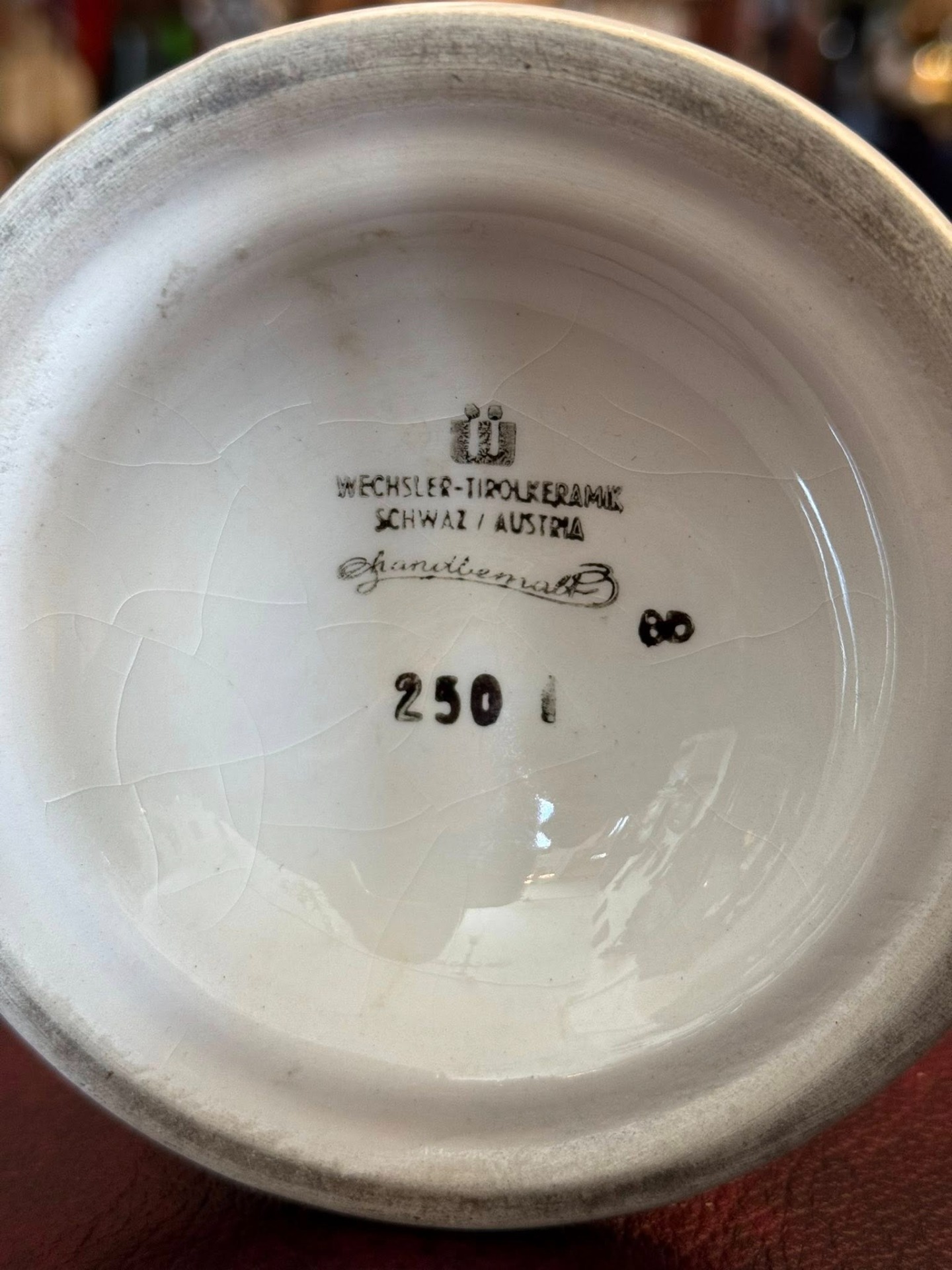 Produsă de Wechsler-Tirolerkeramik. Fabrica a fost situată în Schwaz, Austria (regiunea Tirol). -cca 1960