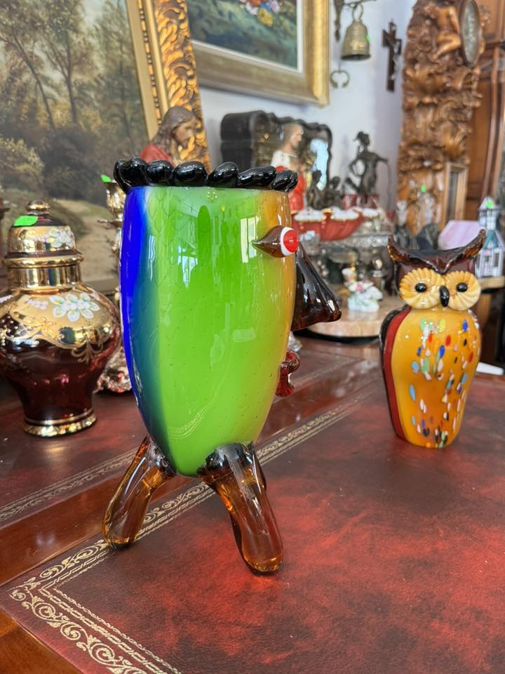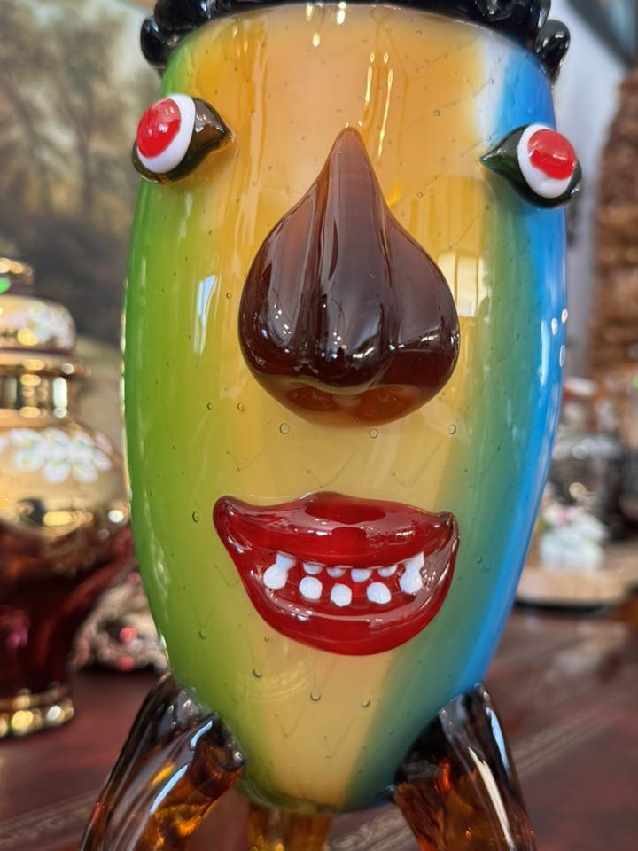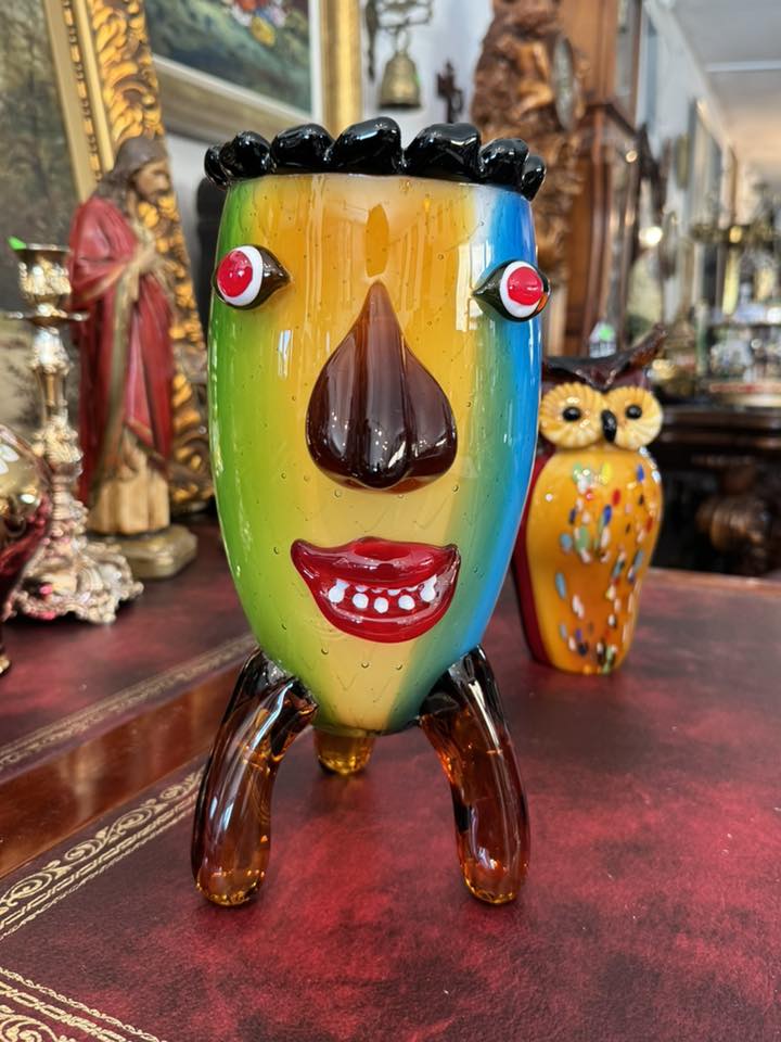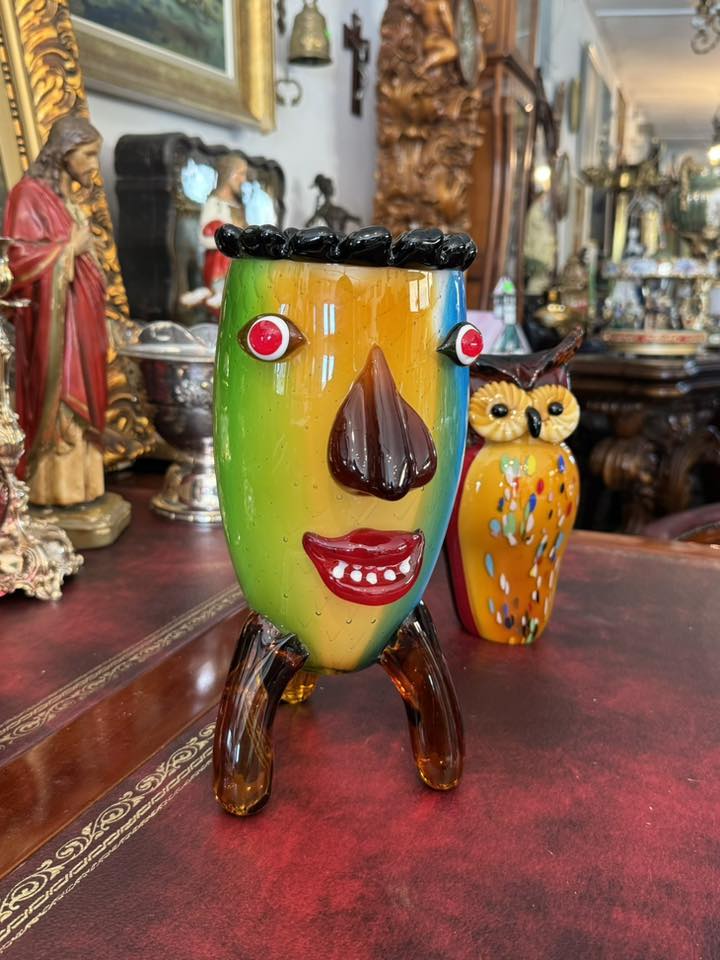 Vază antropomorfă extrem de expresivă, realizată în stilul jucăuș și suprarealist al sticlei în stil Murano.