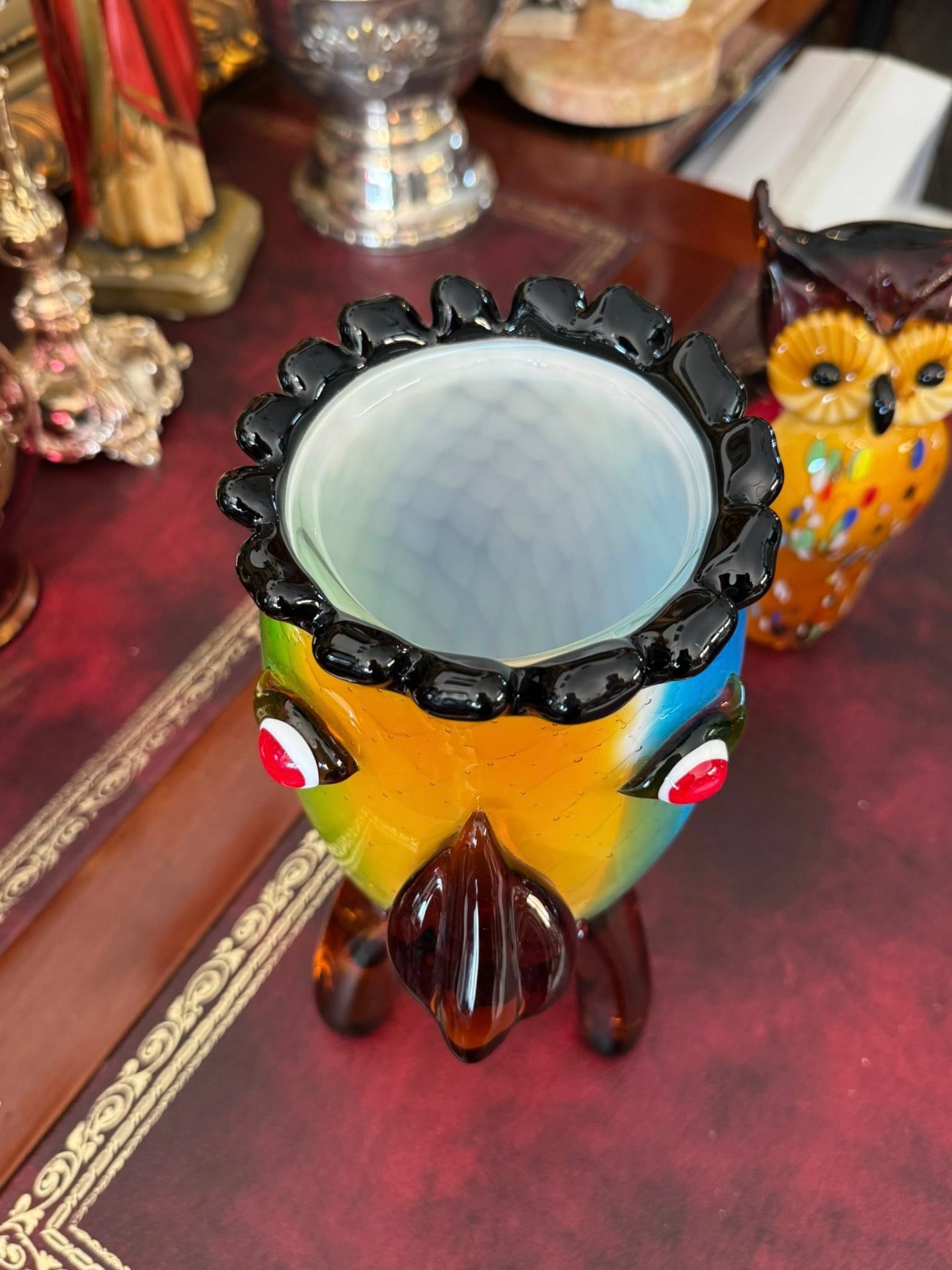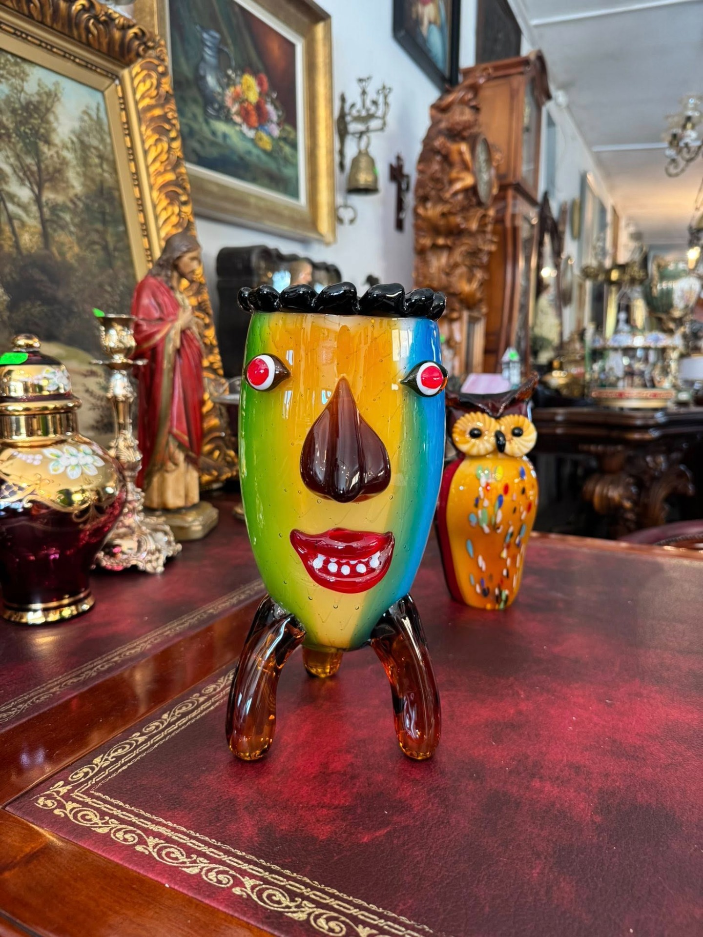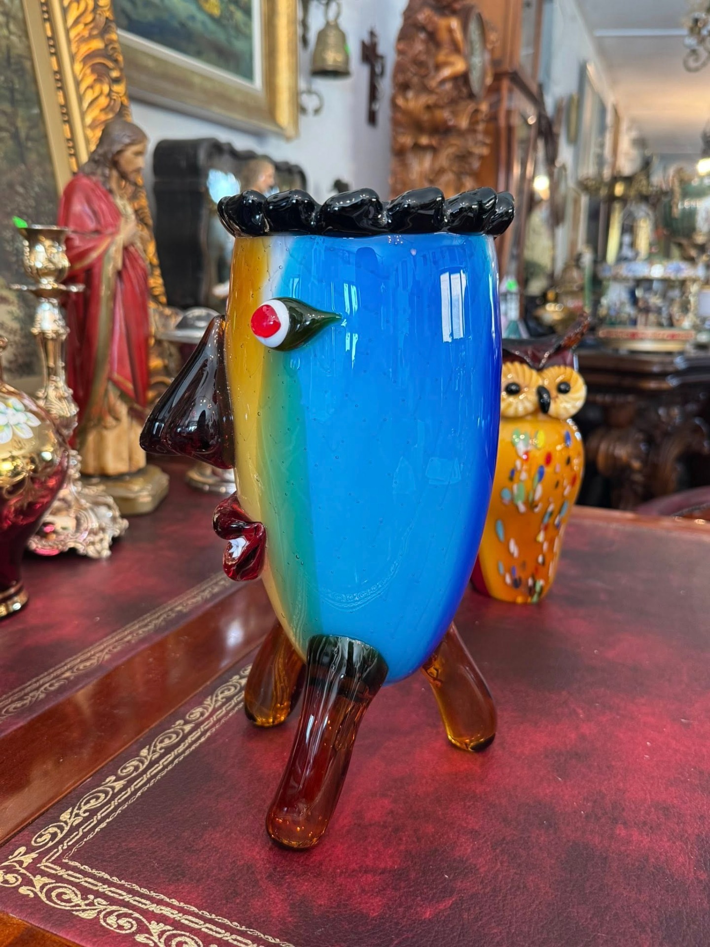 Vază antropomorfă extrem de expresivă, realizată în stilul jucăuș și suprarealist al sticlei în stil Murano.