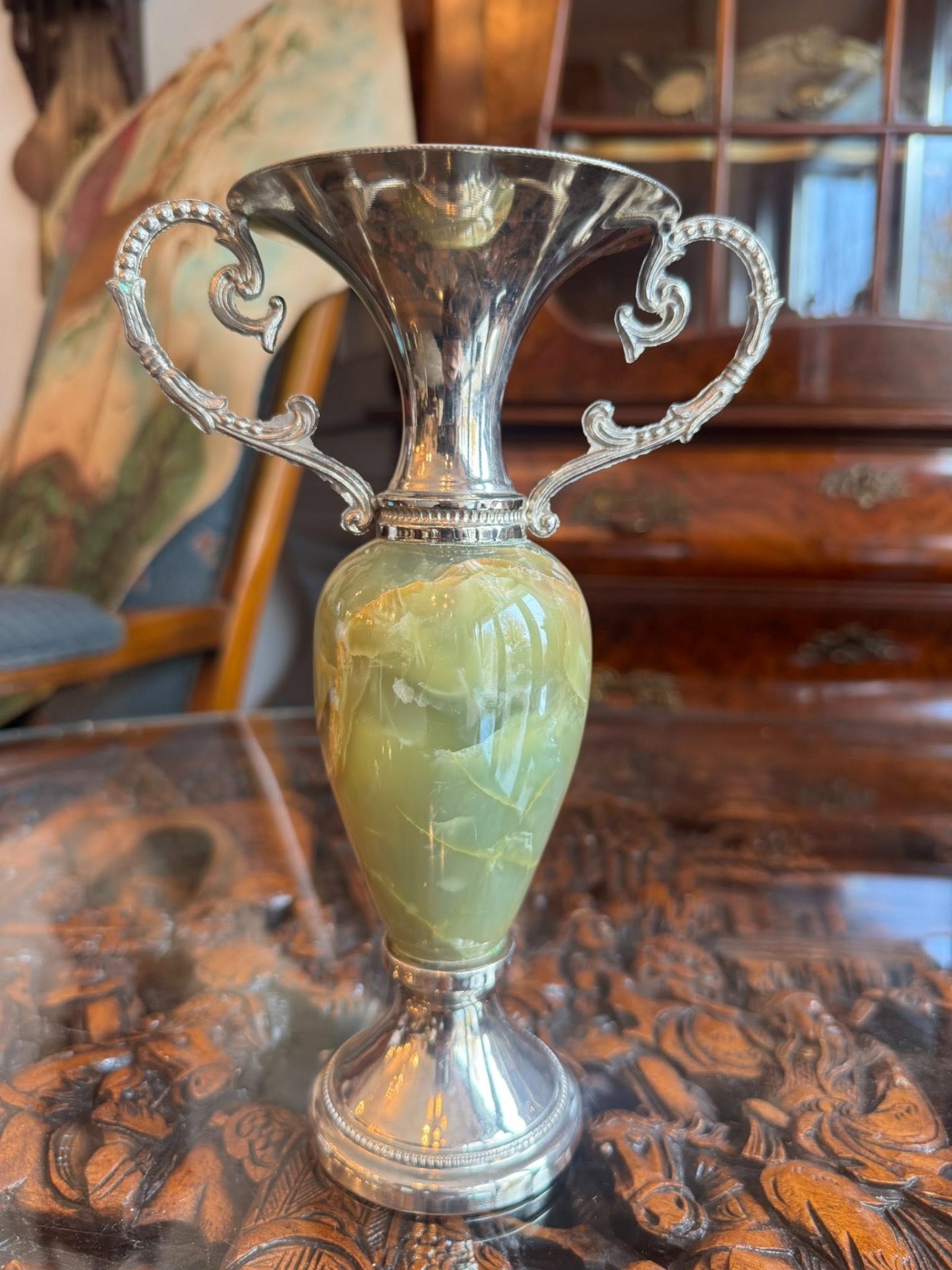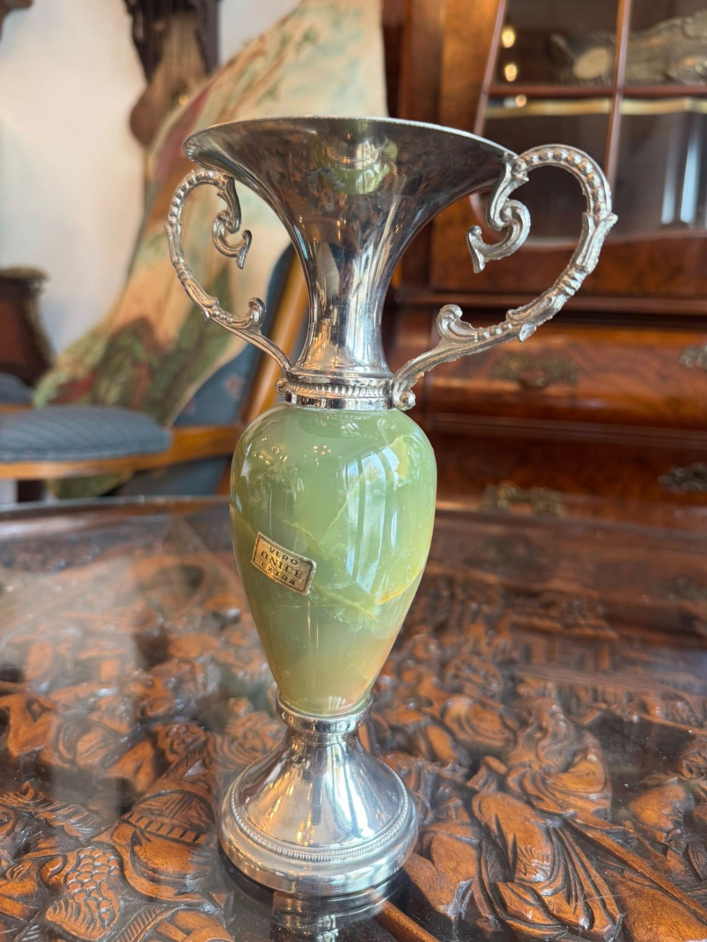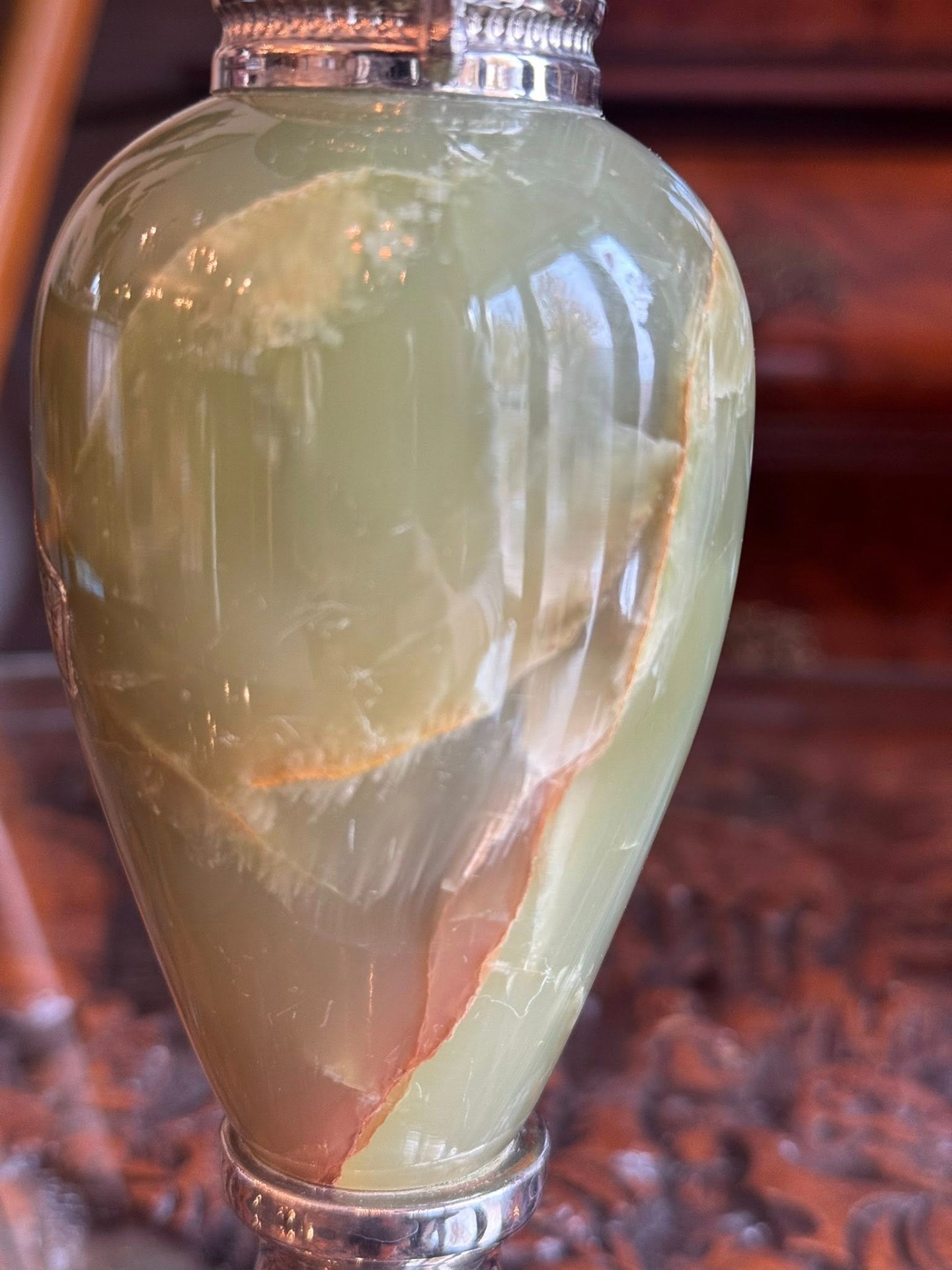 Vază/carafă din onix verde natural cu montură în metal