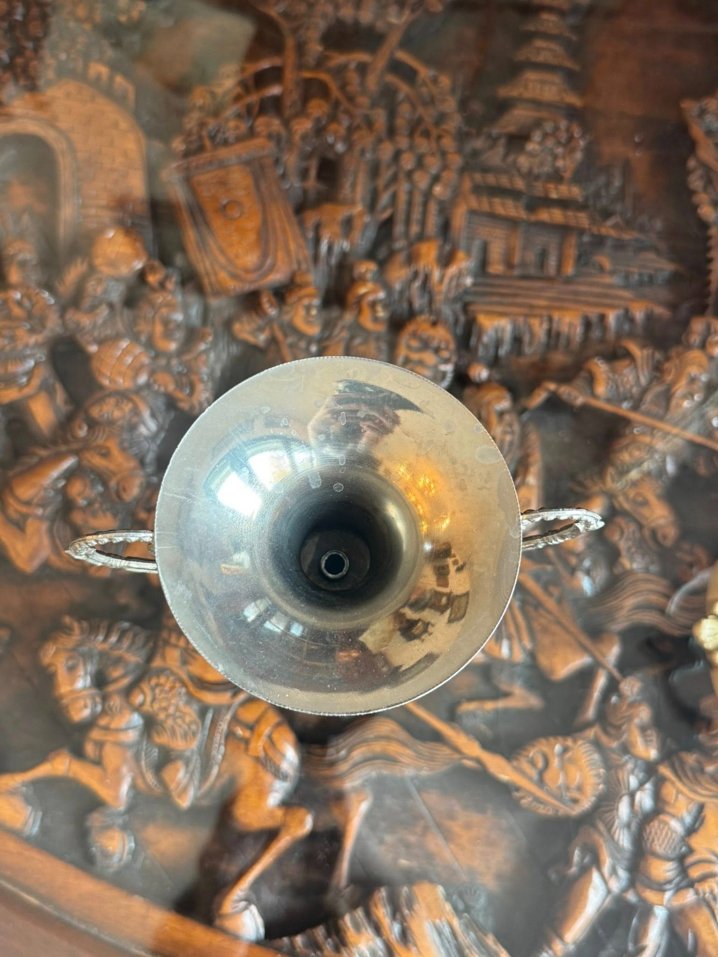 Dimensiuni: 22 cm înălțime, 10 cm diametru, 7 cm diametru bază