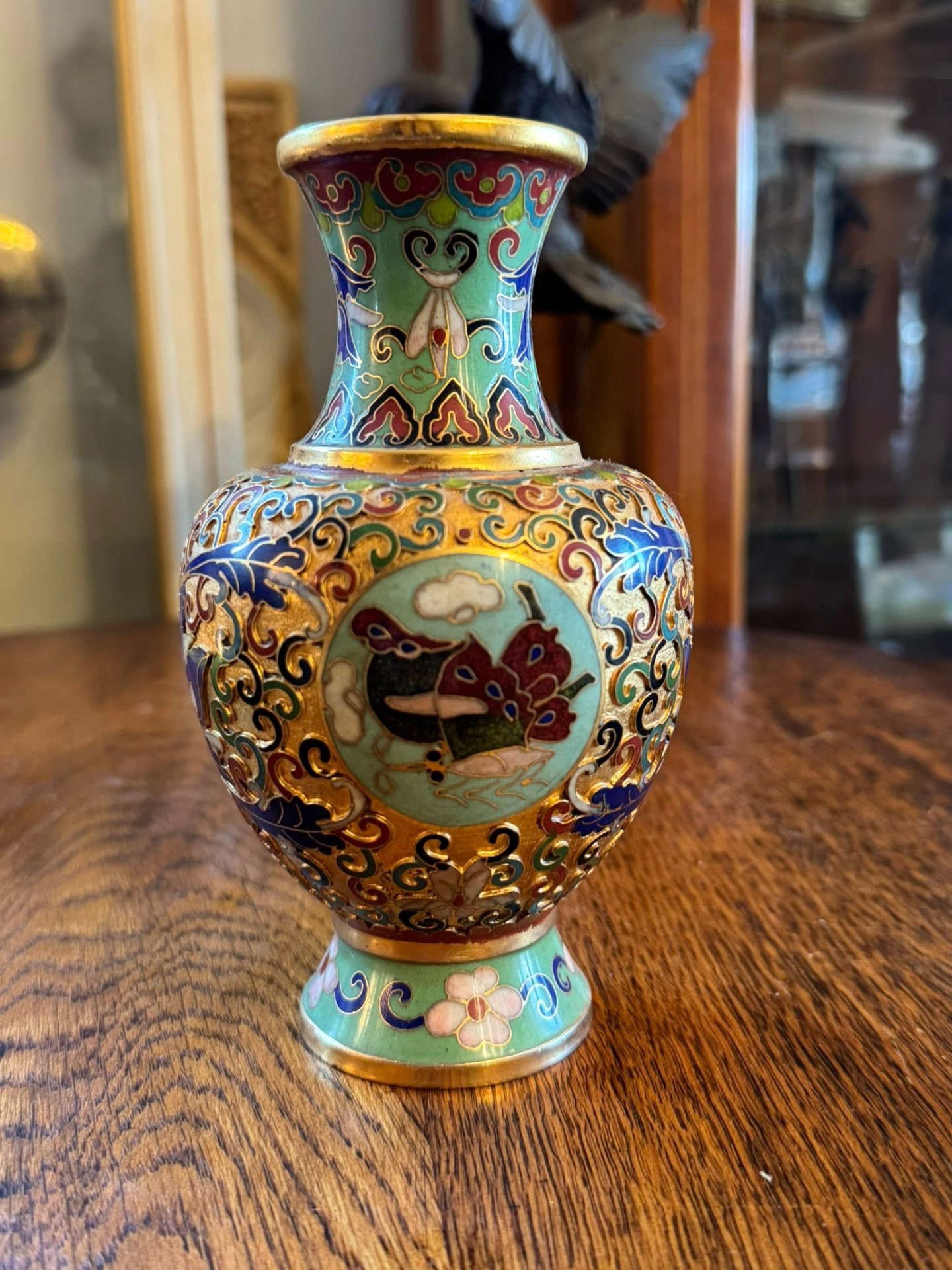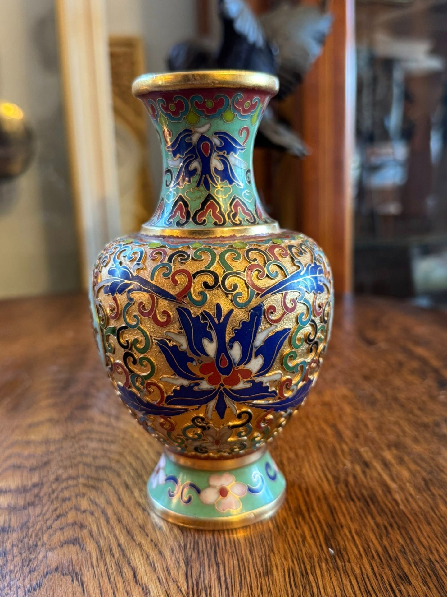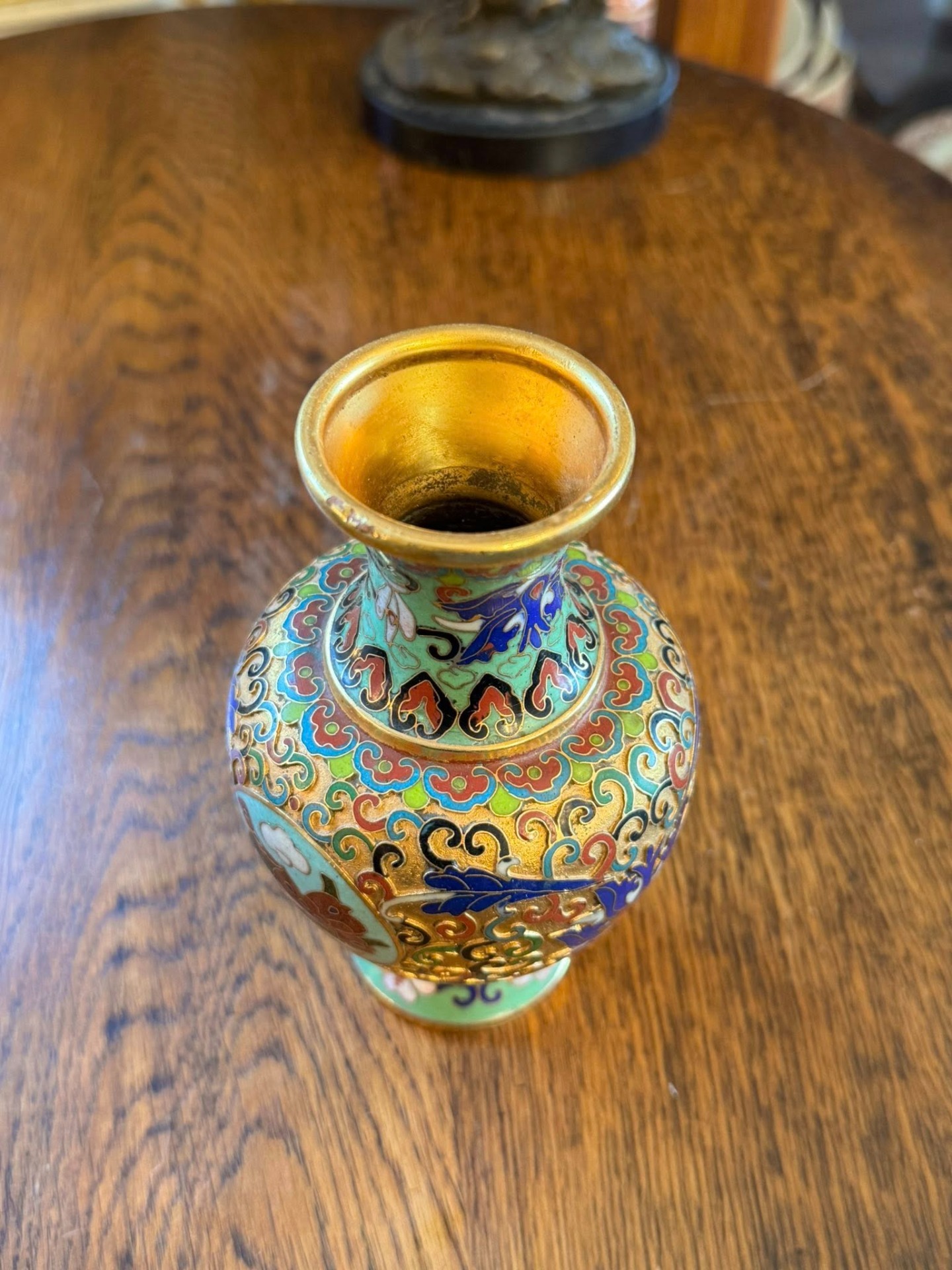 Vază Cloisonné, tehnică tradițională asiatică.