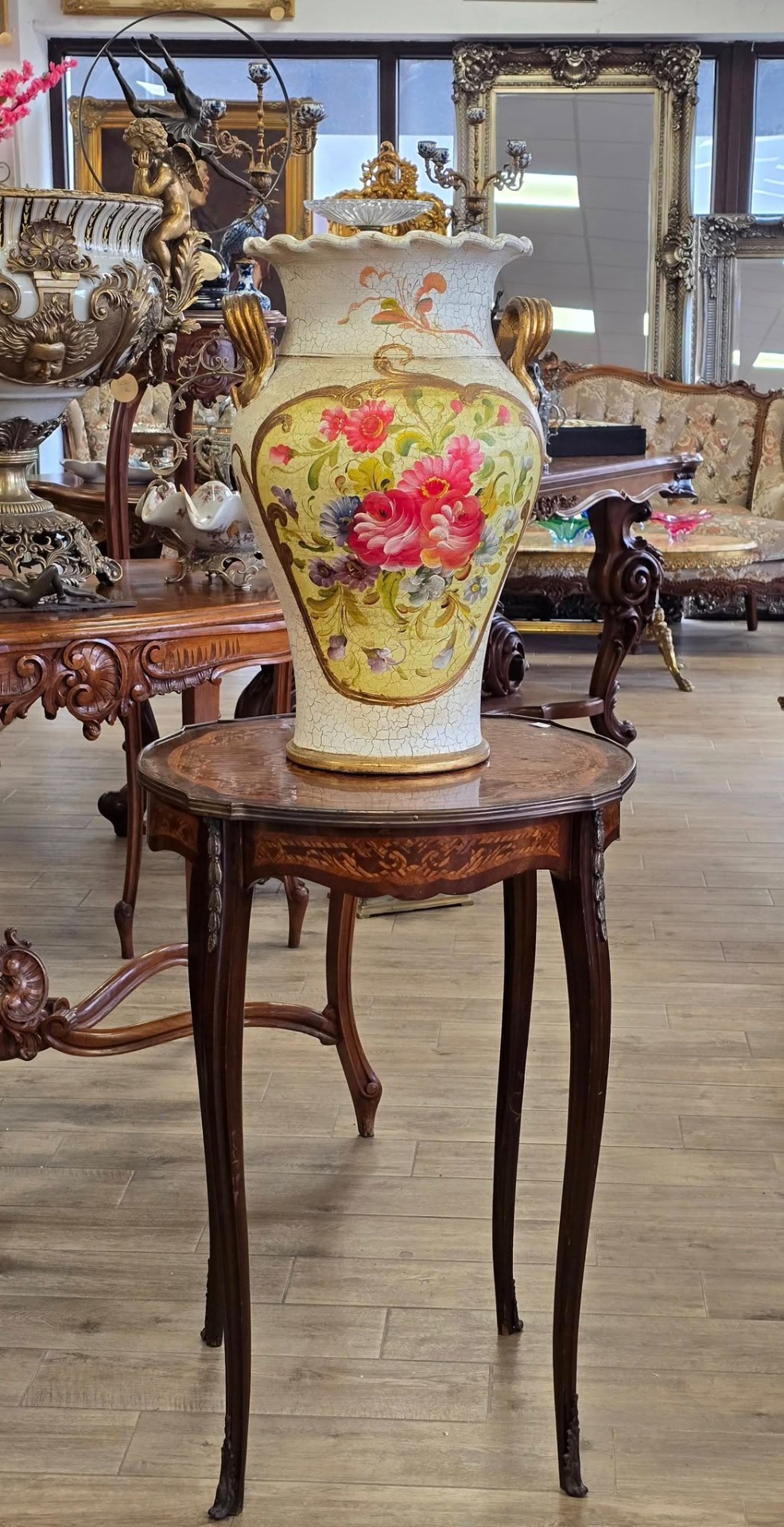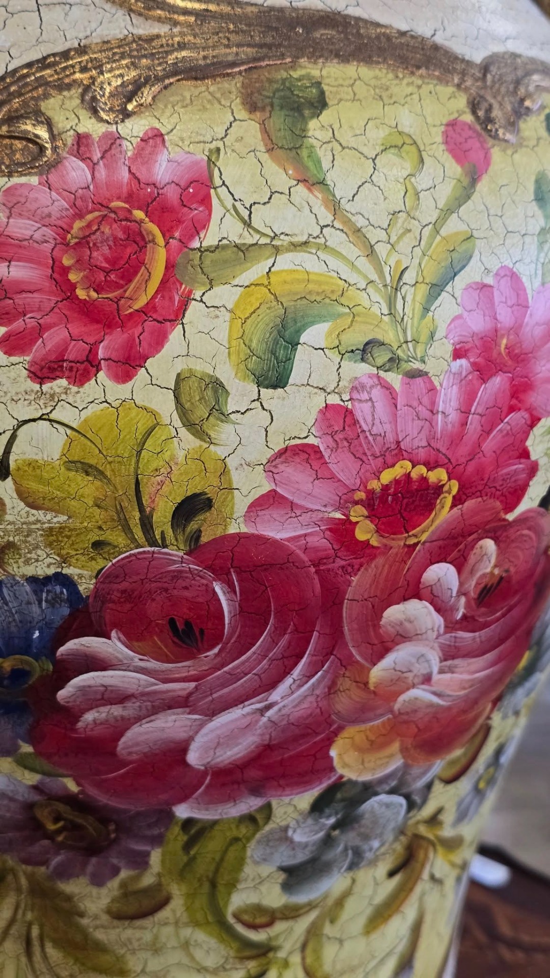aurite, pictată manual în motiv floral pe ambele fețe pe fond "ivory" cu accente de auriu patinat.