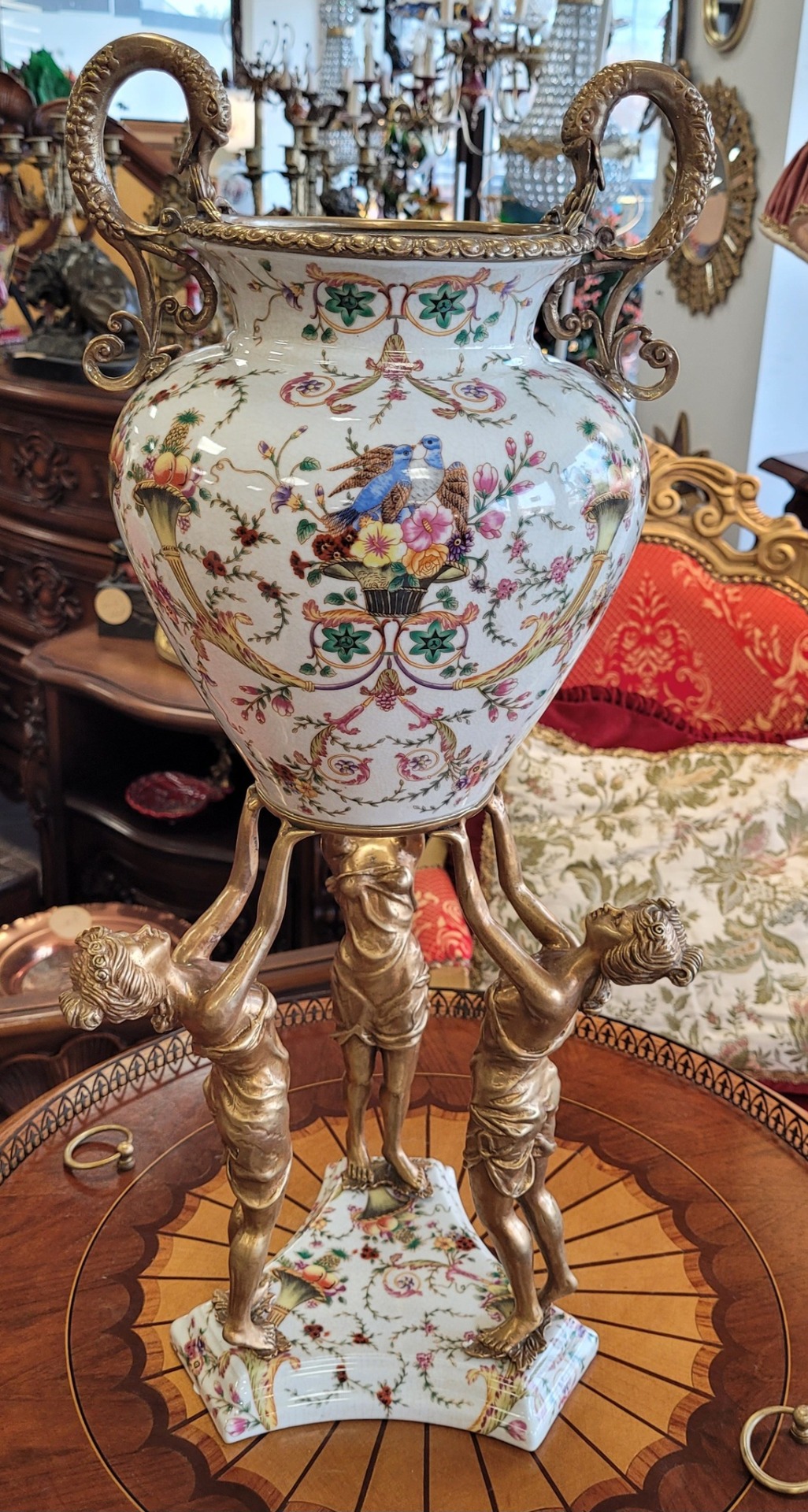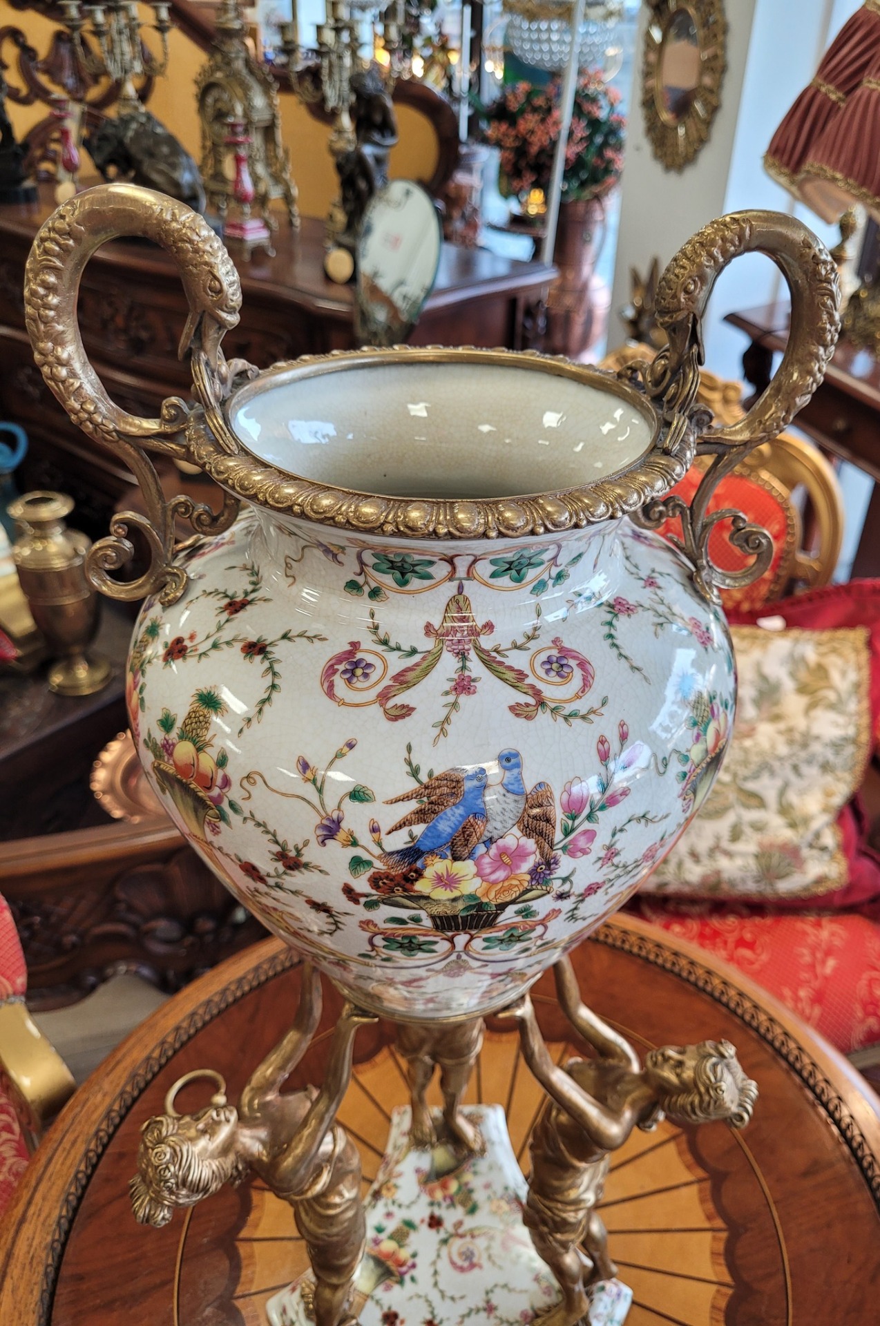 Vază din porțelan în stil Sèvres, în montură din bronz.
