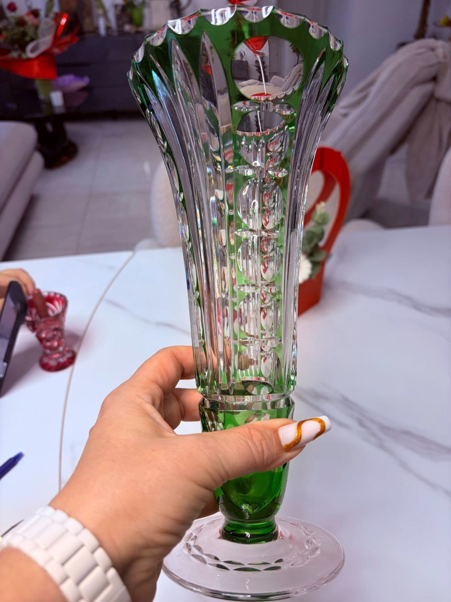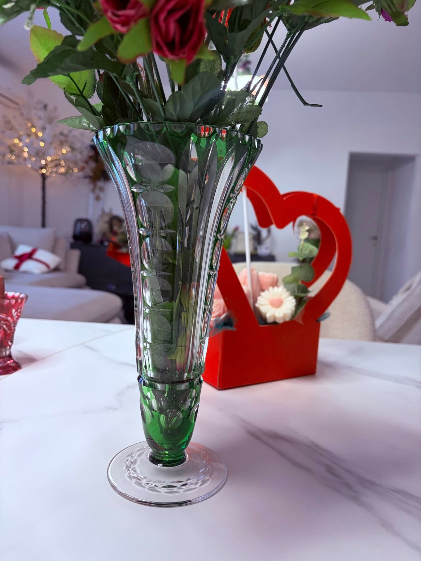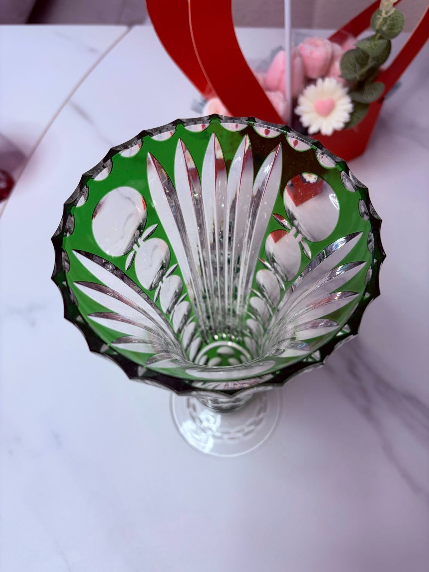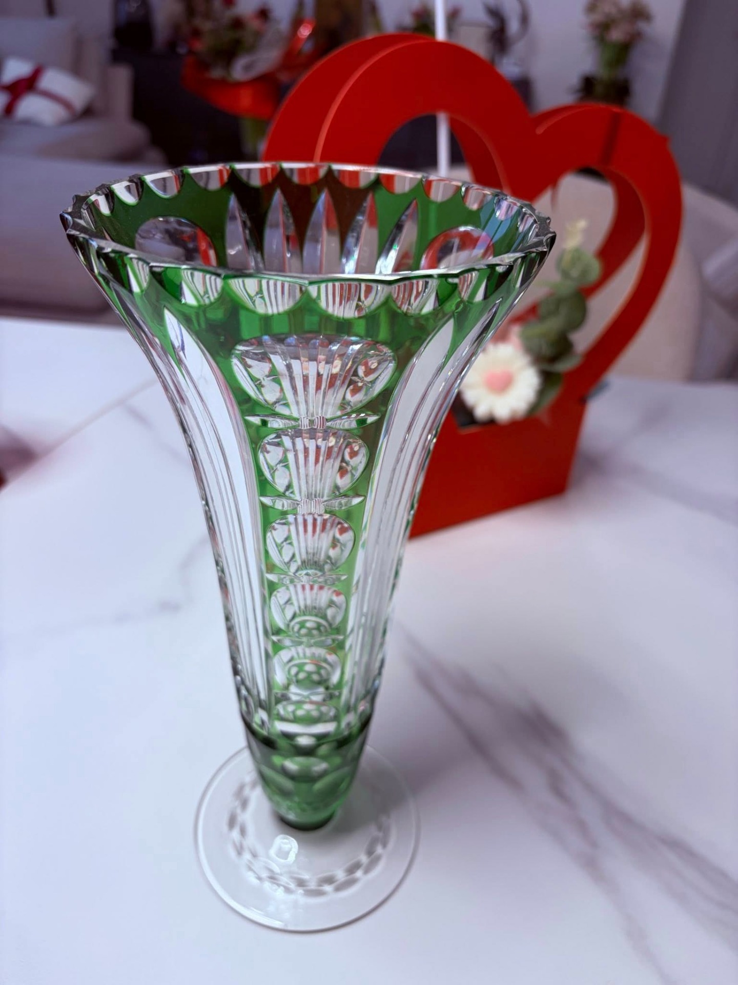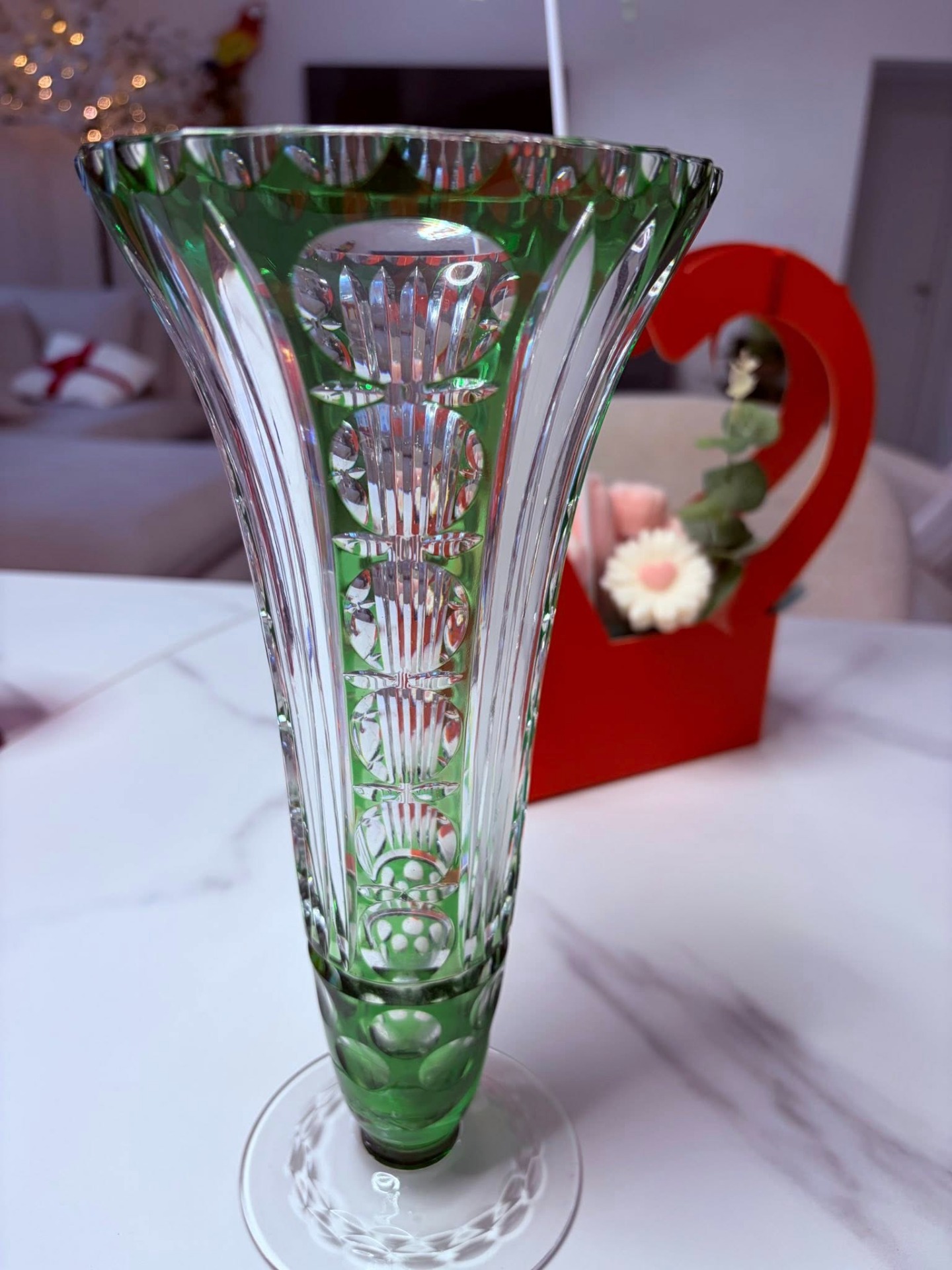 Vază elegantă din cristal verde – model deosebit