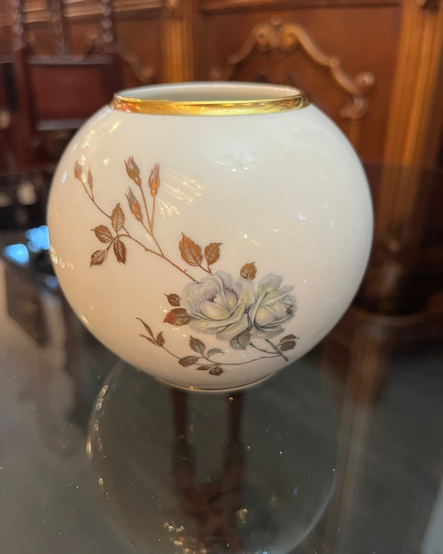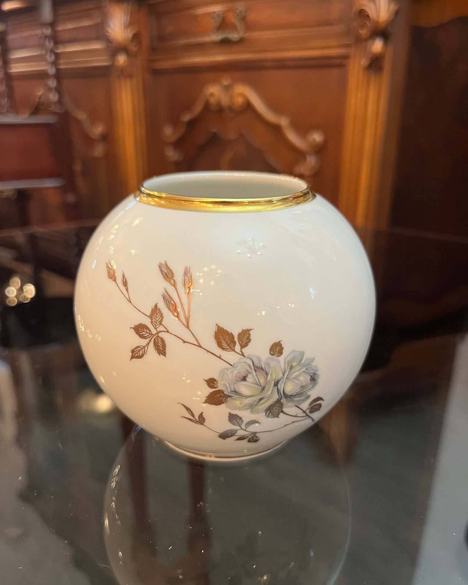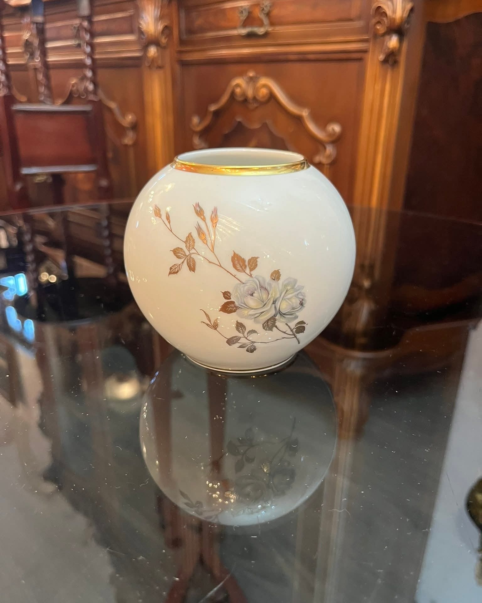 Vază elegantă din porțelan fin german, semnată Alboh & Kaiser (Bavaria), renumită pentru calitatea și rafinamentul pieselor sale. Modelul „Romantze” se remarcă