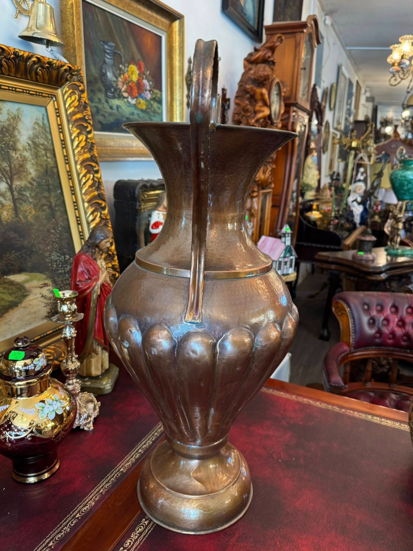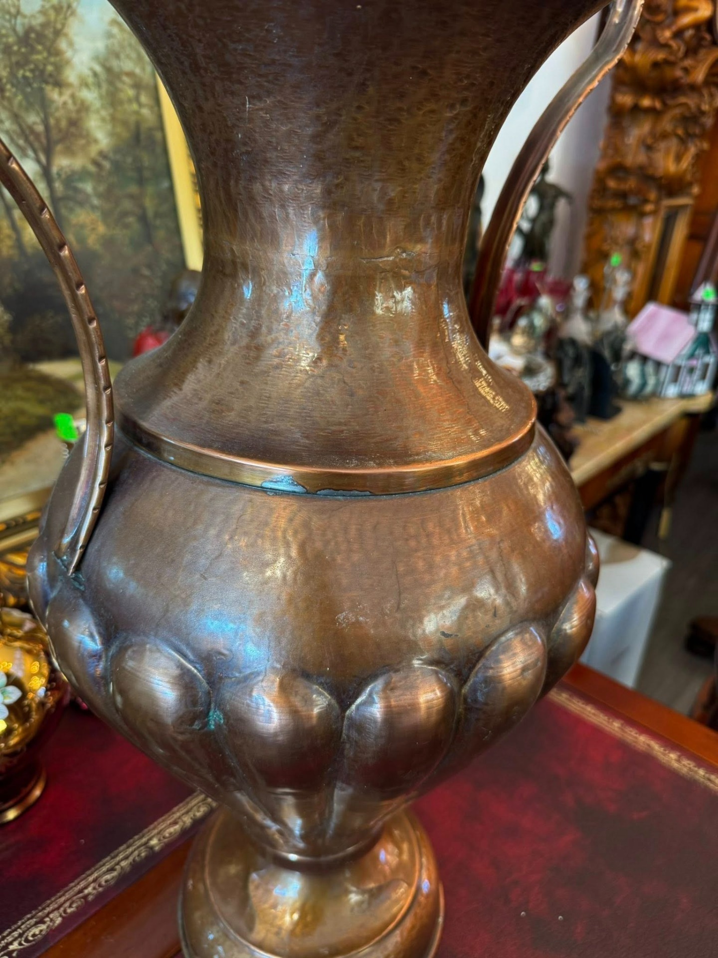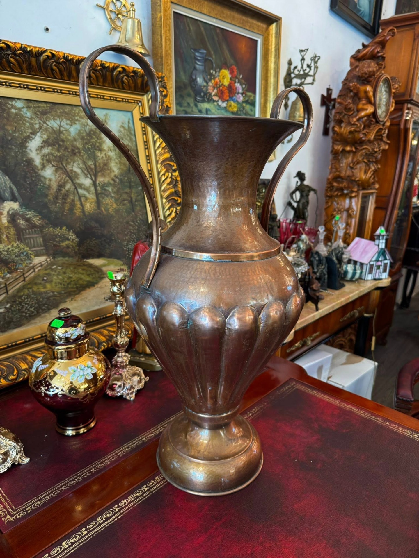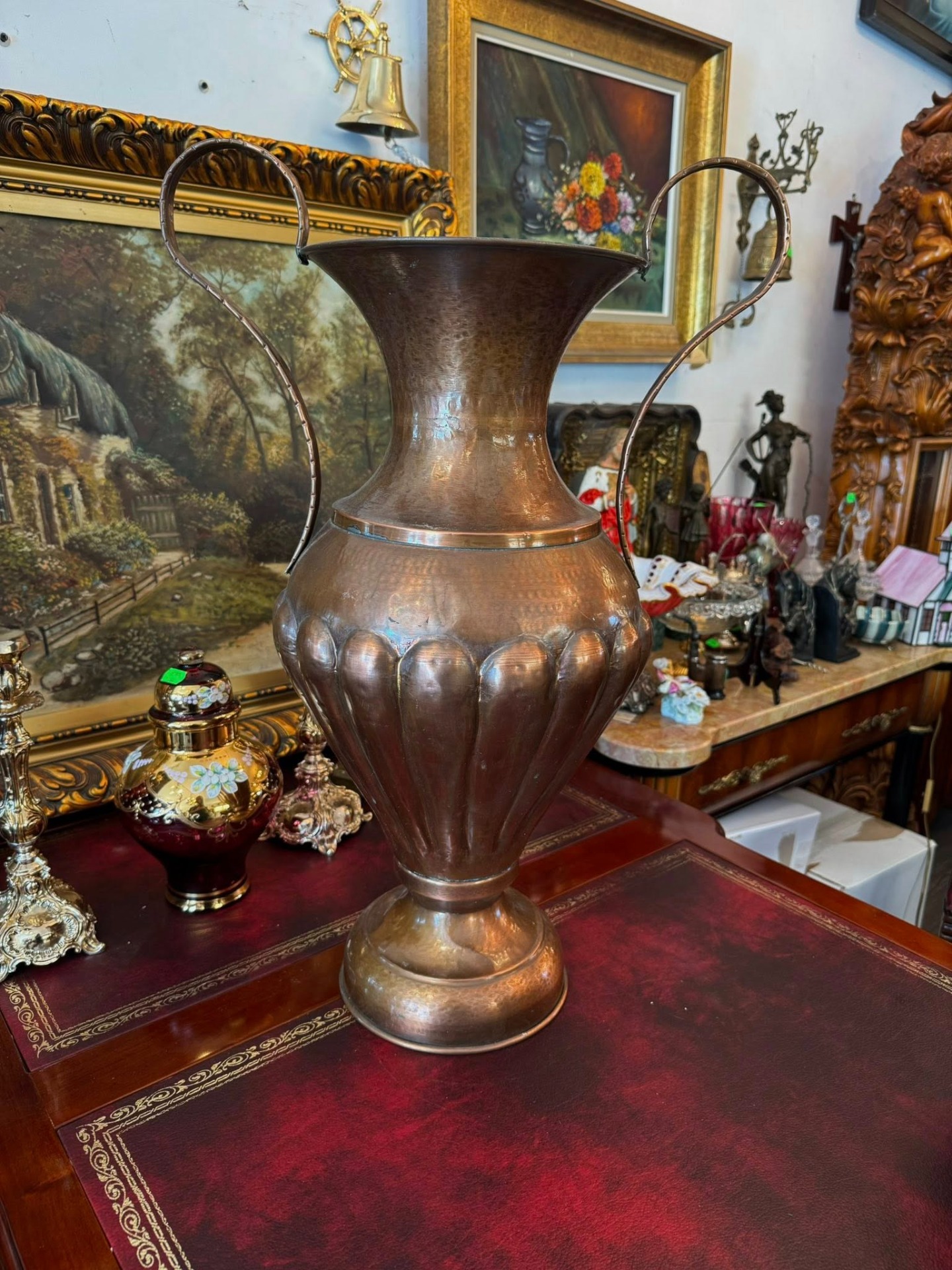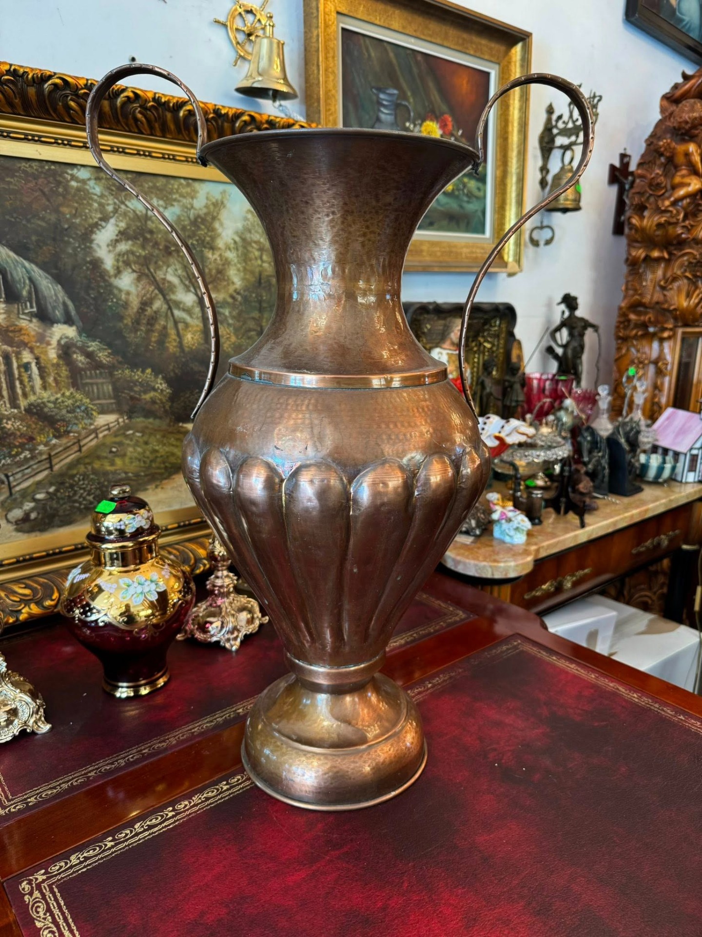 Vază impunătoare decorativă realizată din cupru,