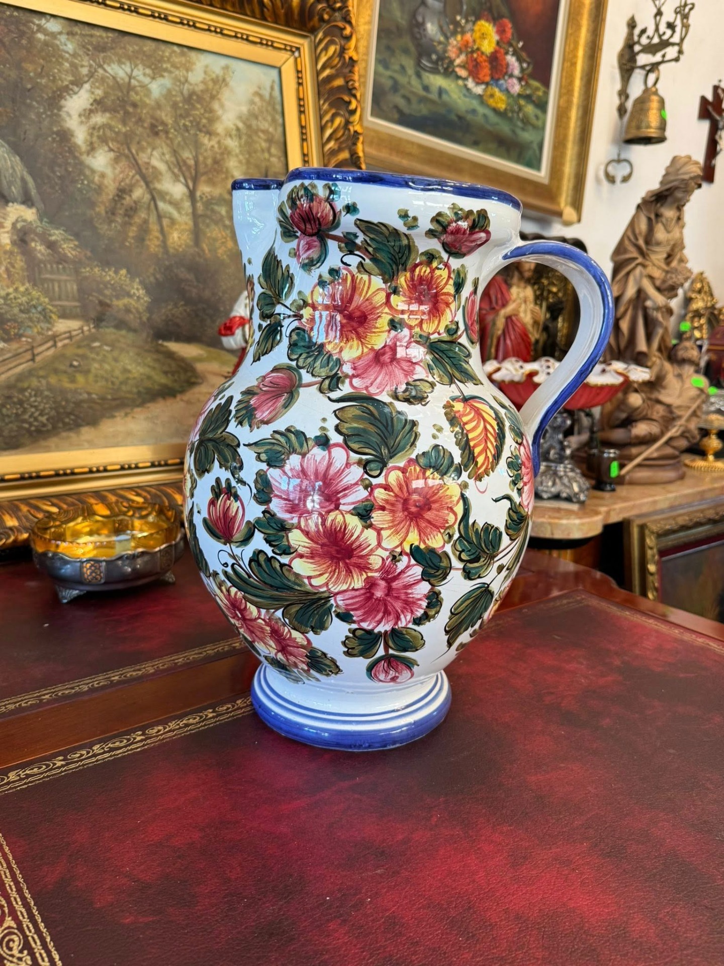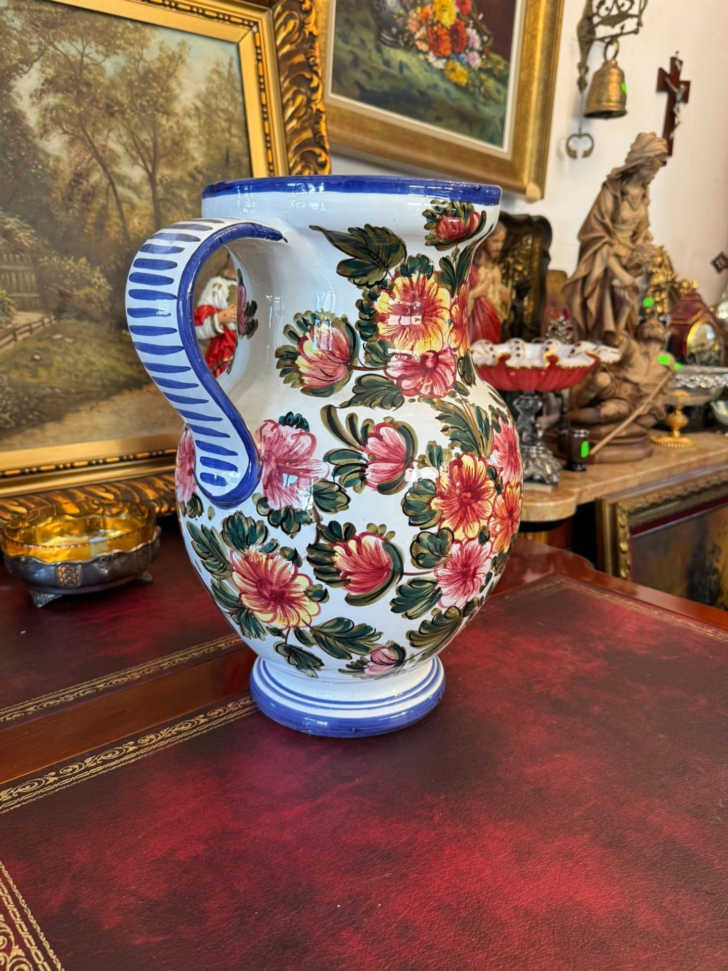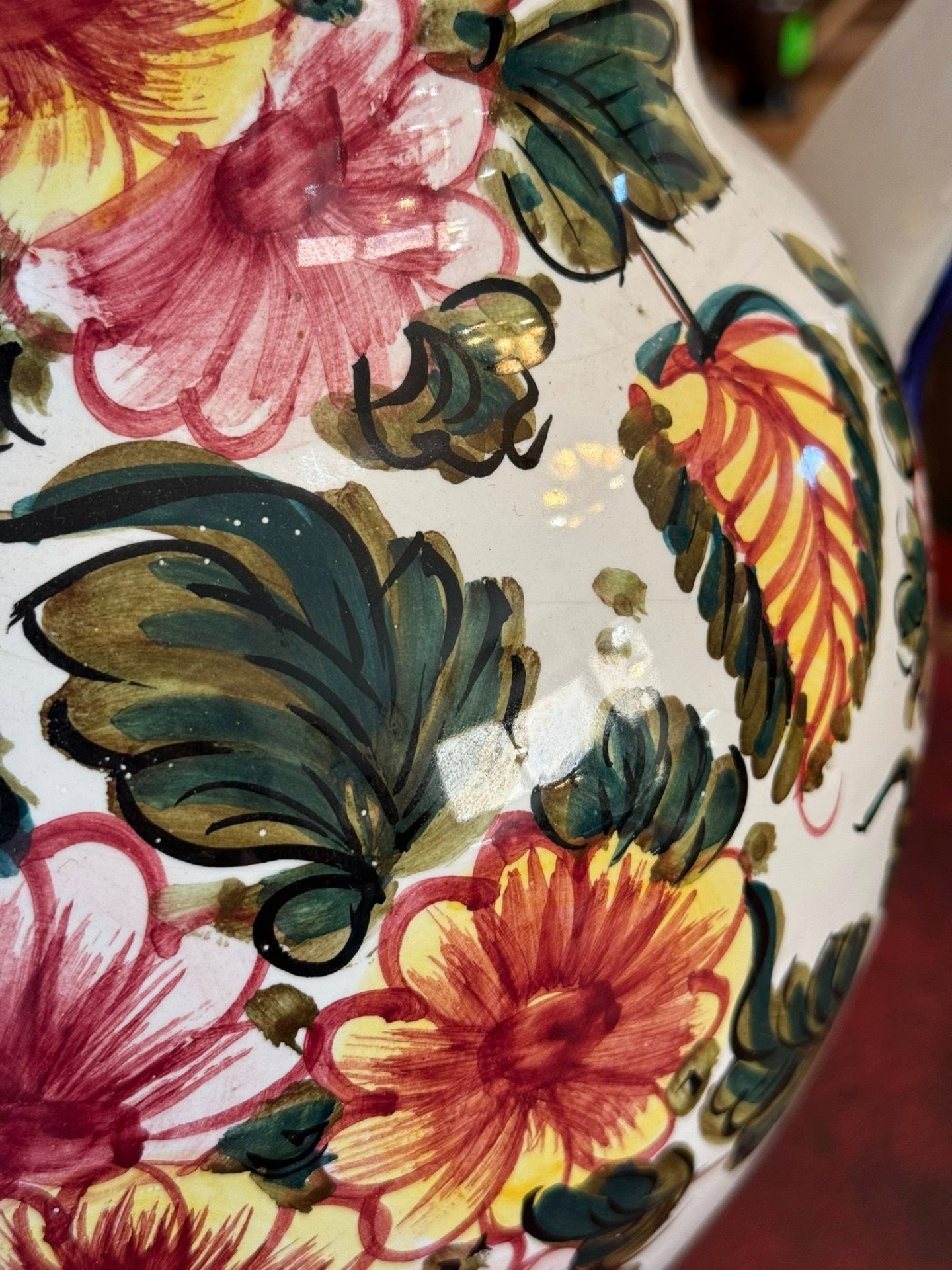 Vaza in forma de carafa de mari dimensiuni din ceramică pictată manual – Stil Majolică (Italia, cca 1960)