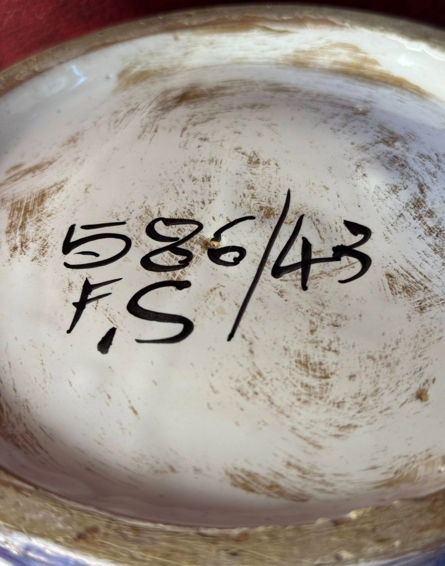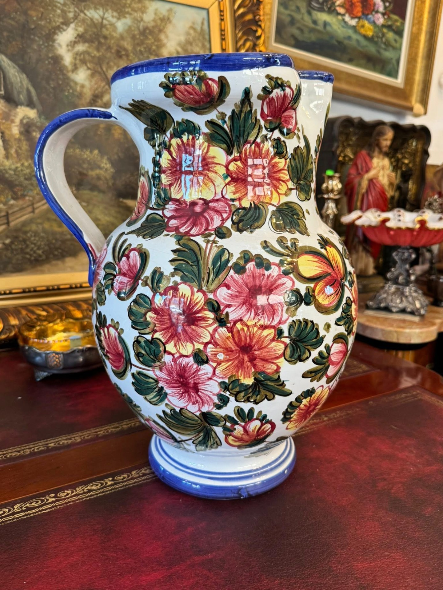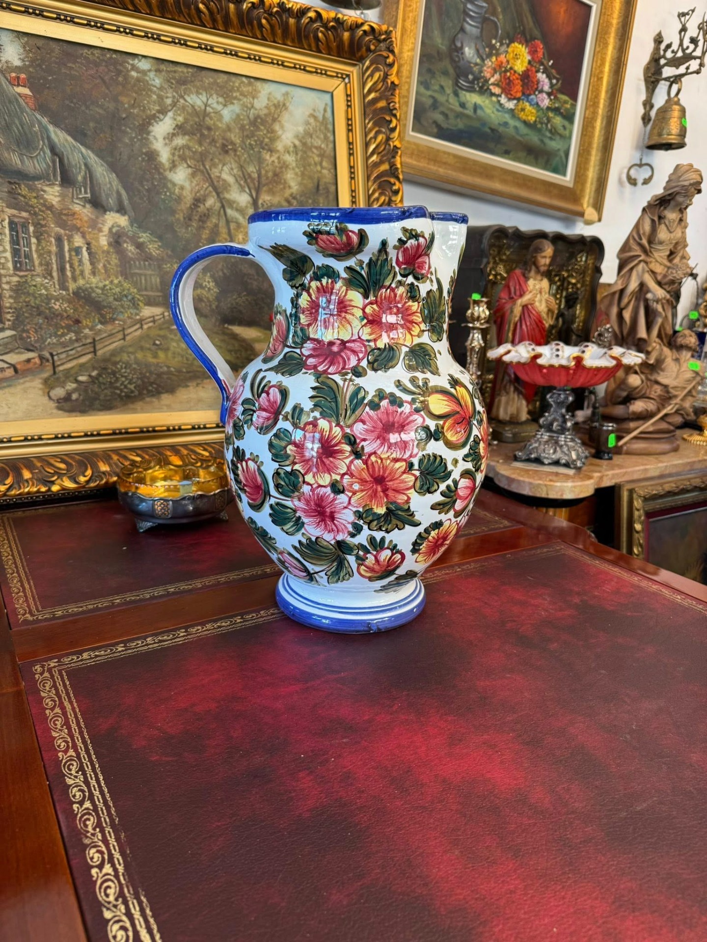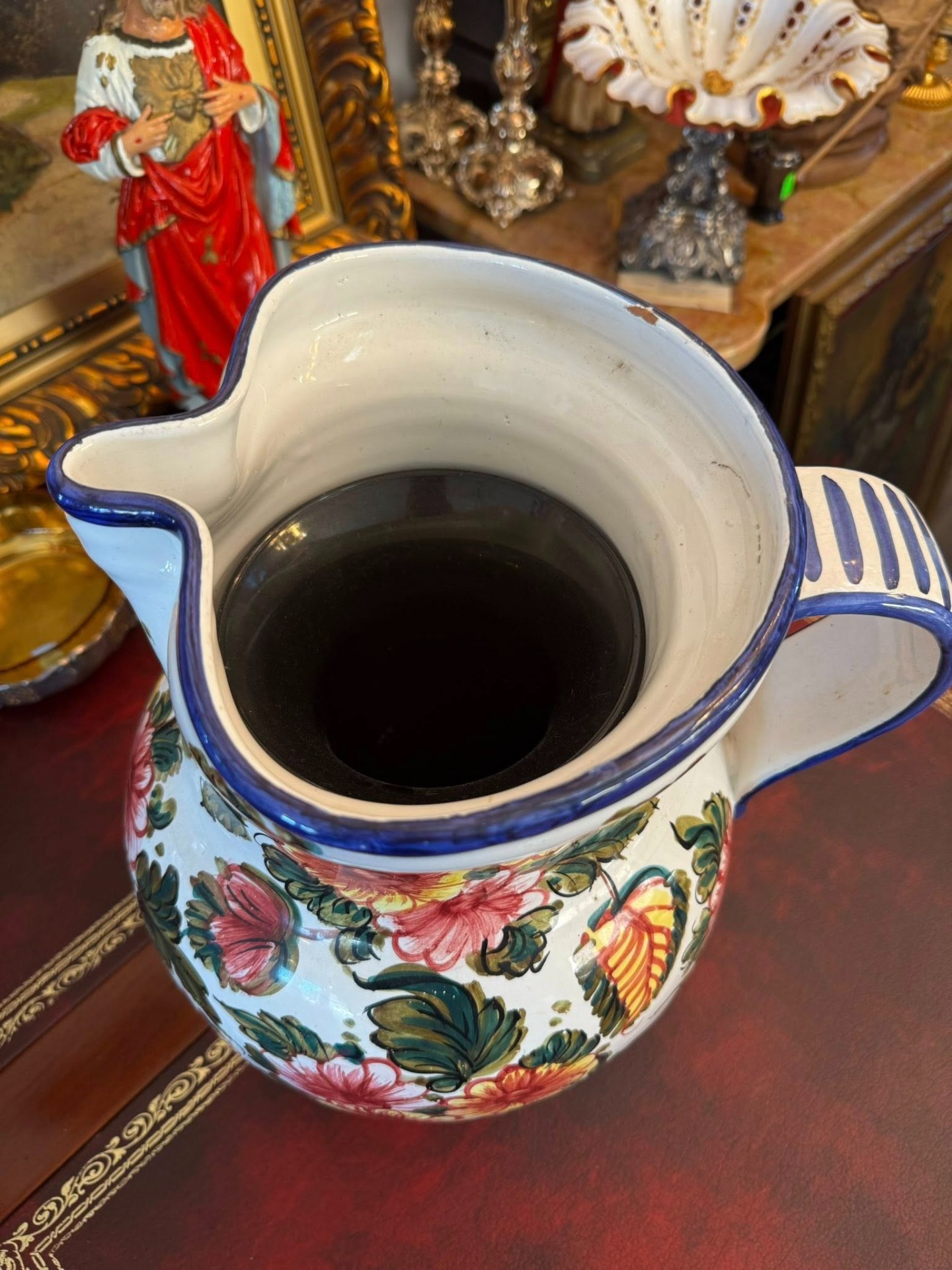 Vaza in forma de carafa de mari dimensiuni din ceramică pictată manual – Stil Majolică (Italia, cca 1960)