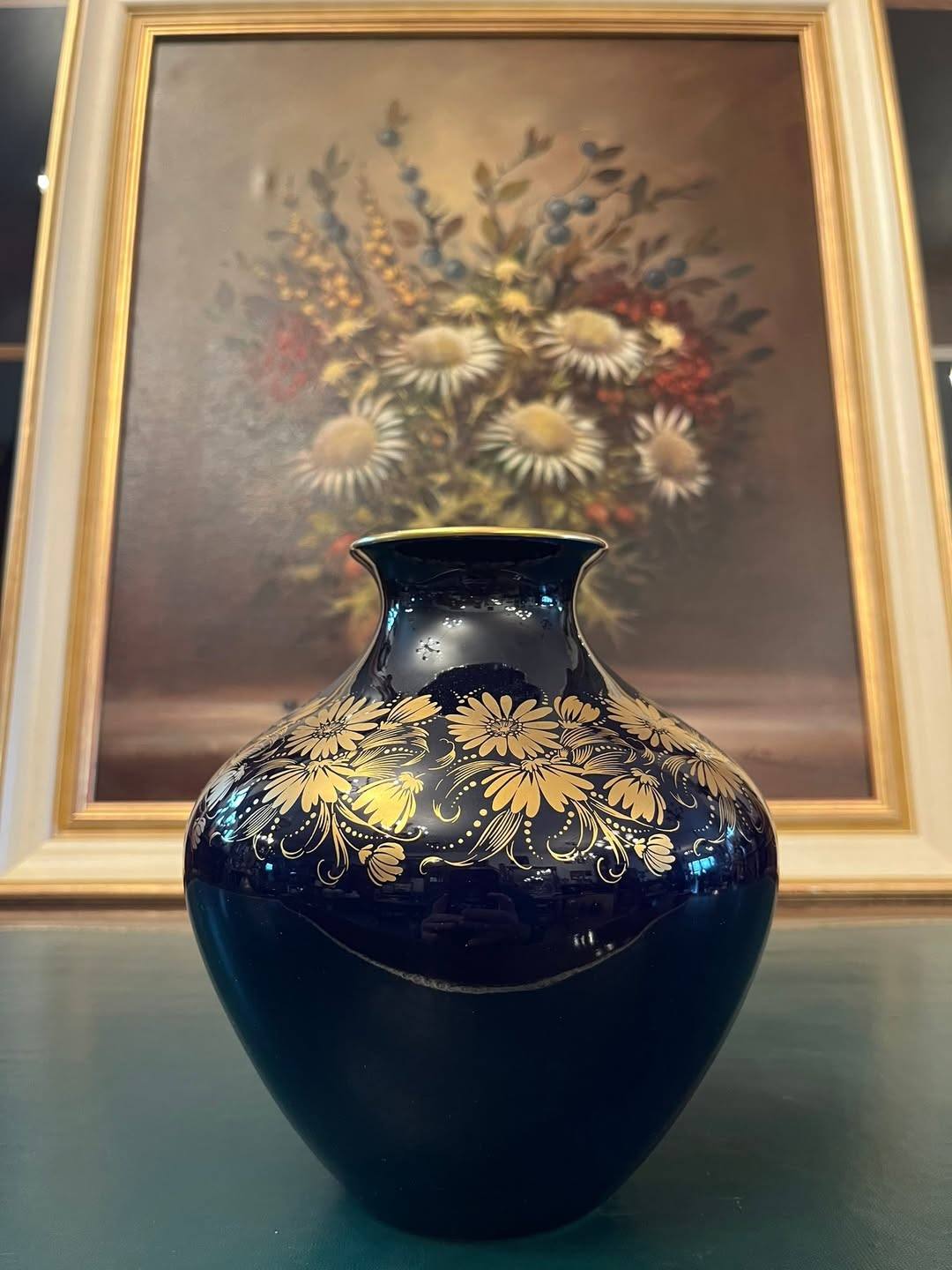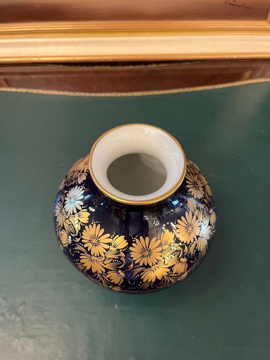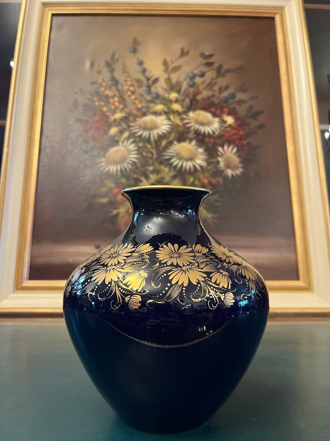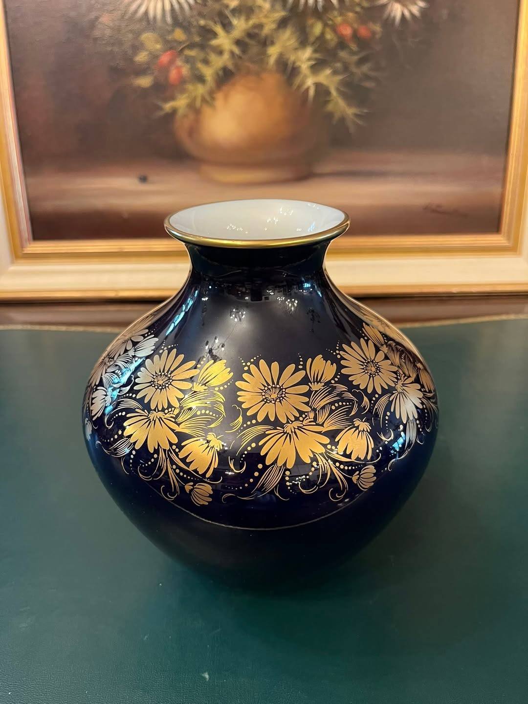 Vază porțelan german Hutschenreuther – Echt Kobalt, decor aur – model de colecție