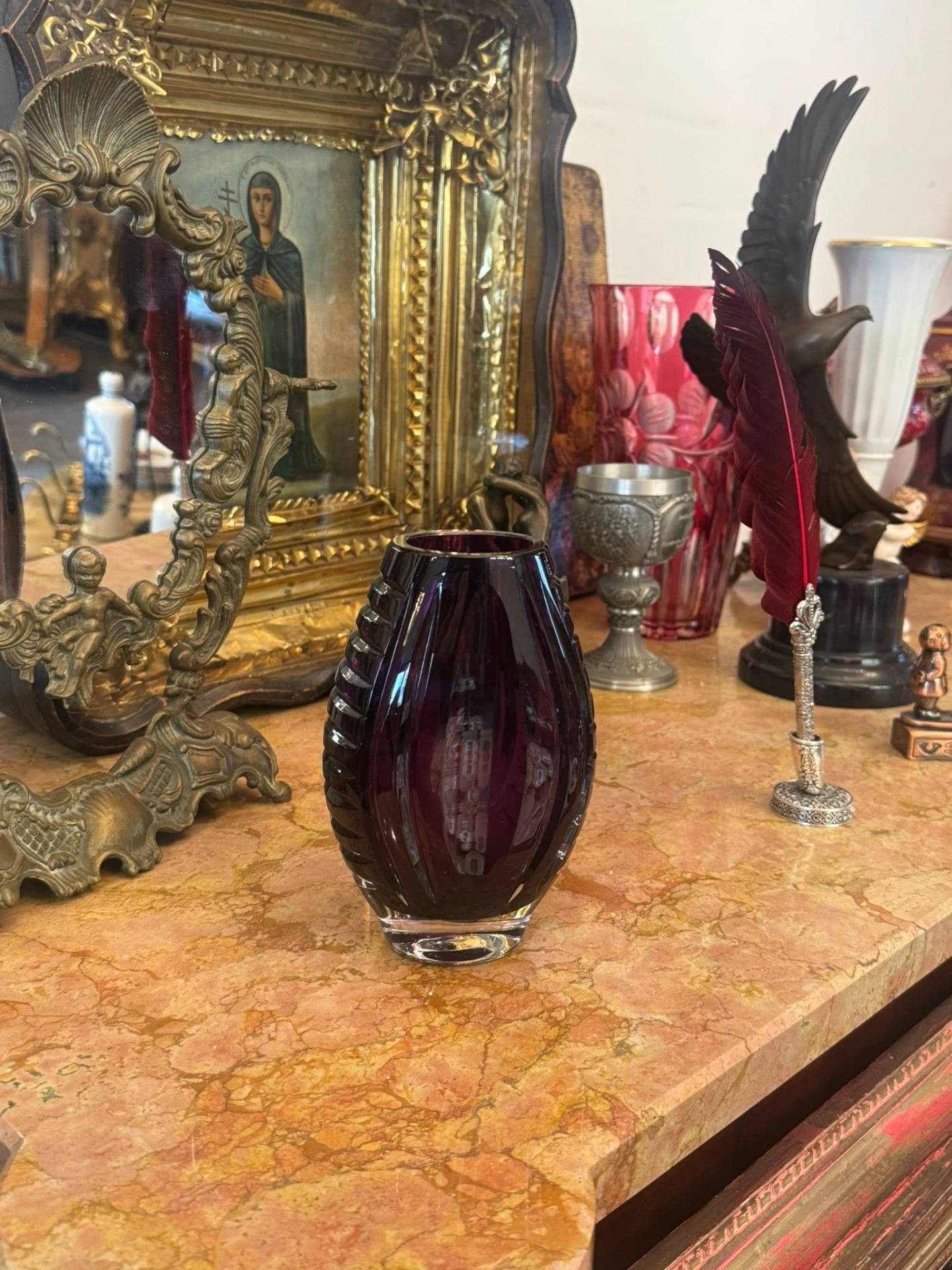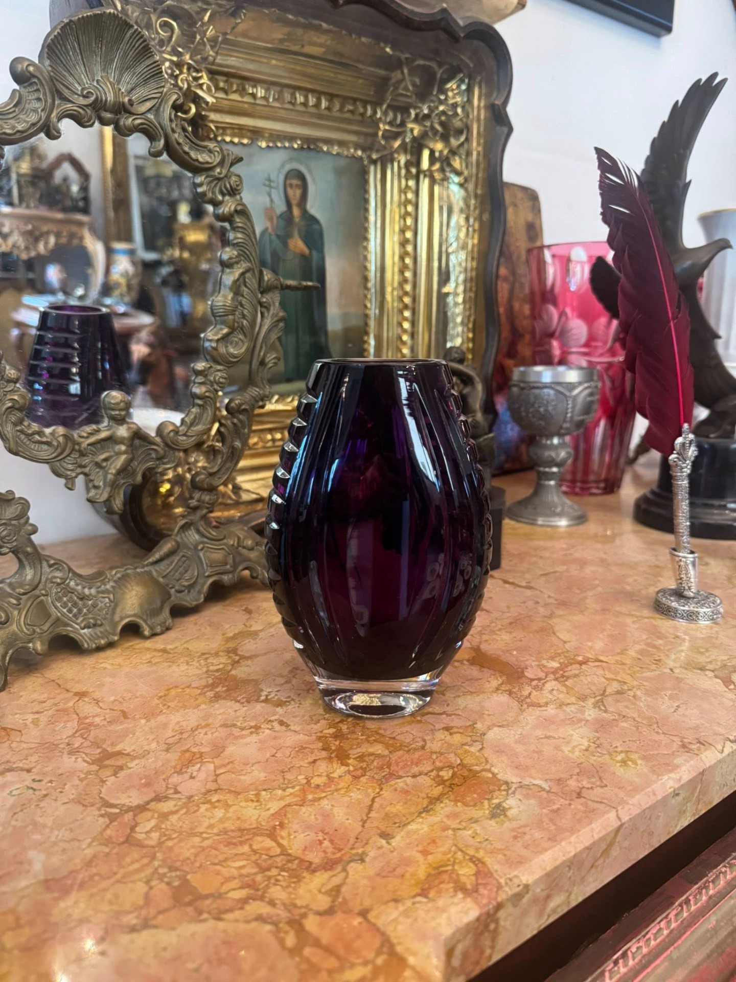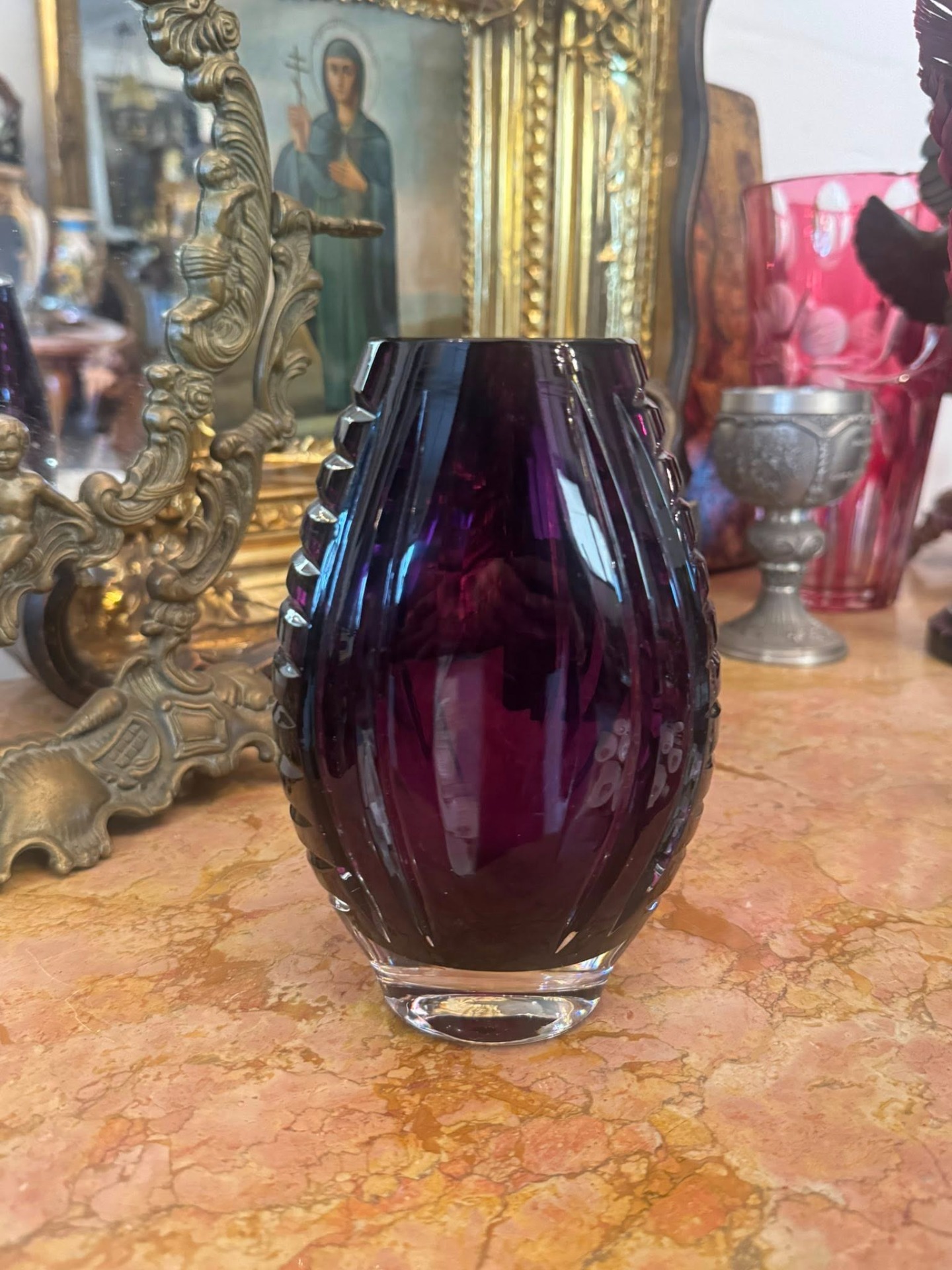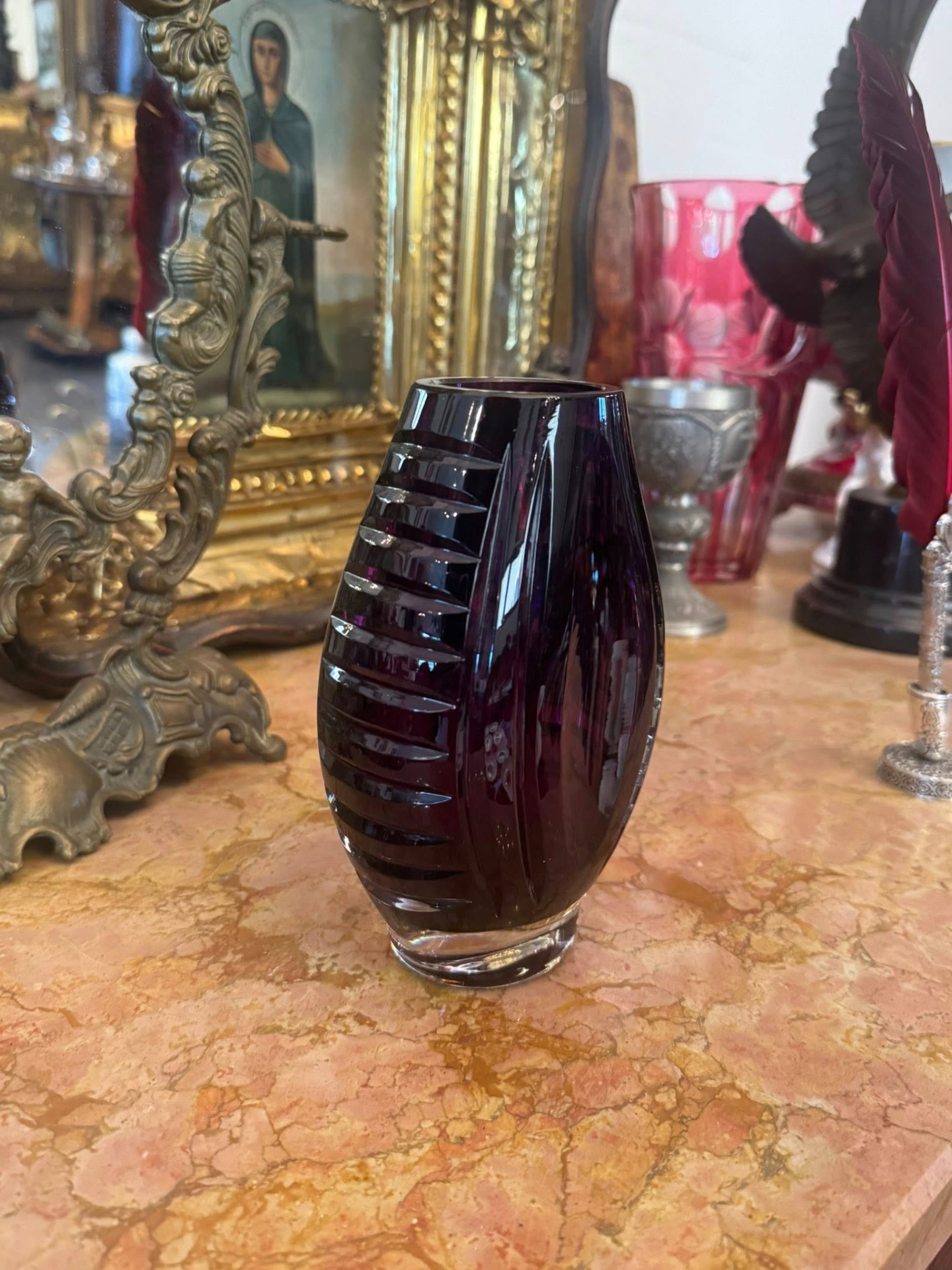 Vază realizată dintr-un cristal de un violet închis