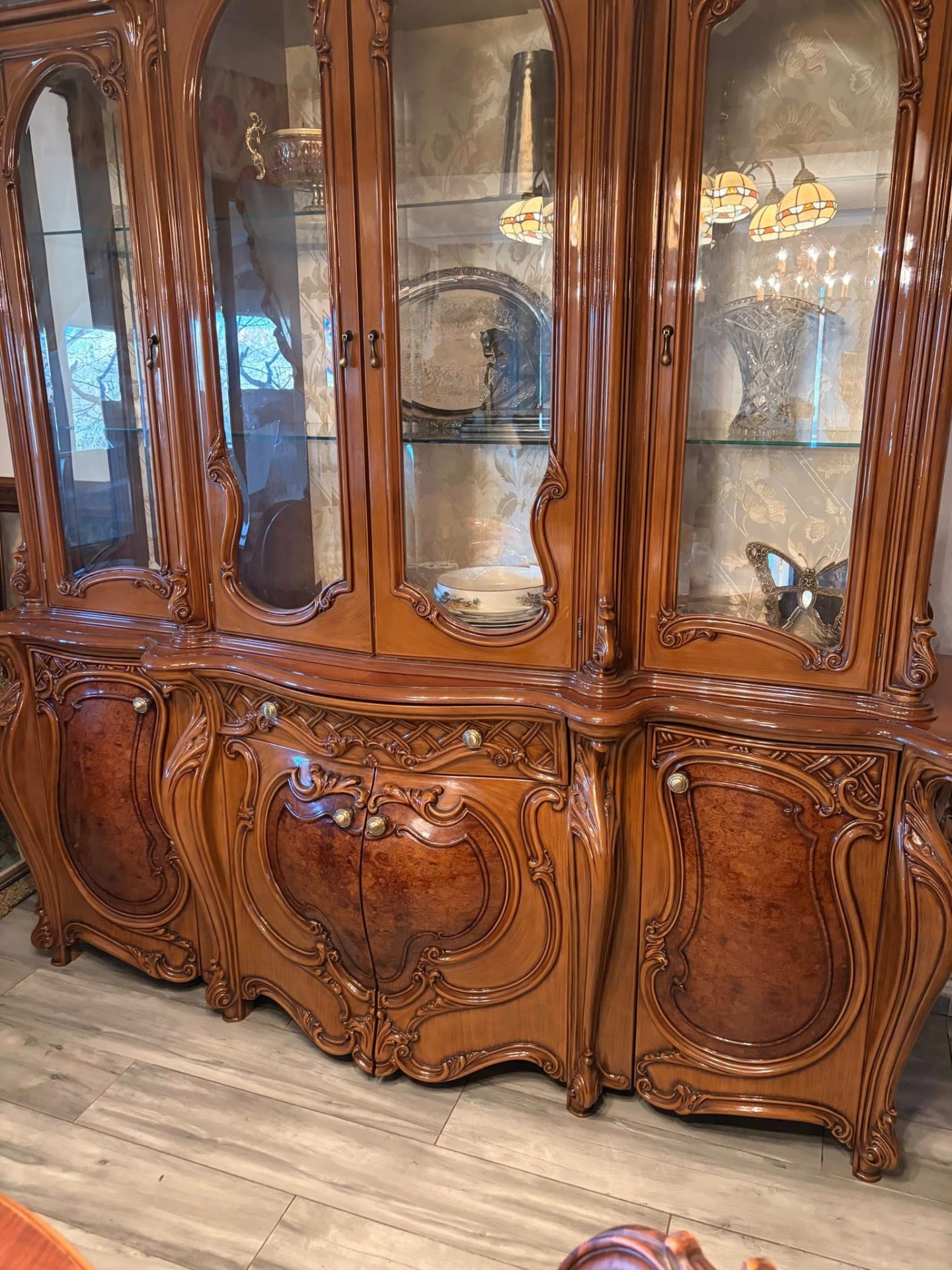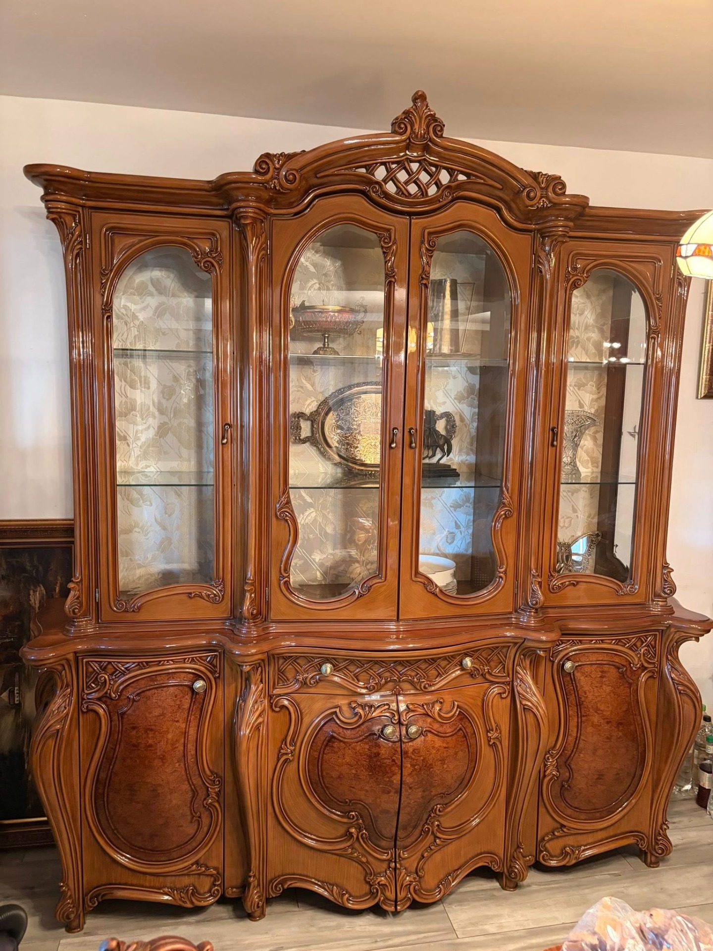 Vitrină monumentală în stil Rococo ,ideală pentru o sufragerie elegantă, un birou de protocol sau un conac.